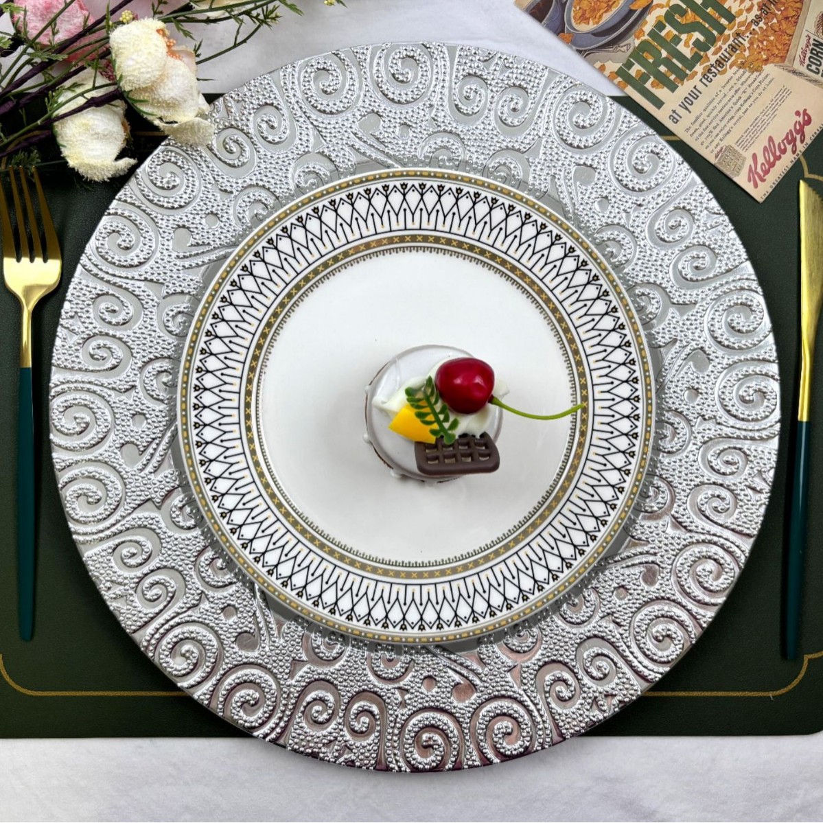 The size, shape, and color of the plates can be customized.Guests specify or provide