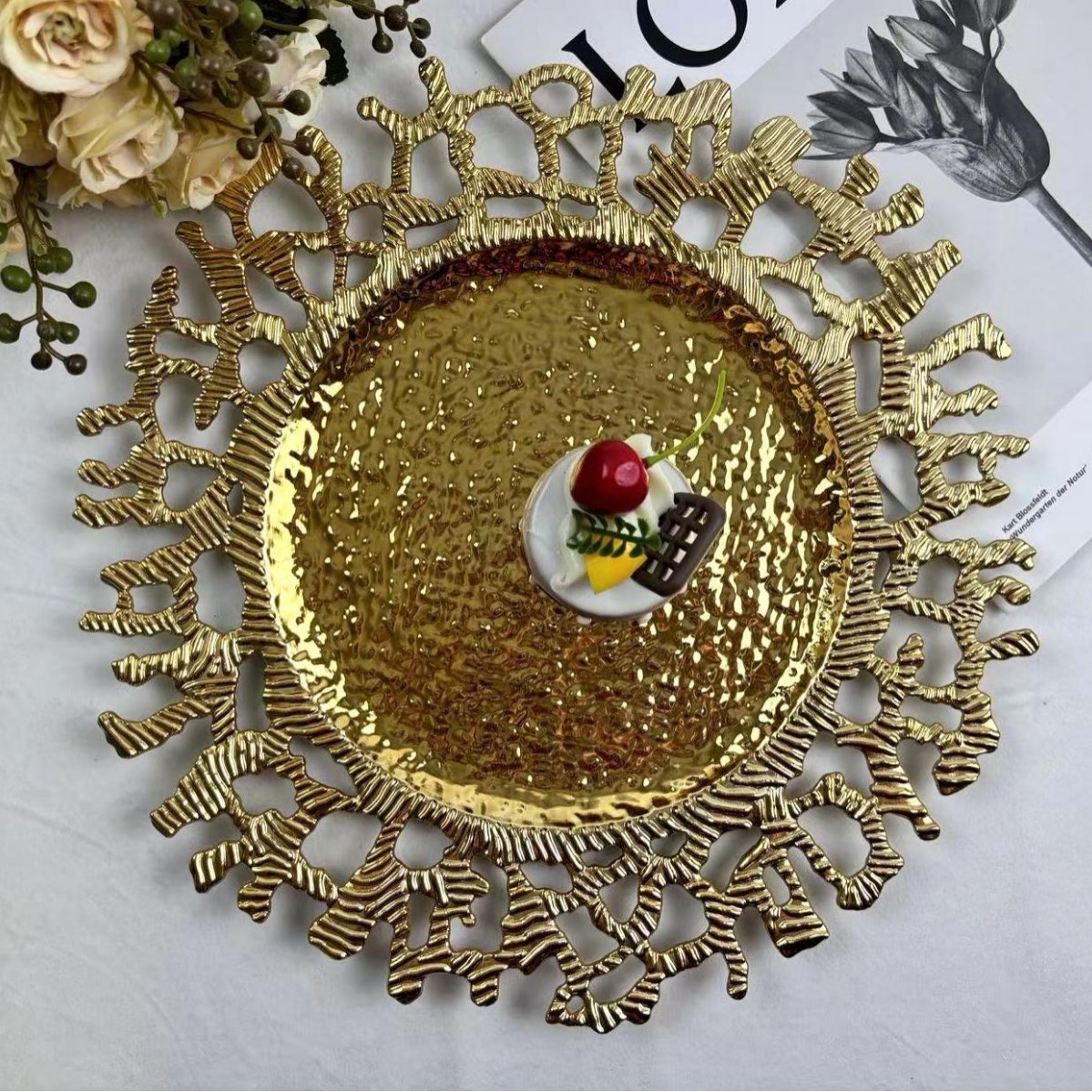 1Plates should not be directly exposed to food.These are usually purchased by European and American customers for wedding, hotel gatherings, and other festival decorations.