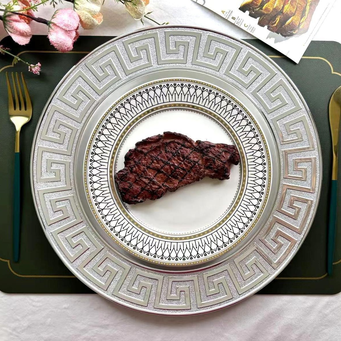 The size, shape, and color of the plates can be customized.Guests specify or provide