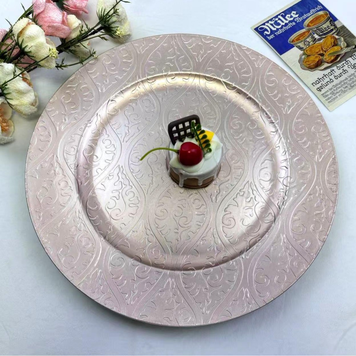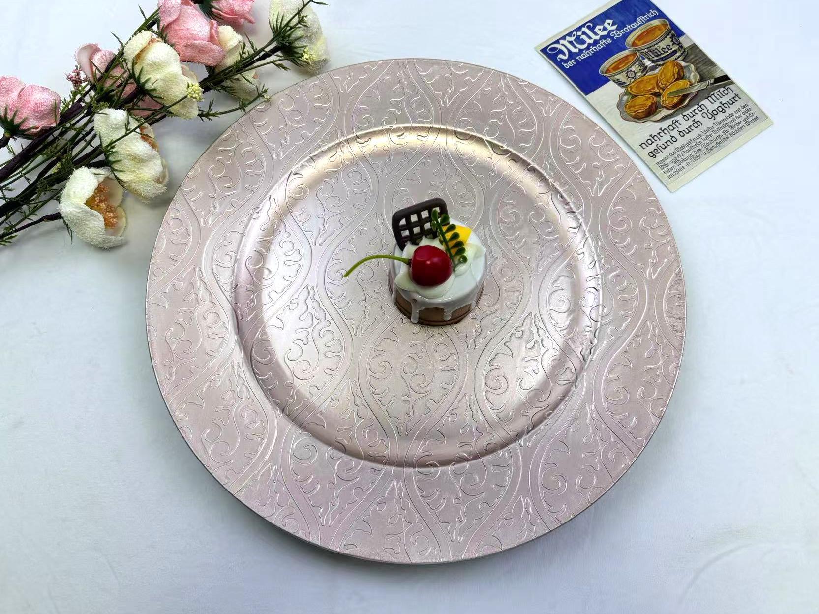 The size, shape, and color of the plates can be customized.Guests specify or provide