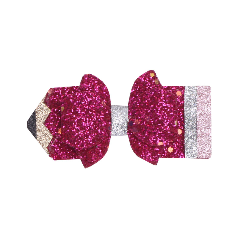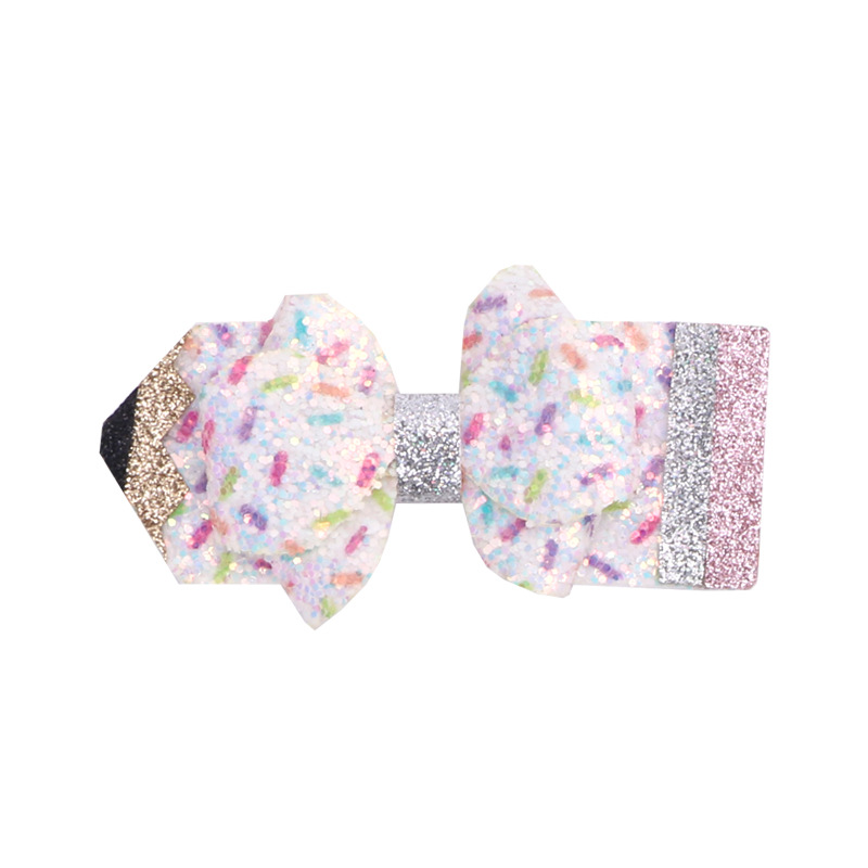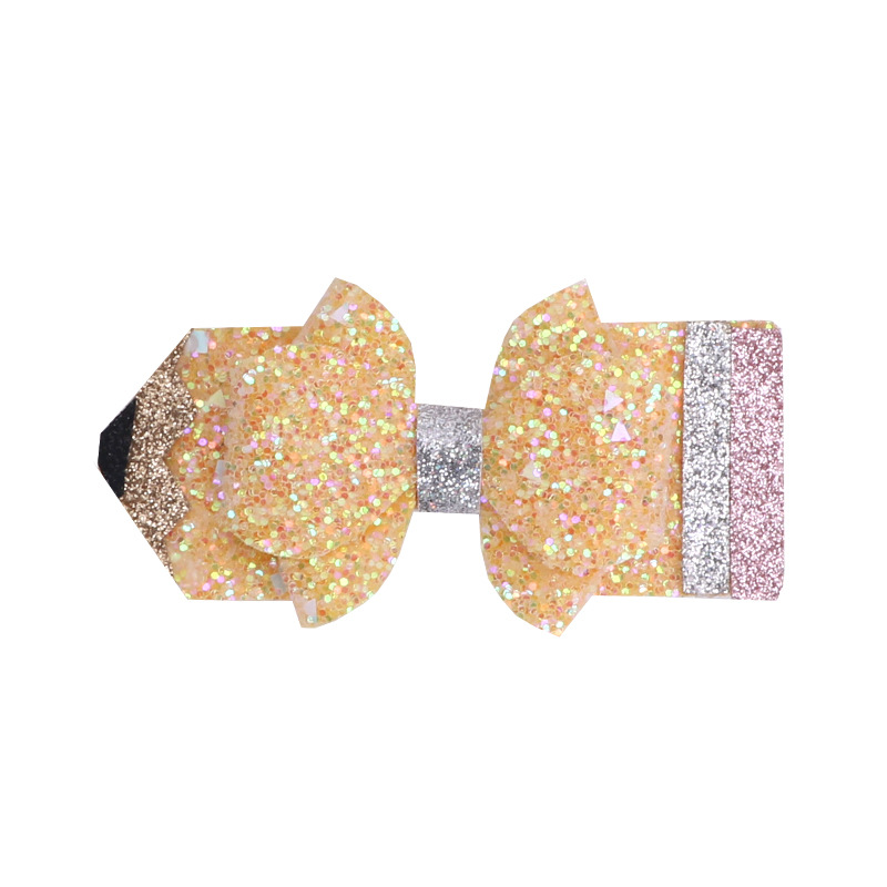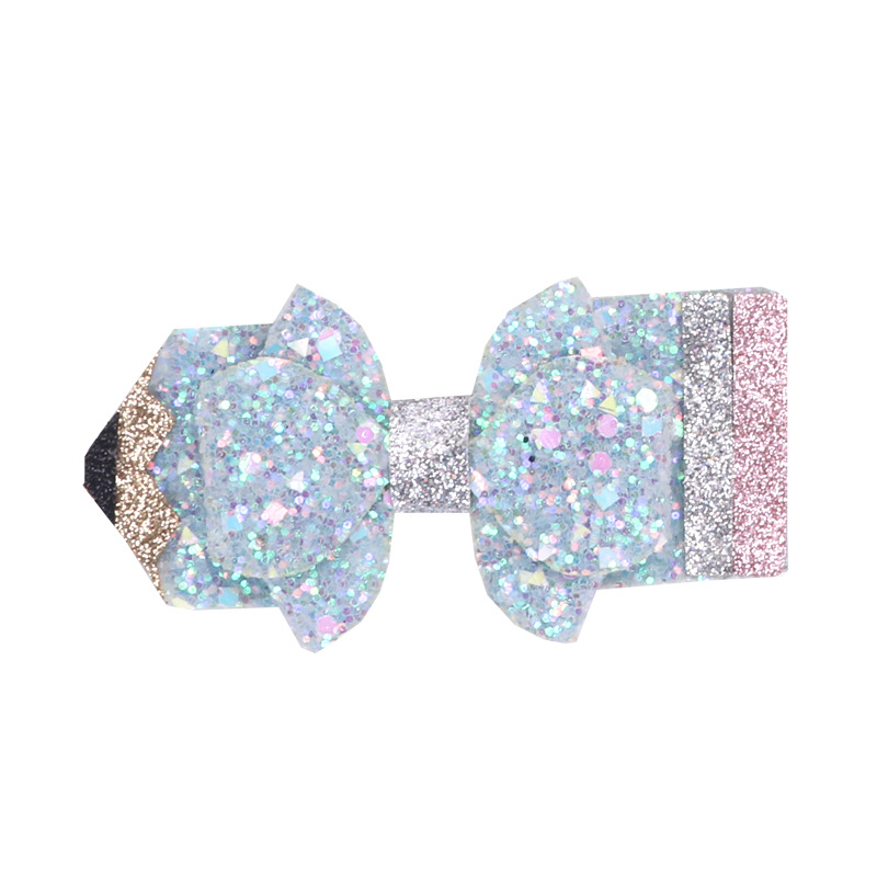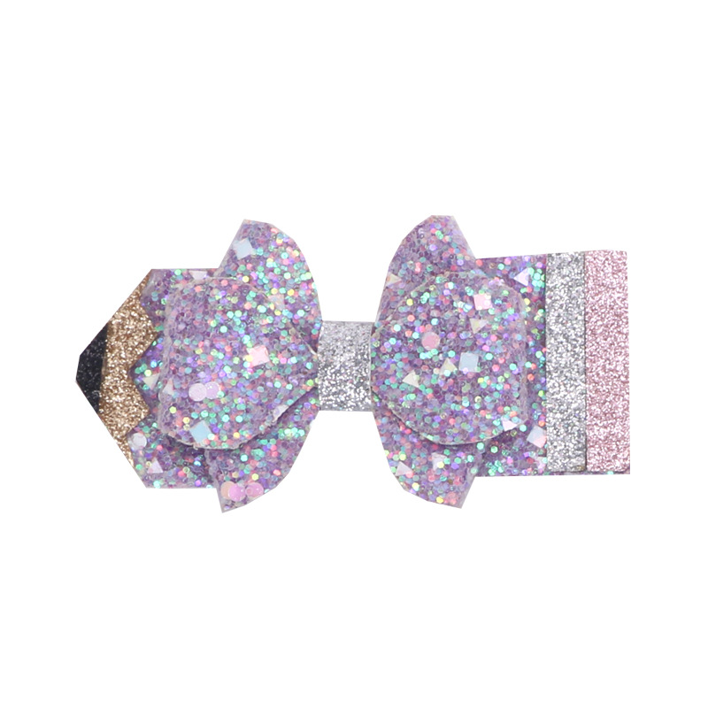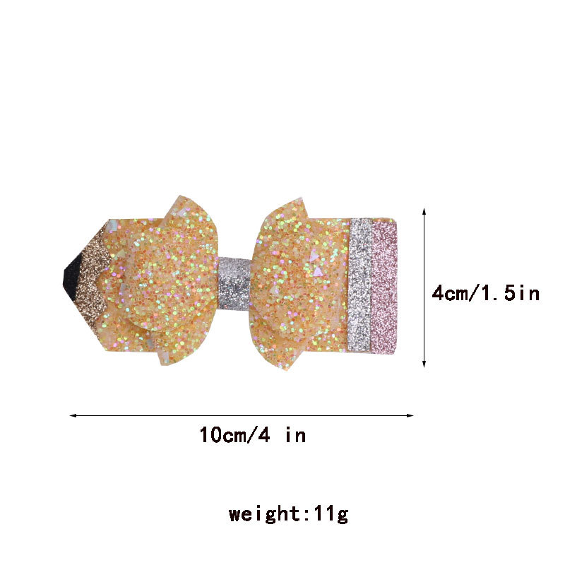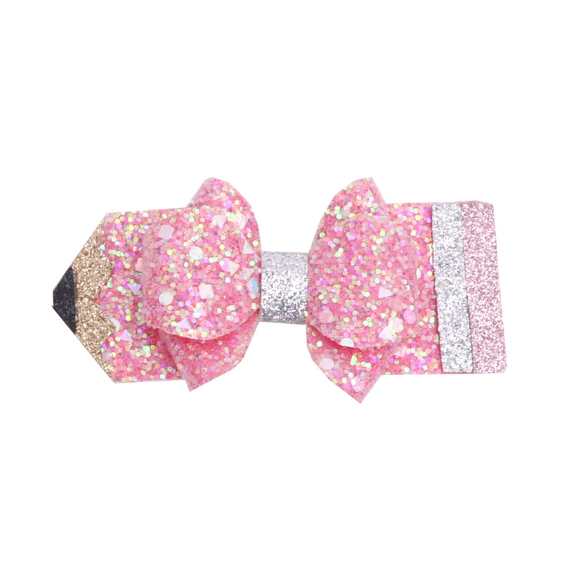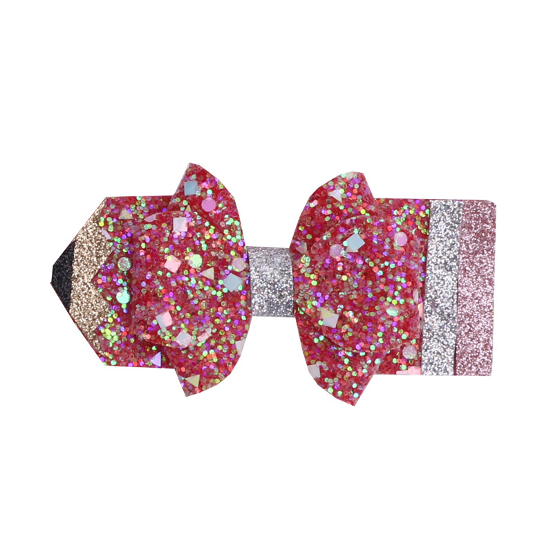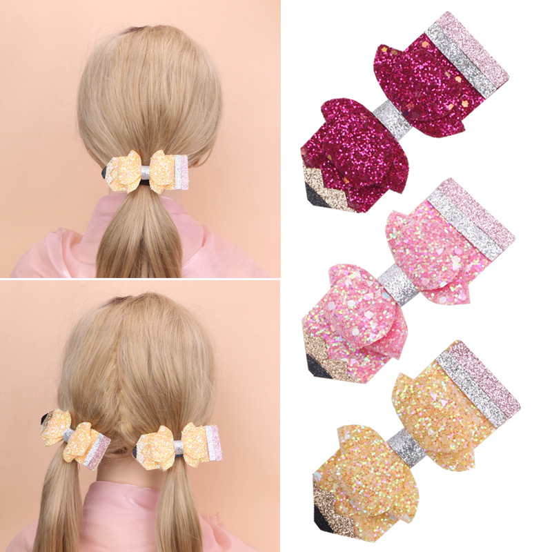 european and american children's great leather sequins back to school season pencil bow tie top clip duckbill clip ponytail side clip hair accessories