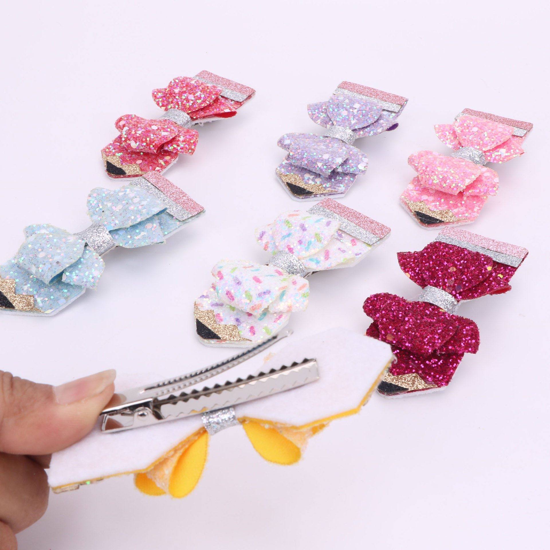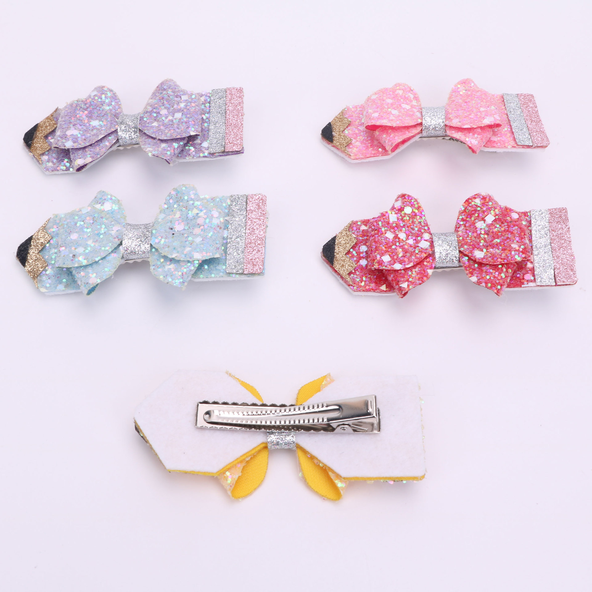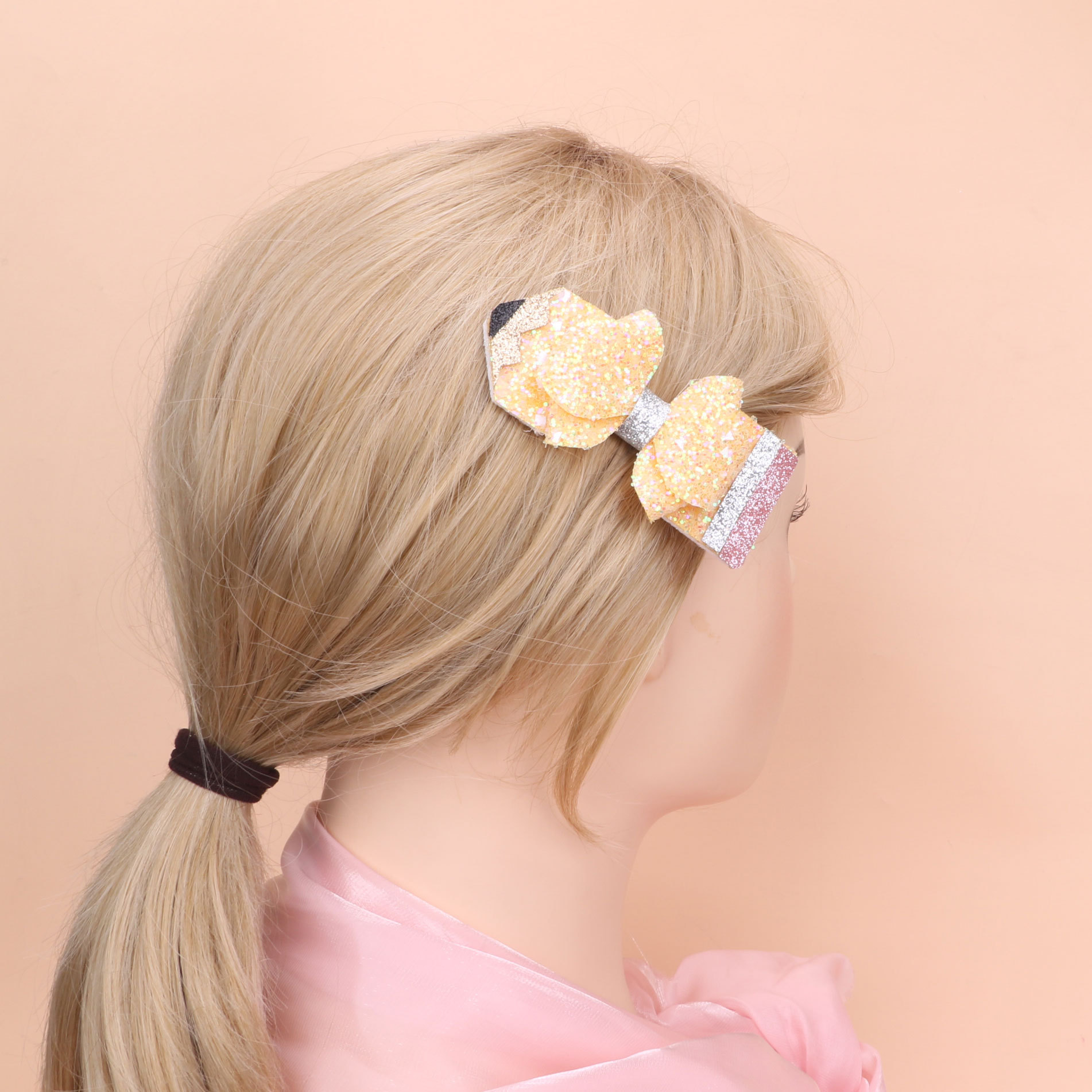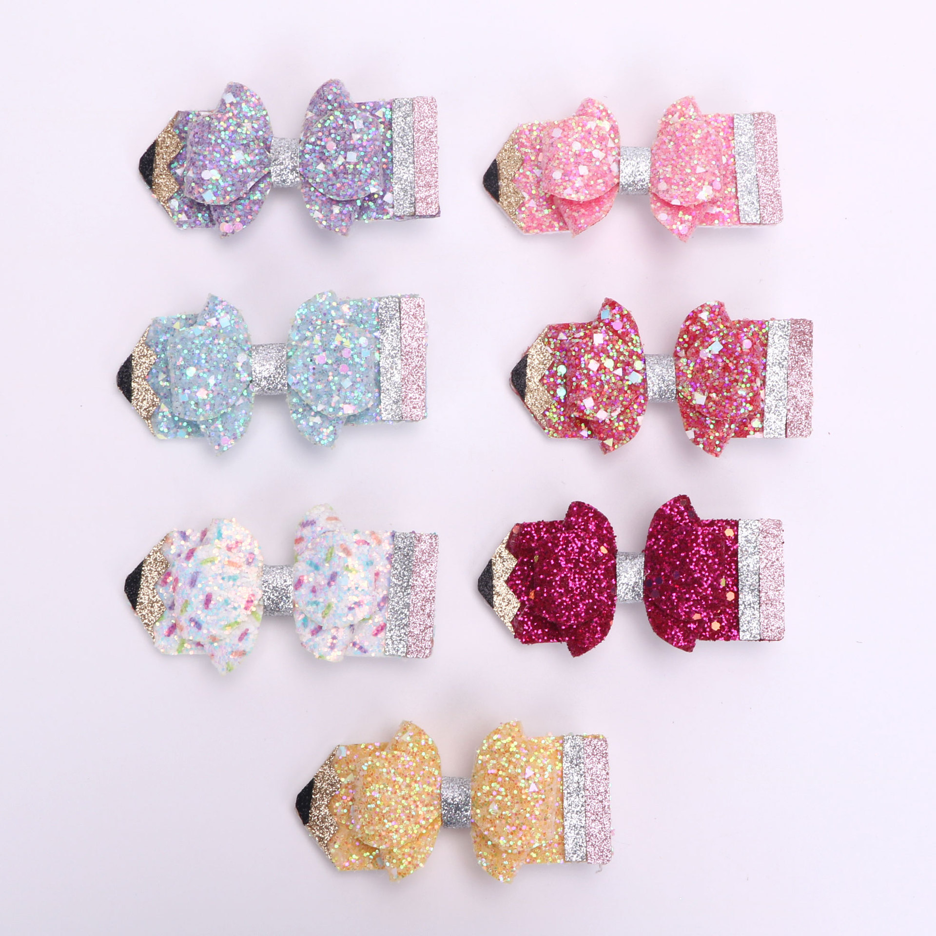 european and american children's great leather sequins back to school season pencil bow tie top clip duckbill clip ponytail side clip hair accessories