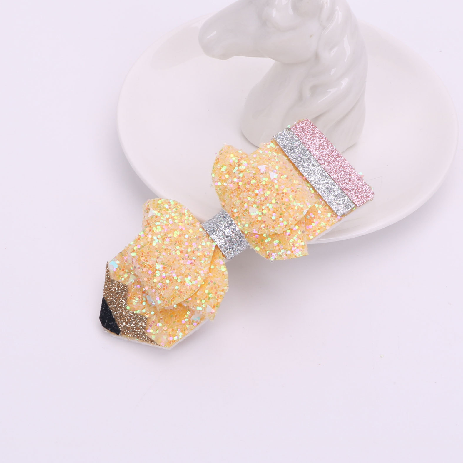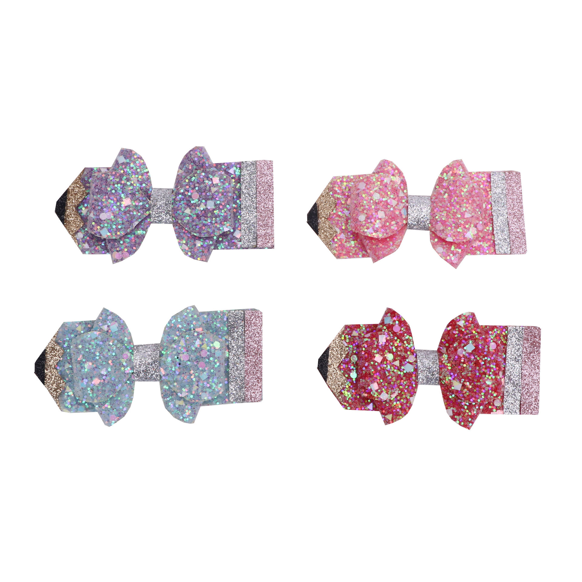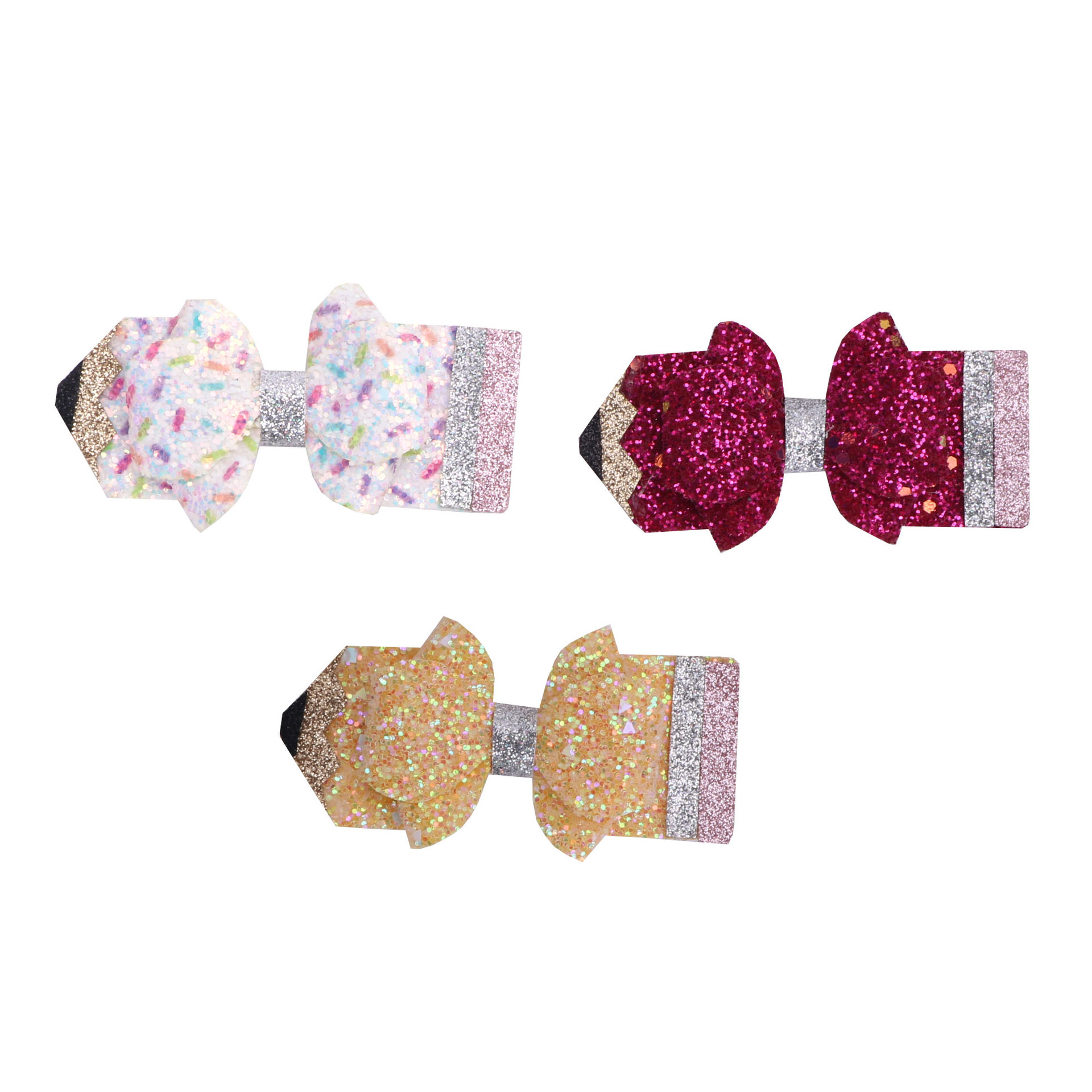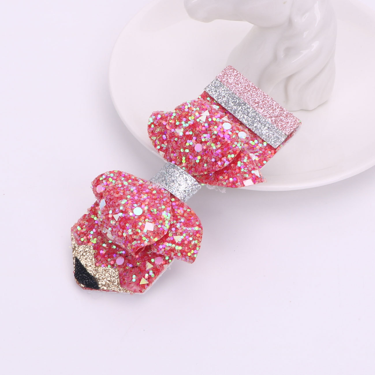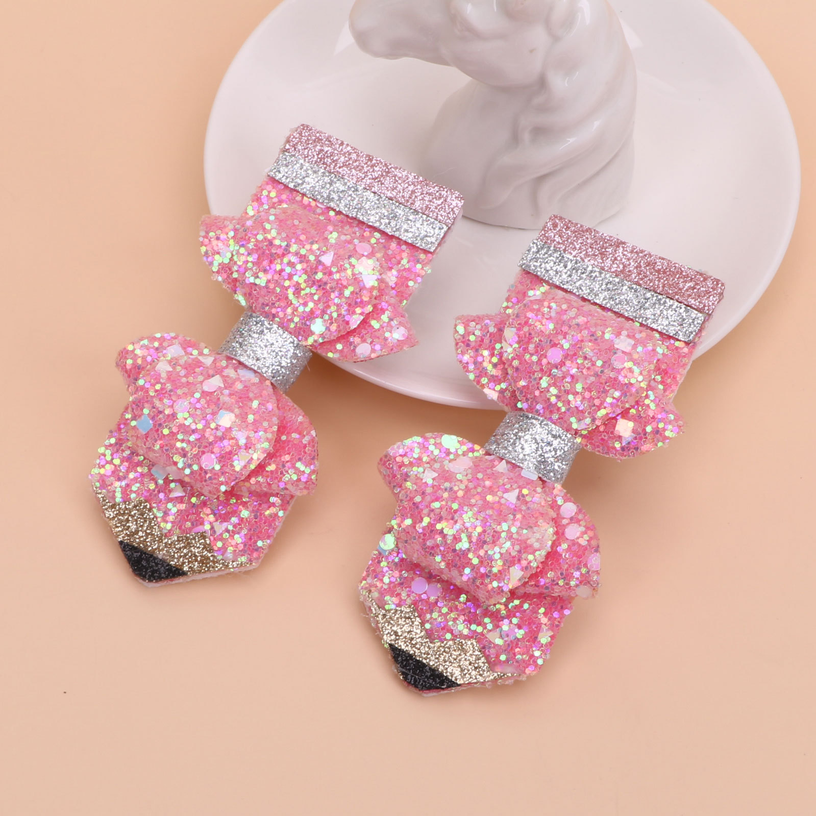 european and american children's great leather sequins back to school season pencil bow tie top clip duckbill clip ponytail side clip hair accessories