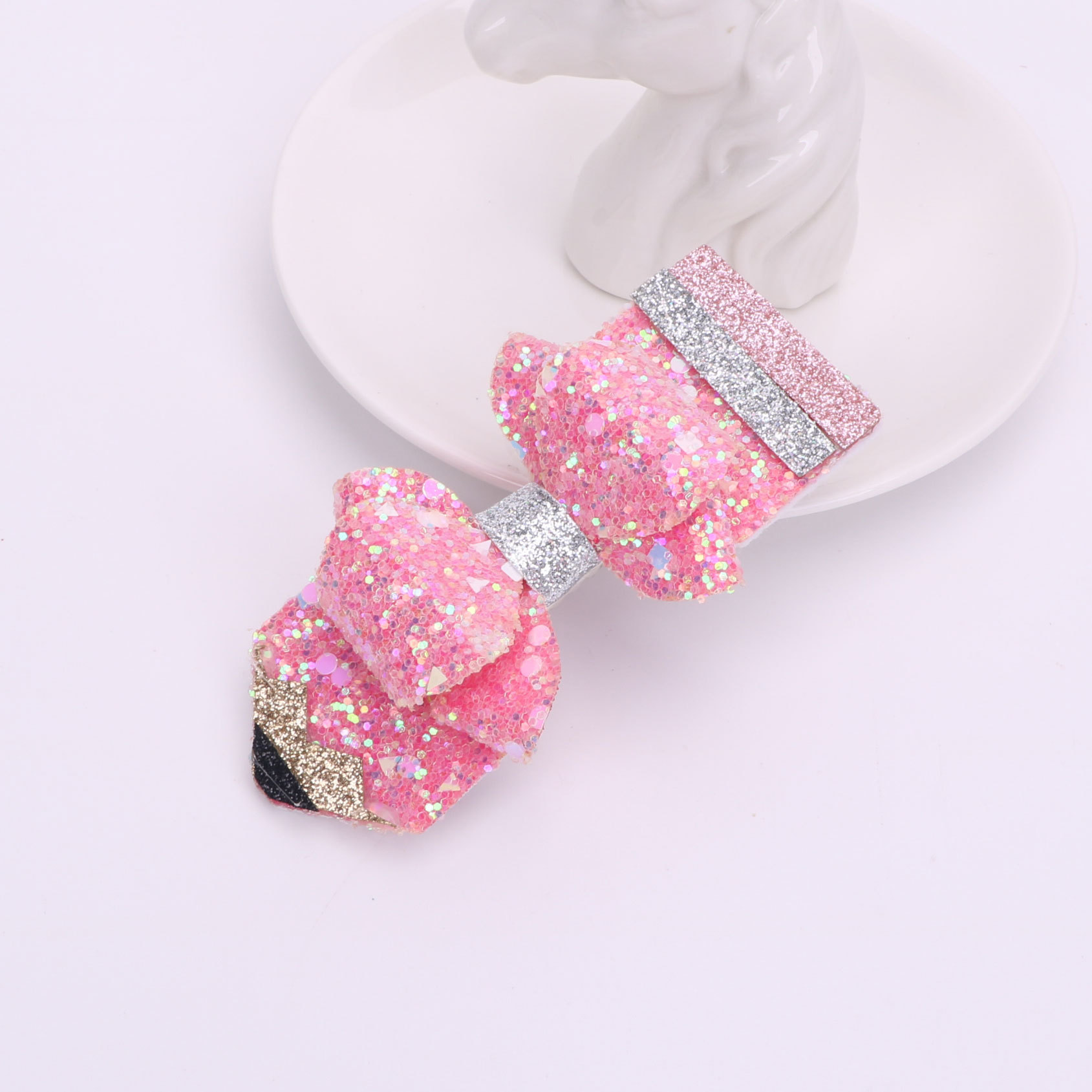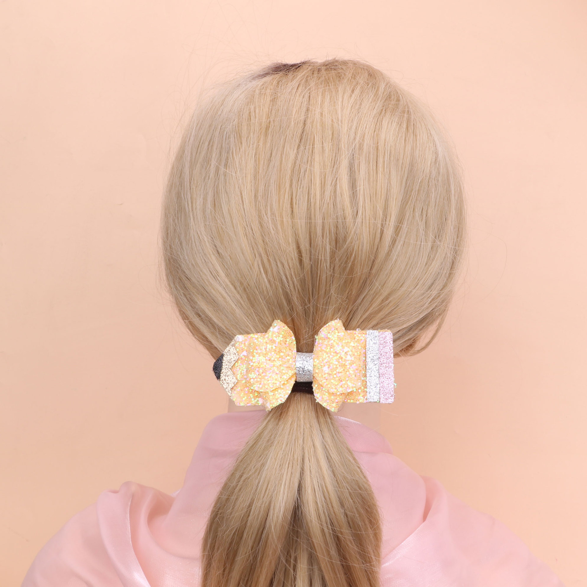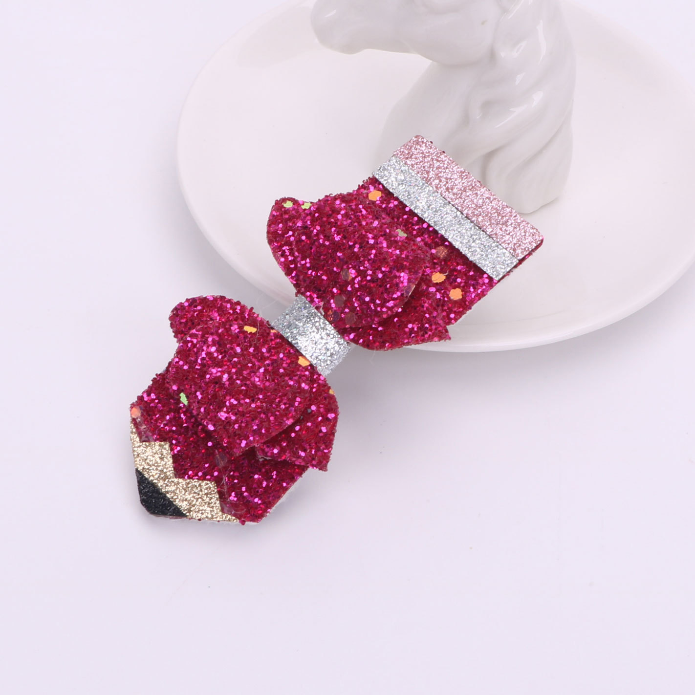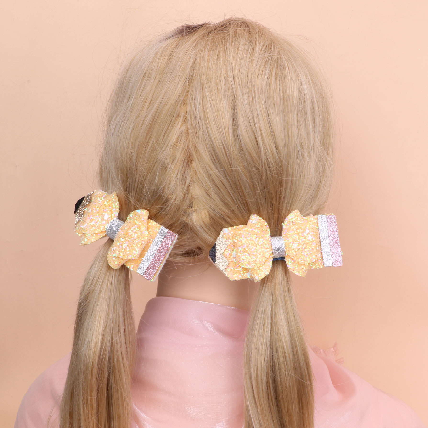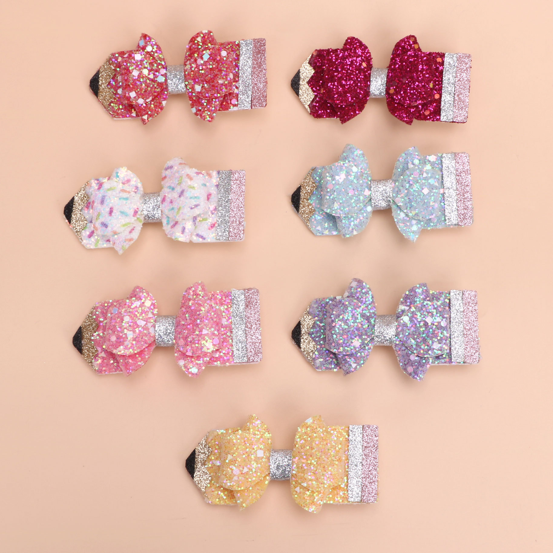 european and american children's great leather sequins back to school season pencil bow tie top clip duckbill clip ponytail side clip hair accessories