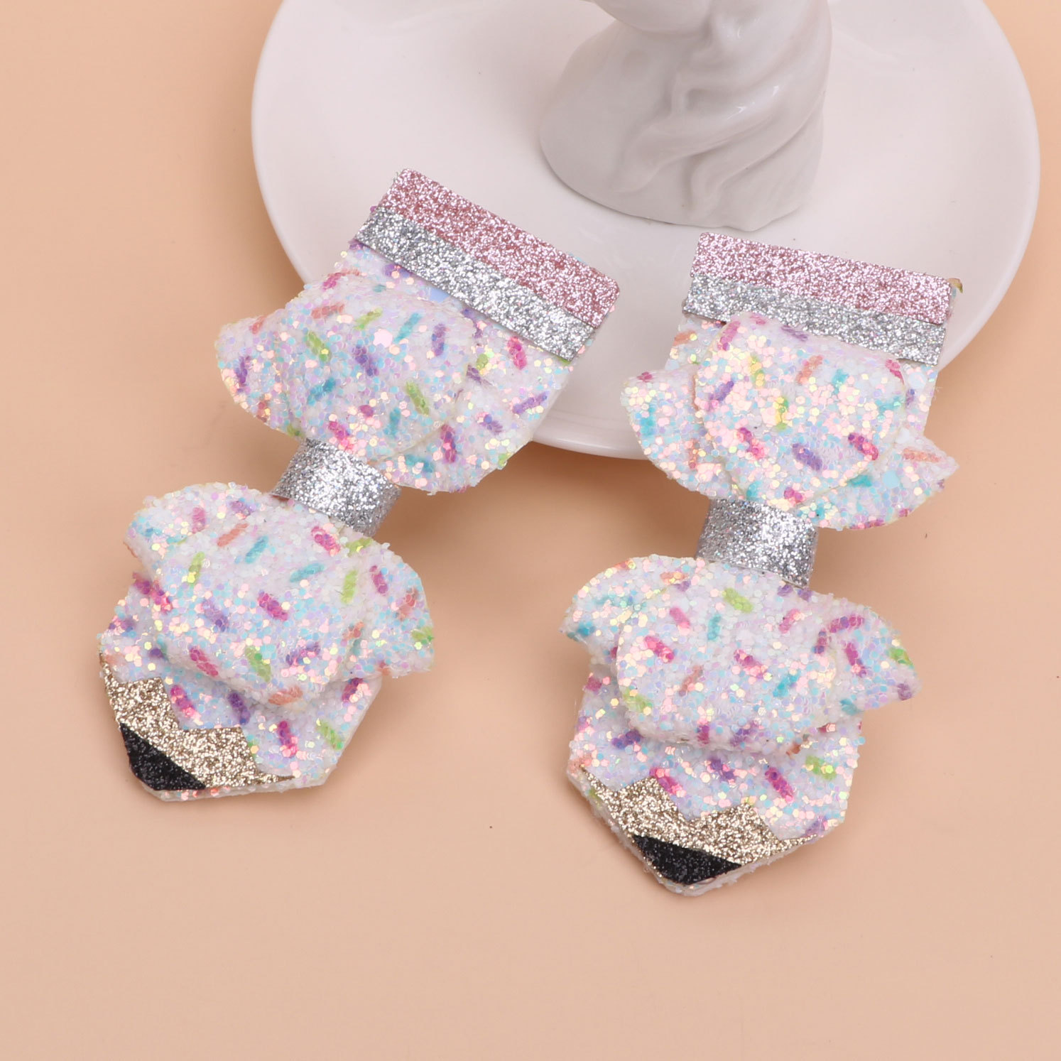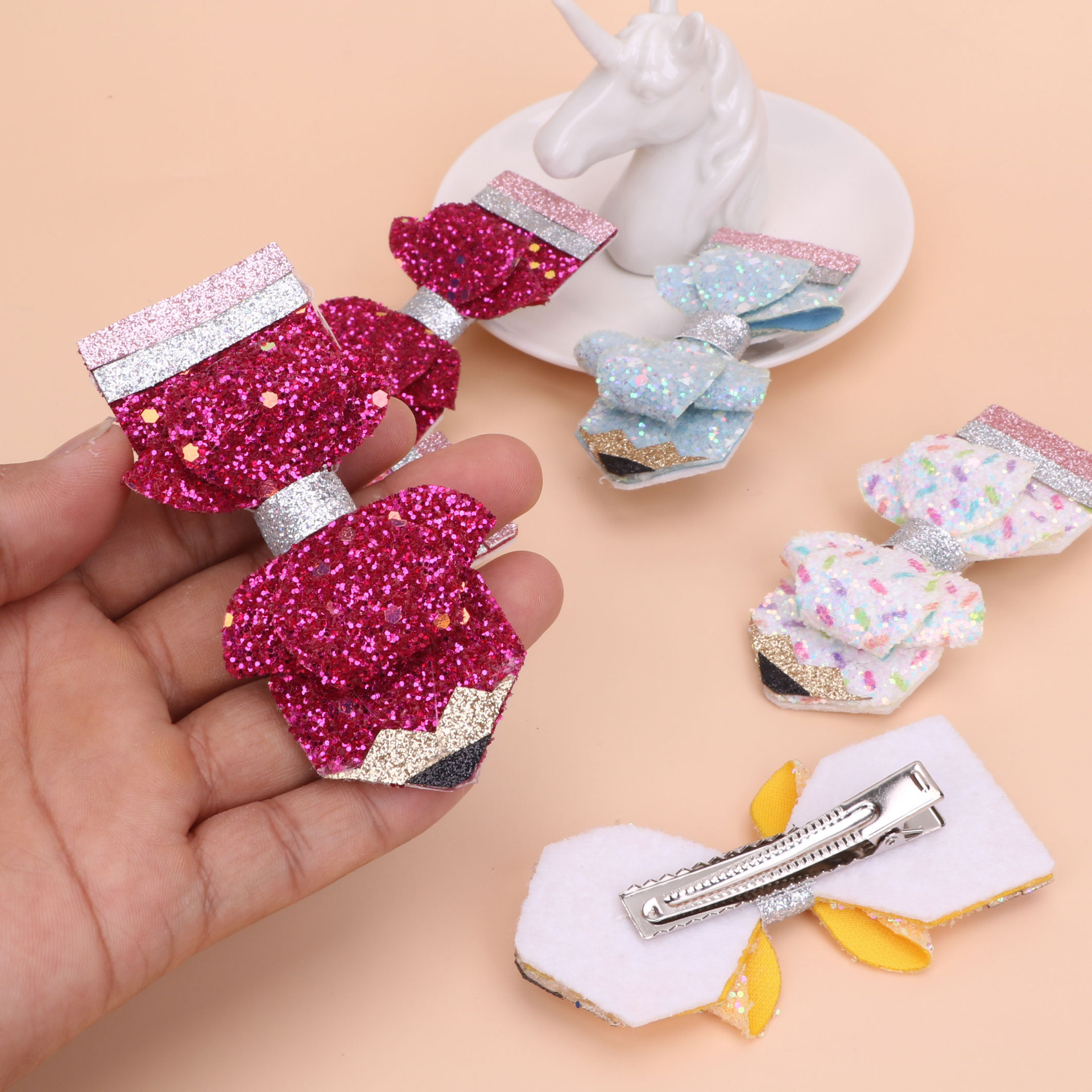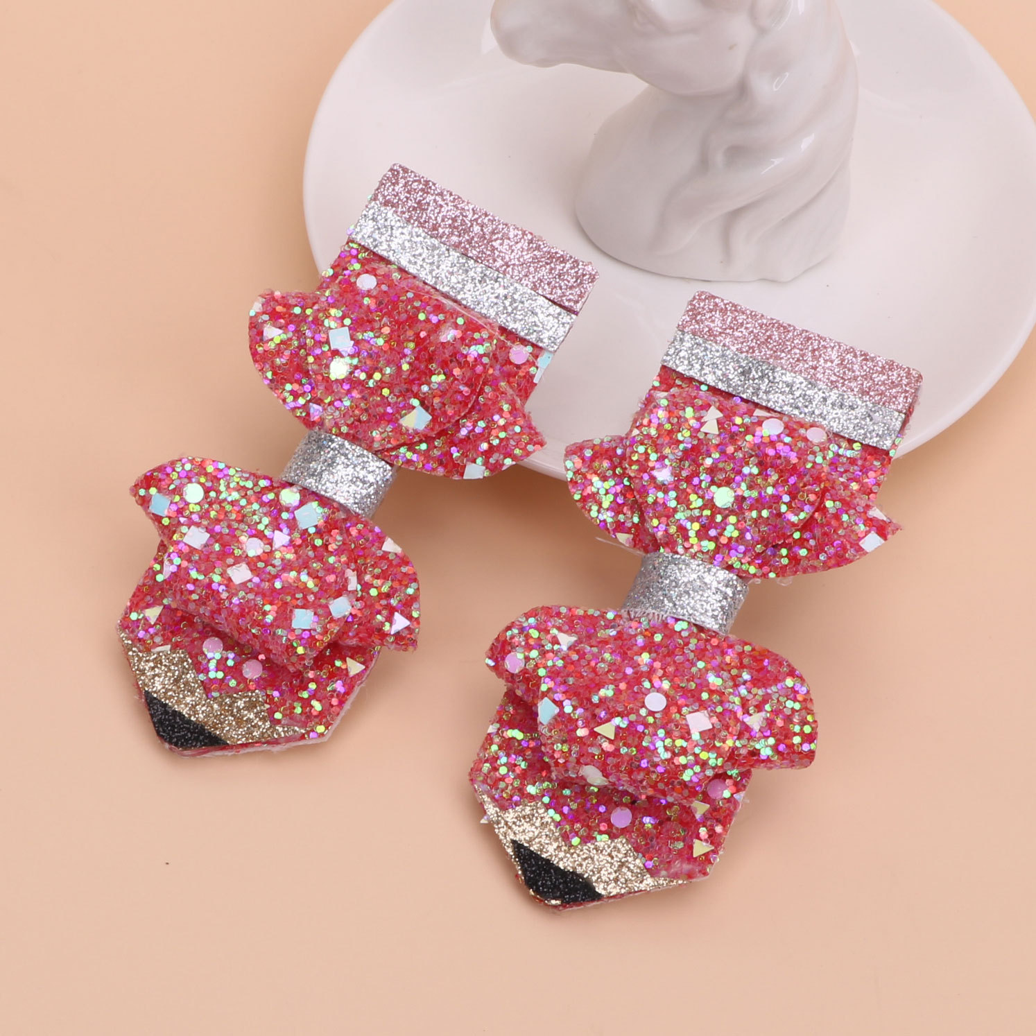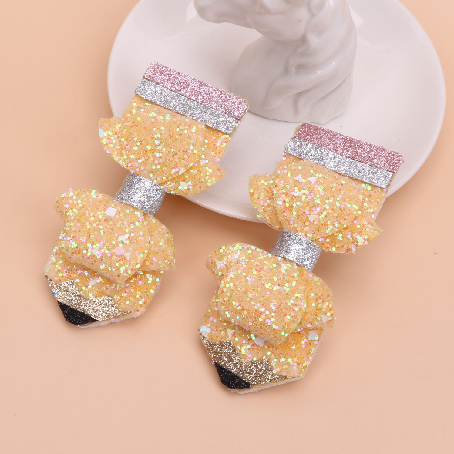 european and american children's great leather sequins back to school season pencil bow tie top clip duckbill clip ponytail side clip hair accessories
