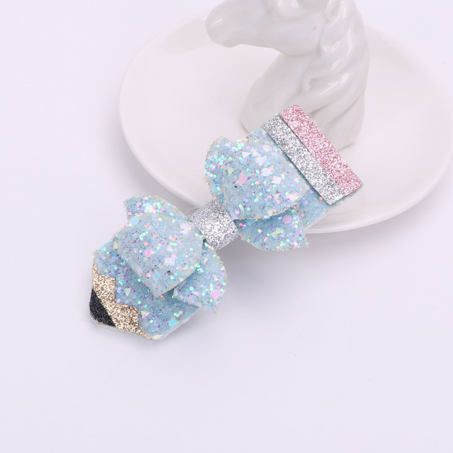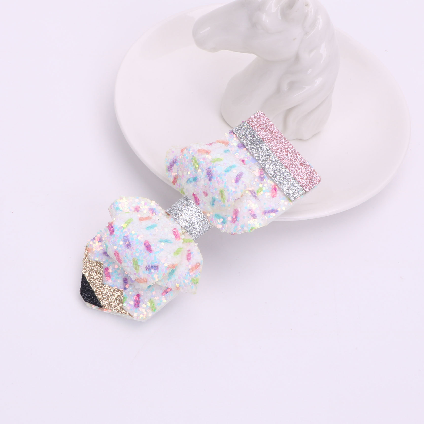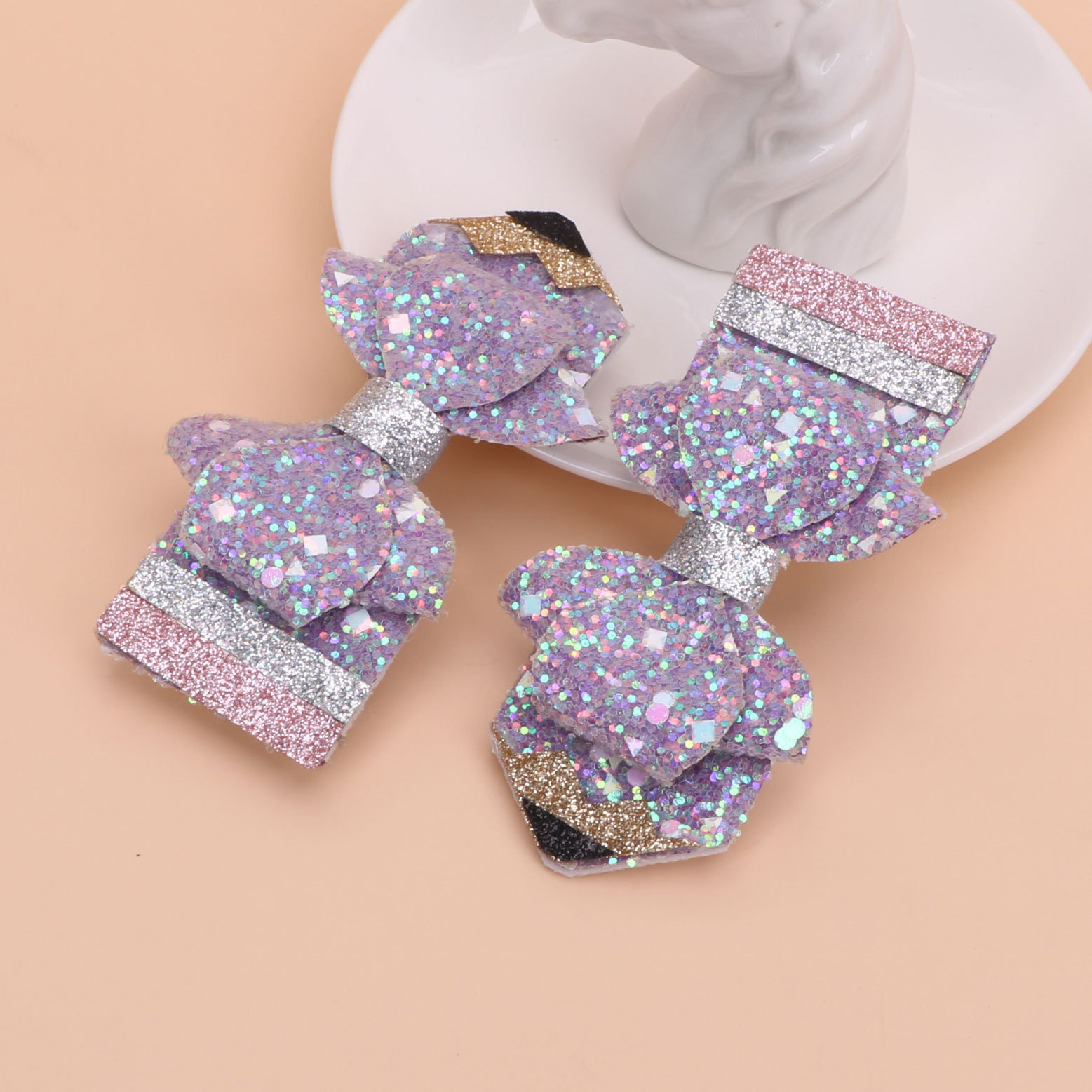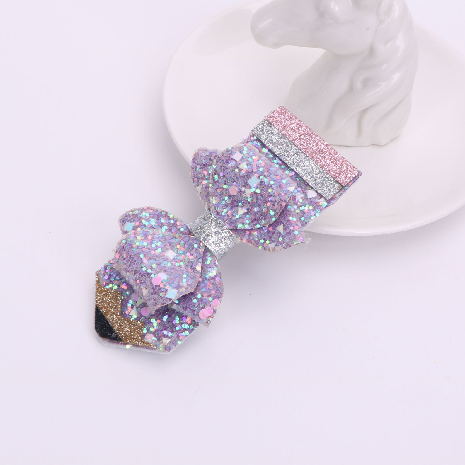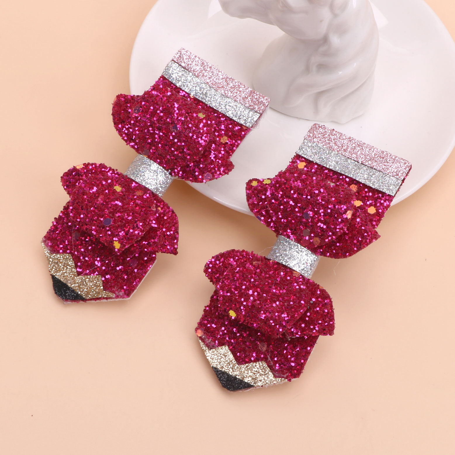 european and american children's great leather sequins back to school season pencil bow tie top clip duckbill clip ponytail side clip hair accessories