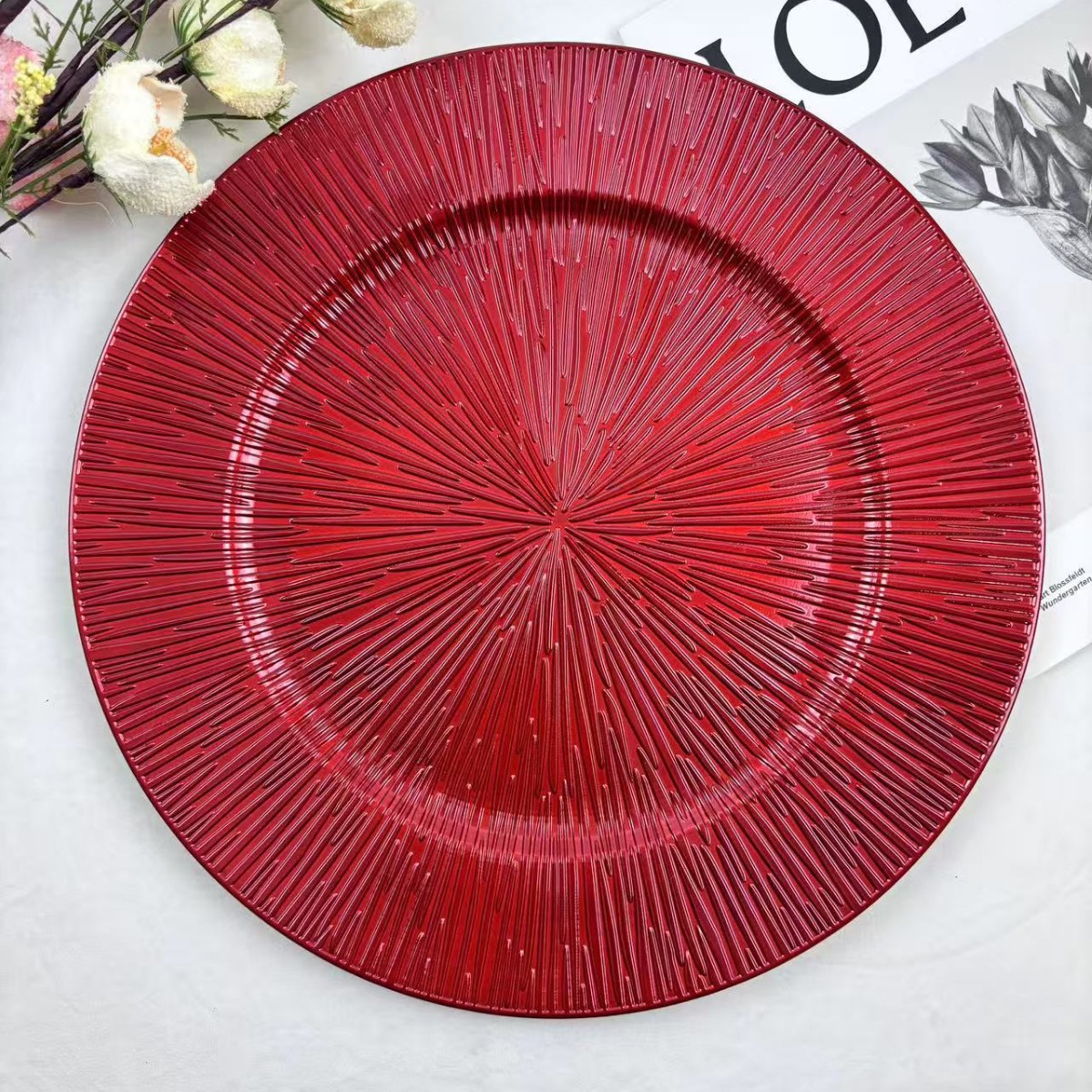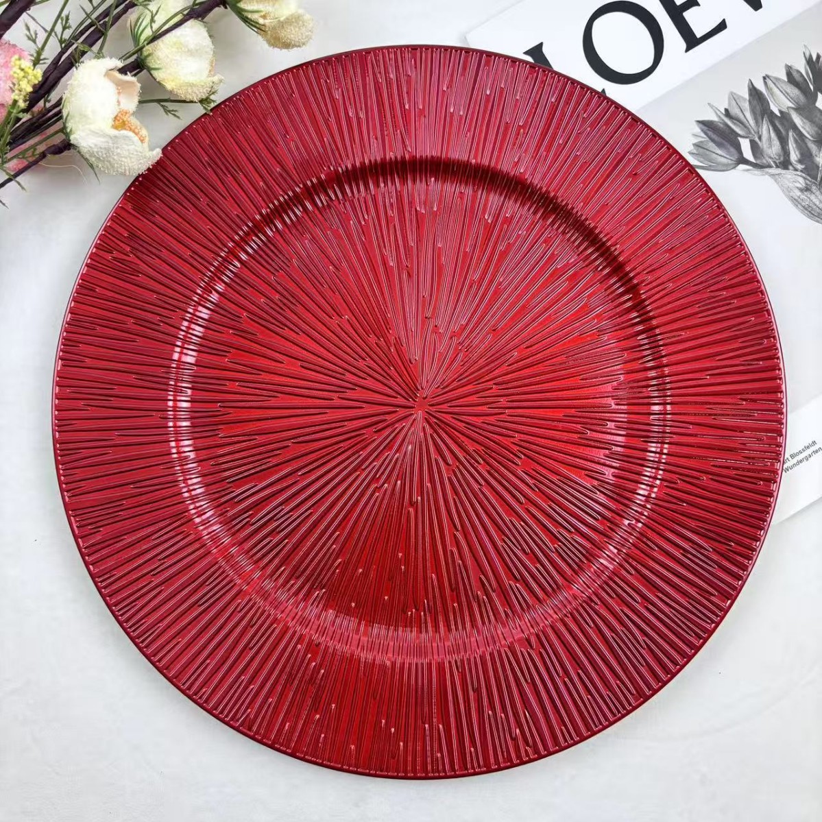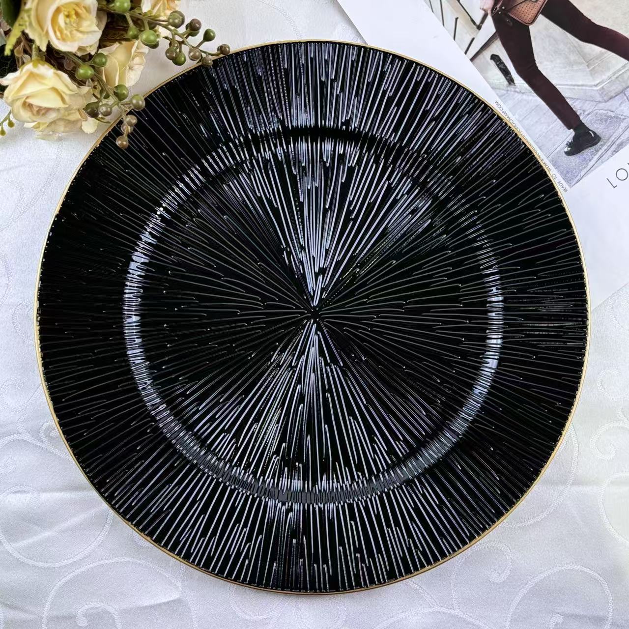 The size, shape, and color of the plates can be customized.Guests specify or provide