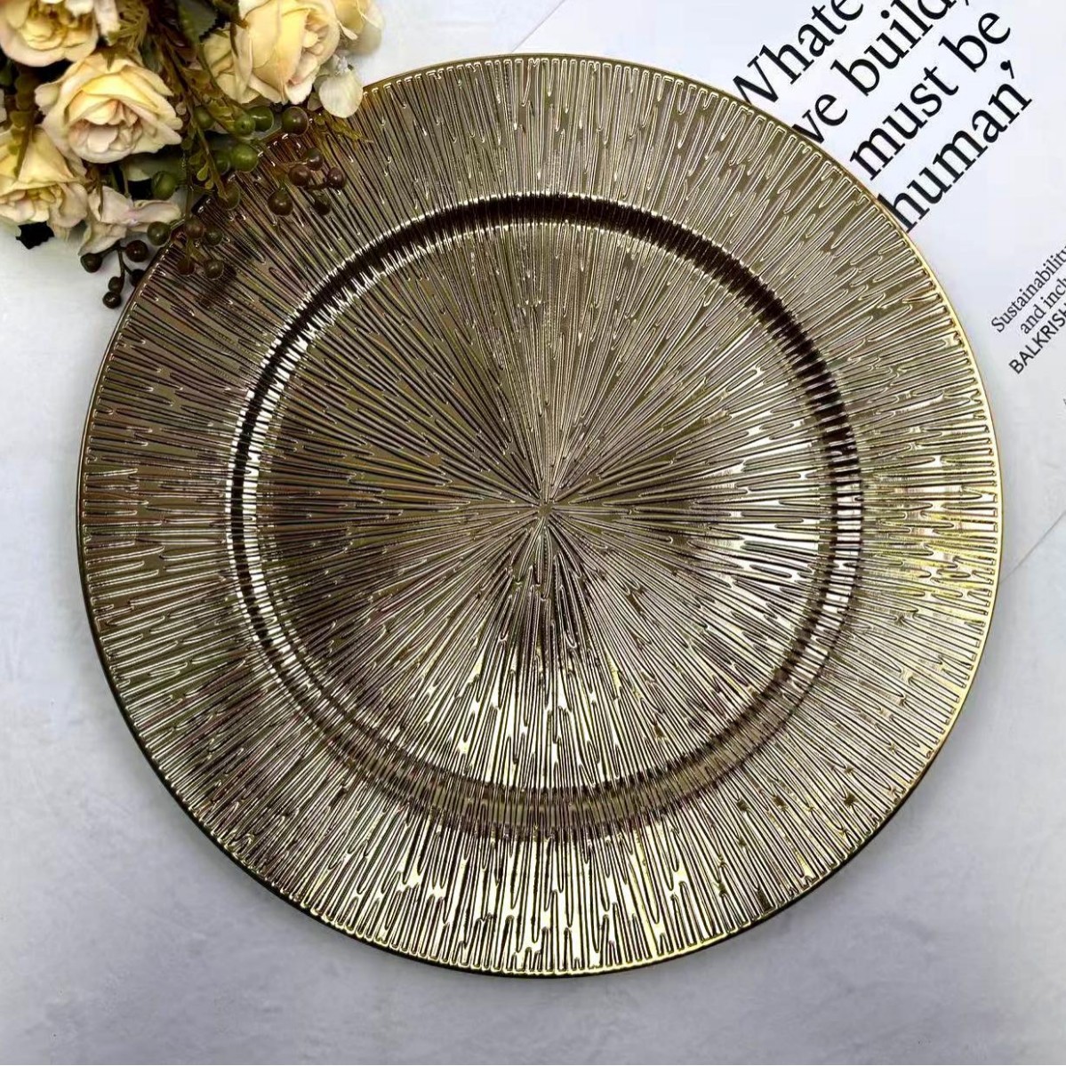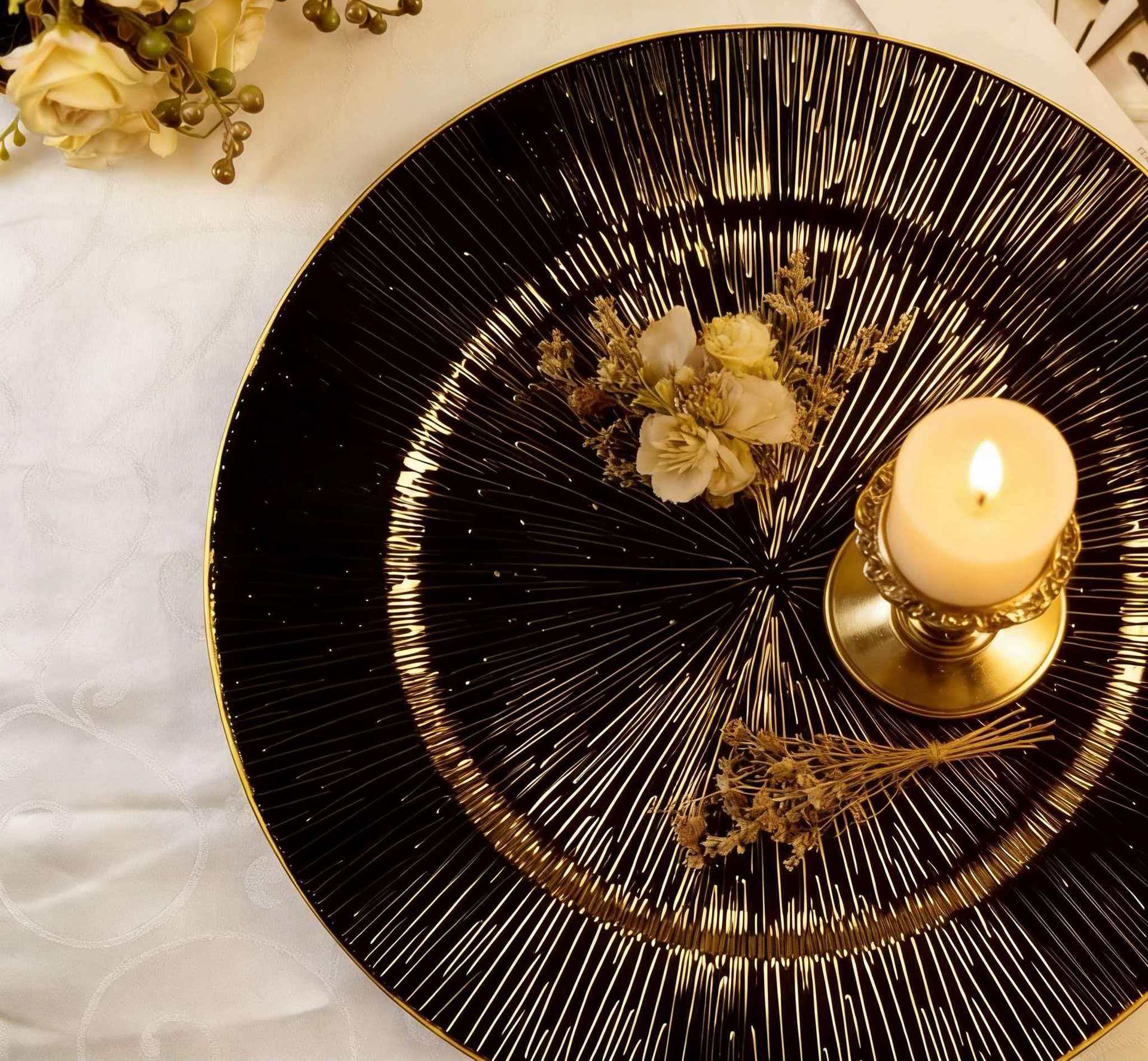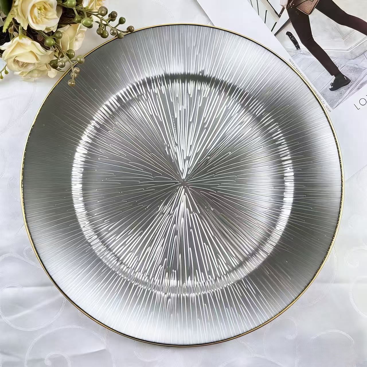 The size, shape, and color of the plates can be customized.Guests specify or provide