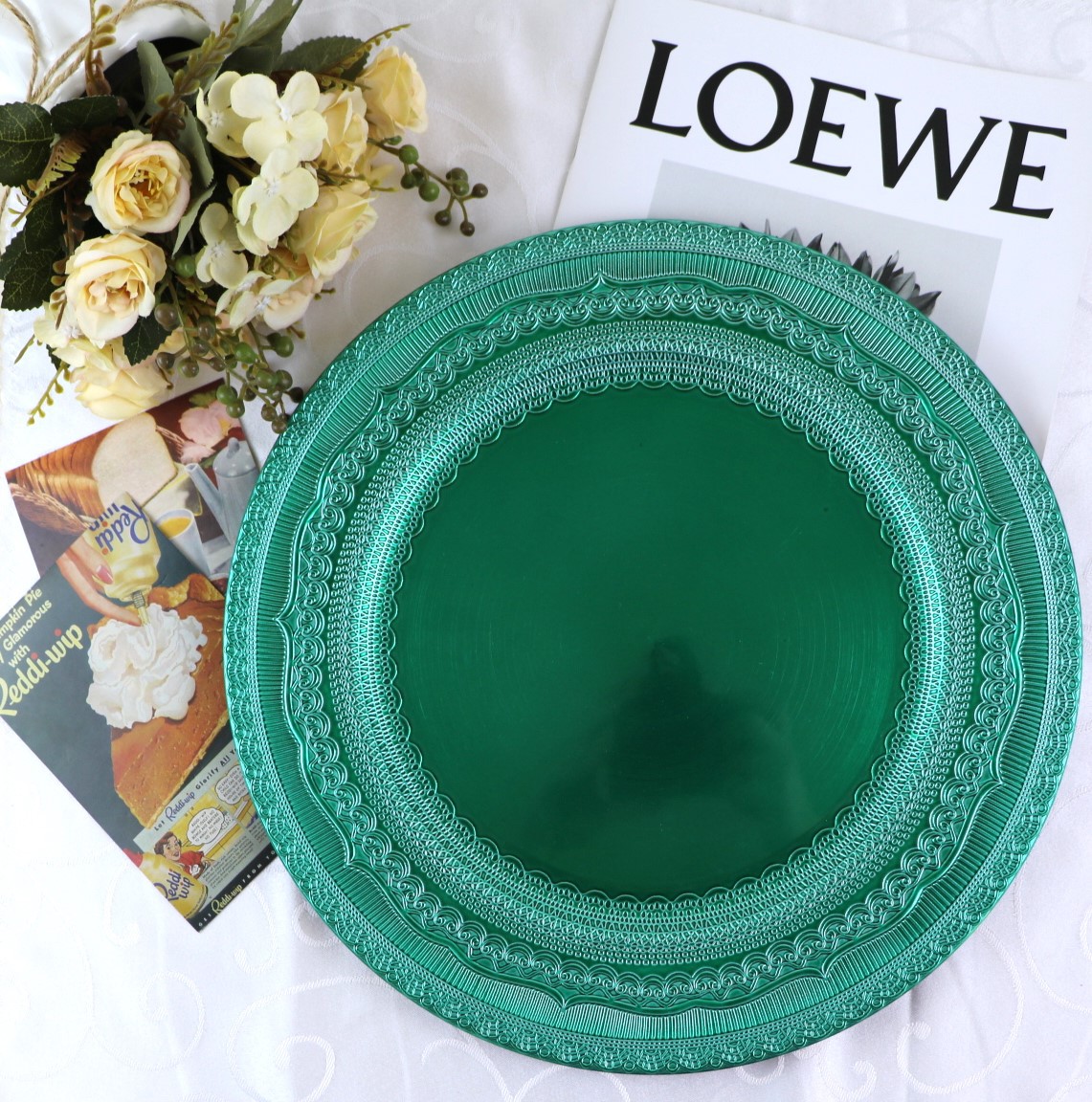 The size, shape, and color of the plates can be customized.Guests specify or provide