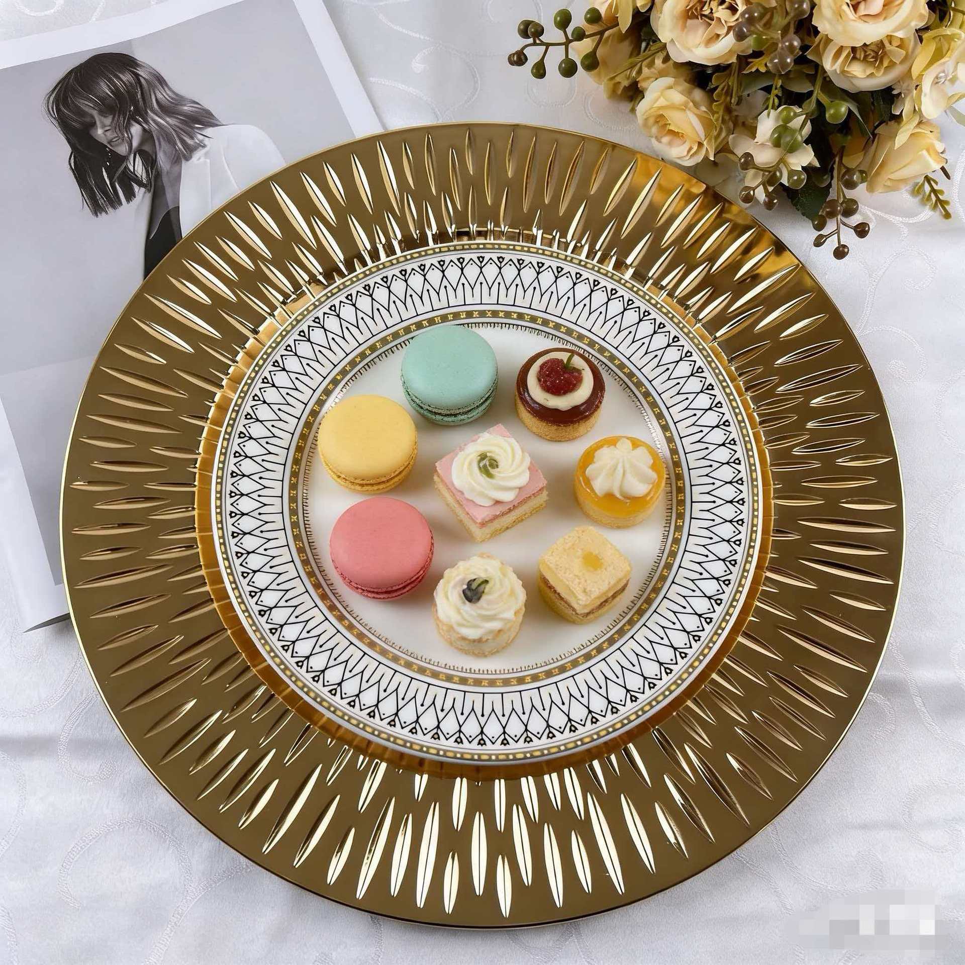 european-style vintage electroplated dinner plate decorative tray foreign trade charge plate snack dish fruit plate