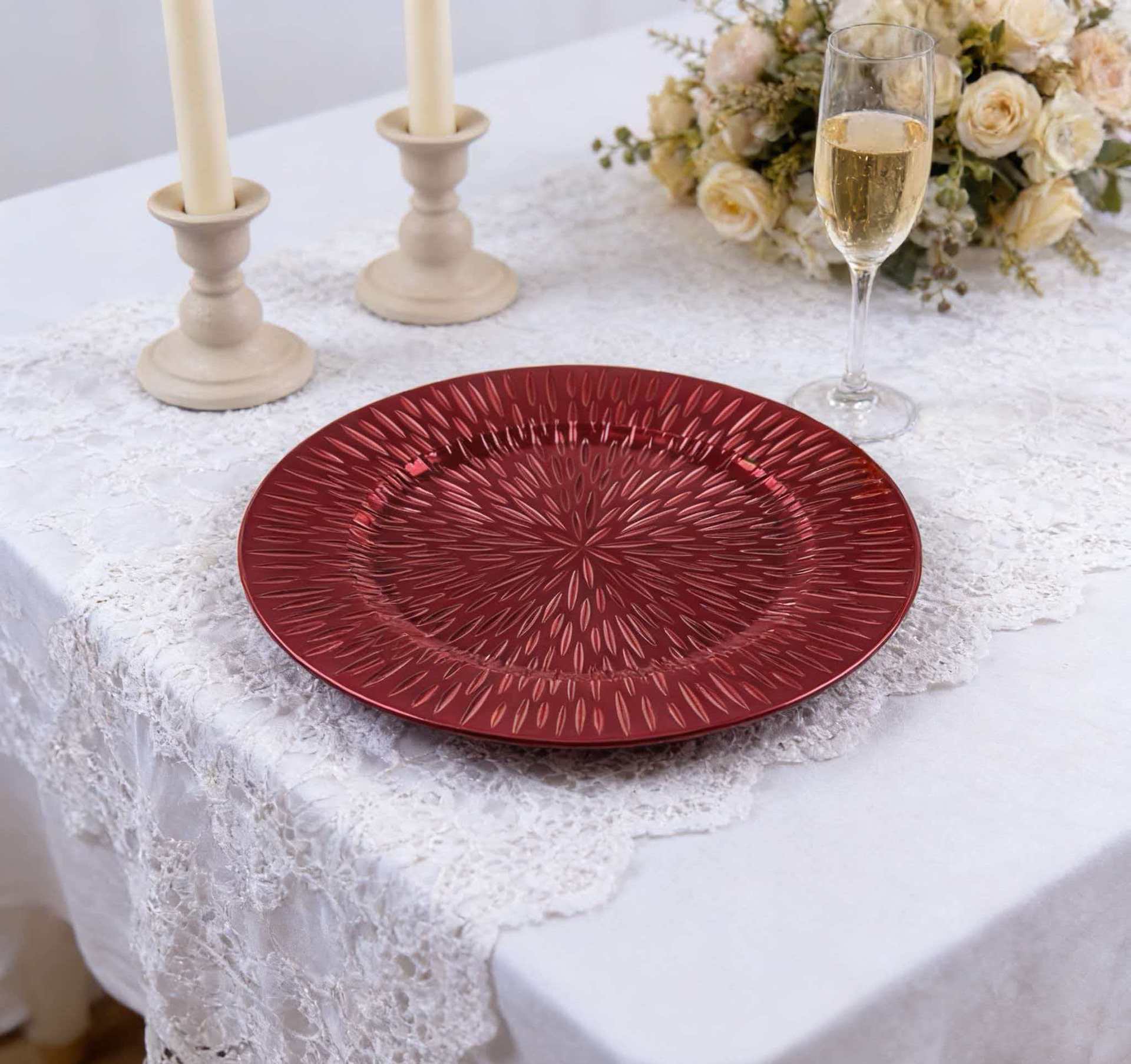 The size, shape, and color of the plates can be customized.Guests specify or provide
