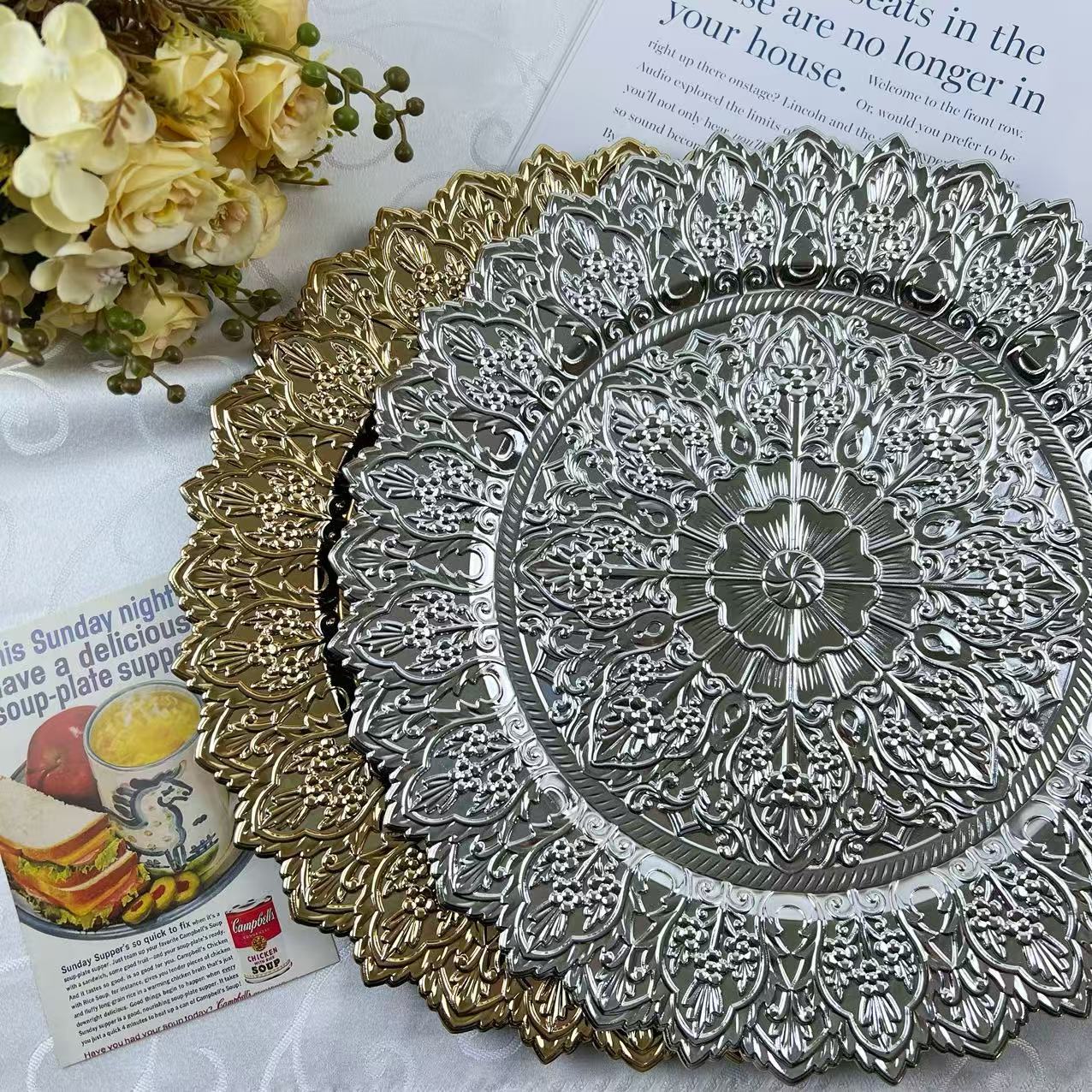 The size, shape, and color of the plates can be customized.Guests specify or provide