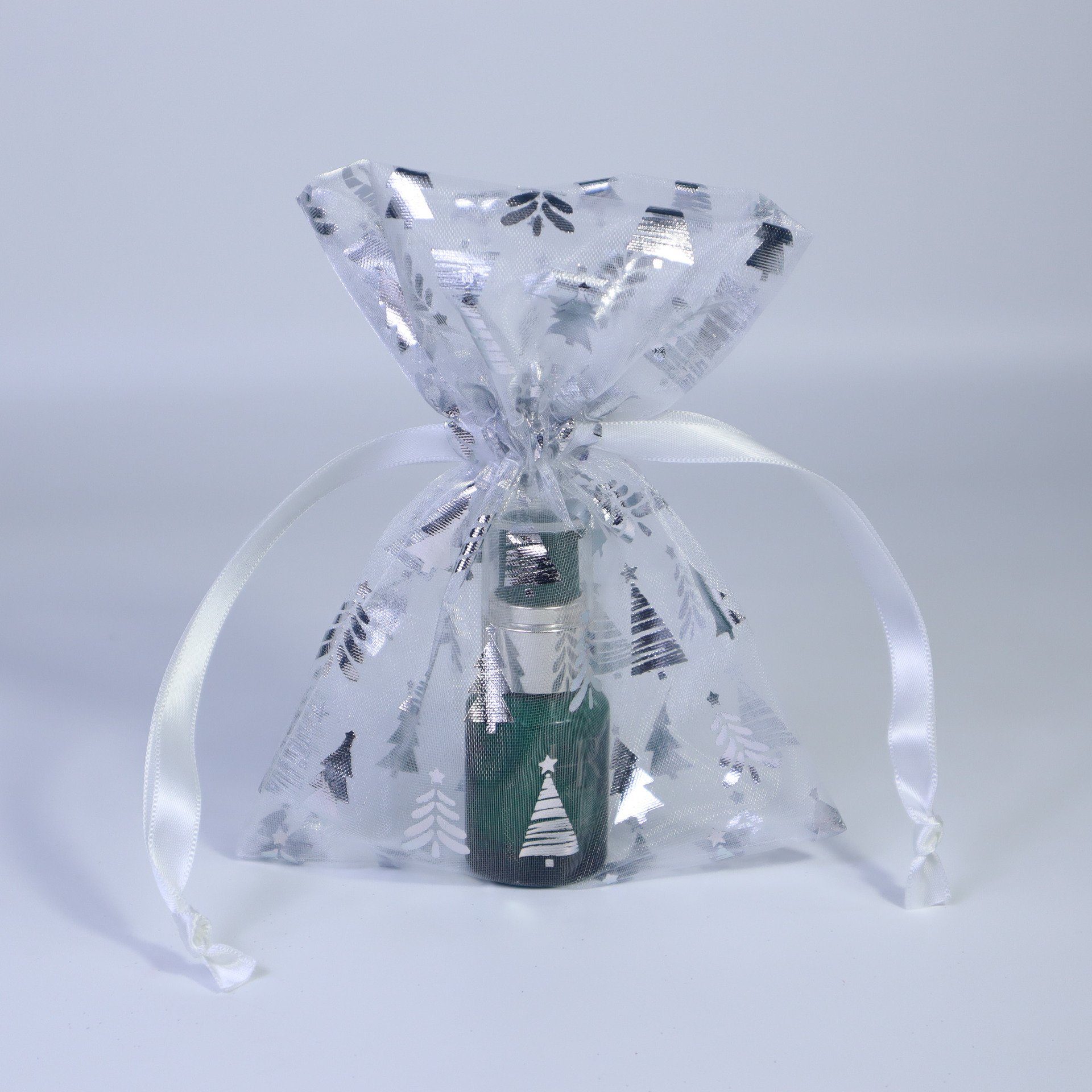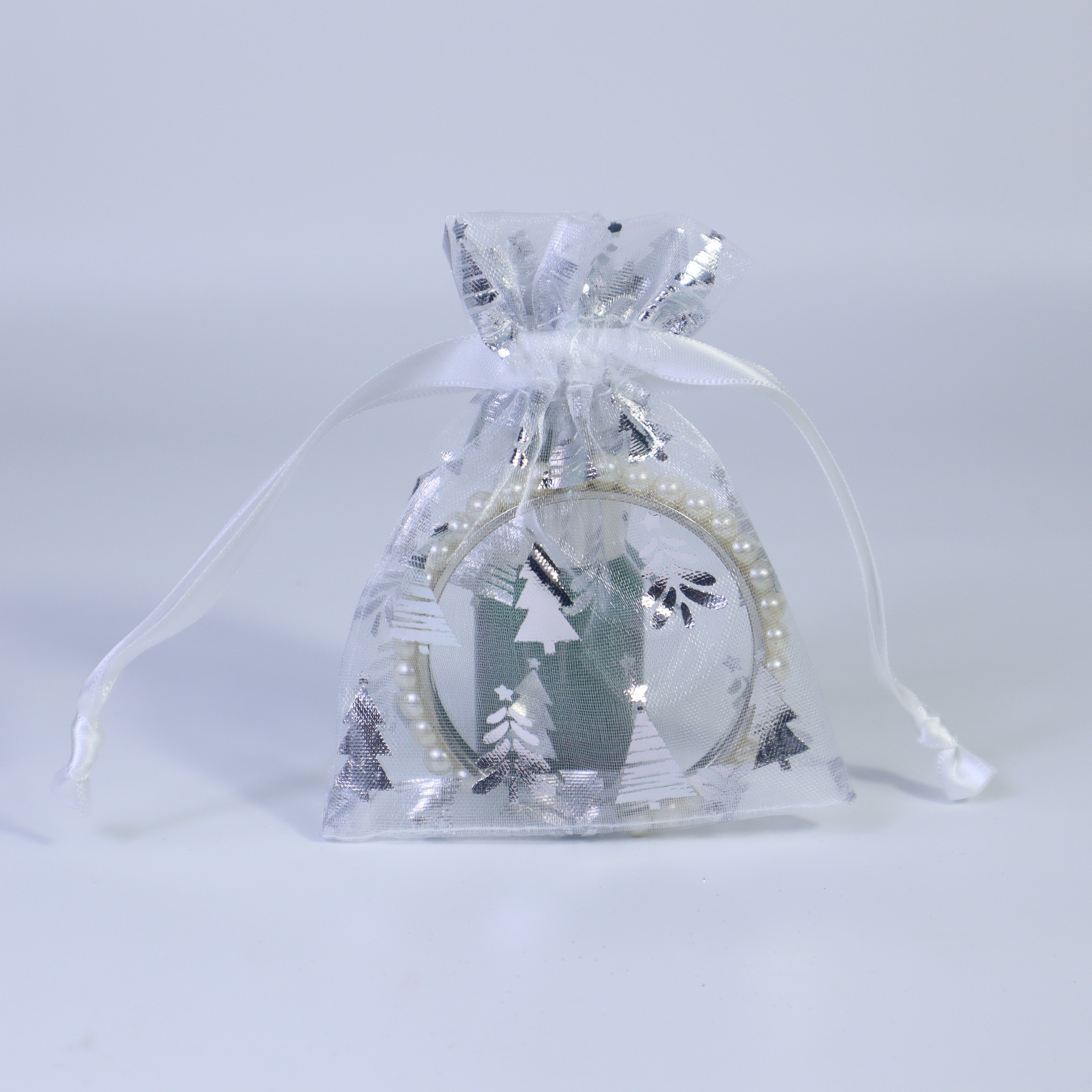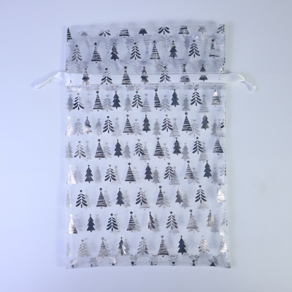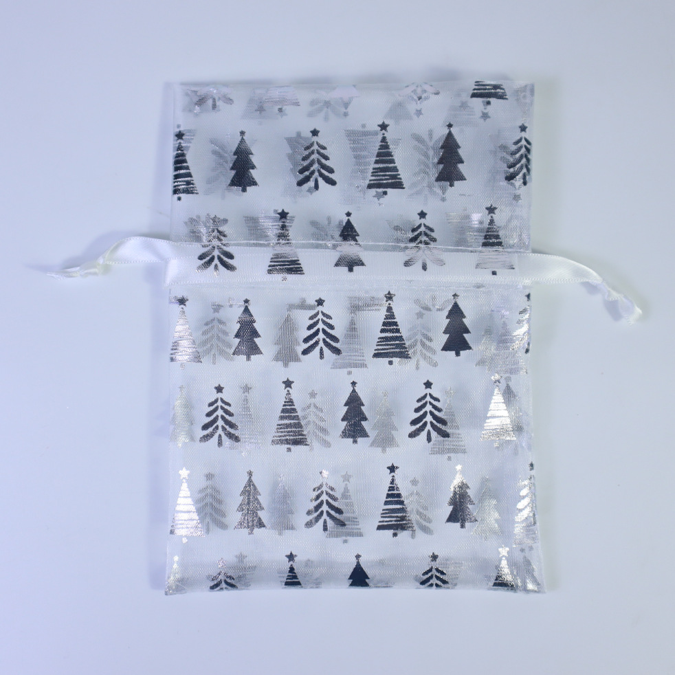 20*30; white – silver tree embossing; three-strand organza