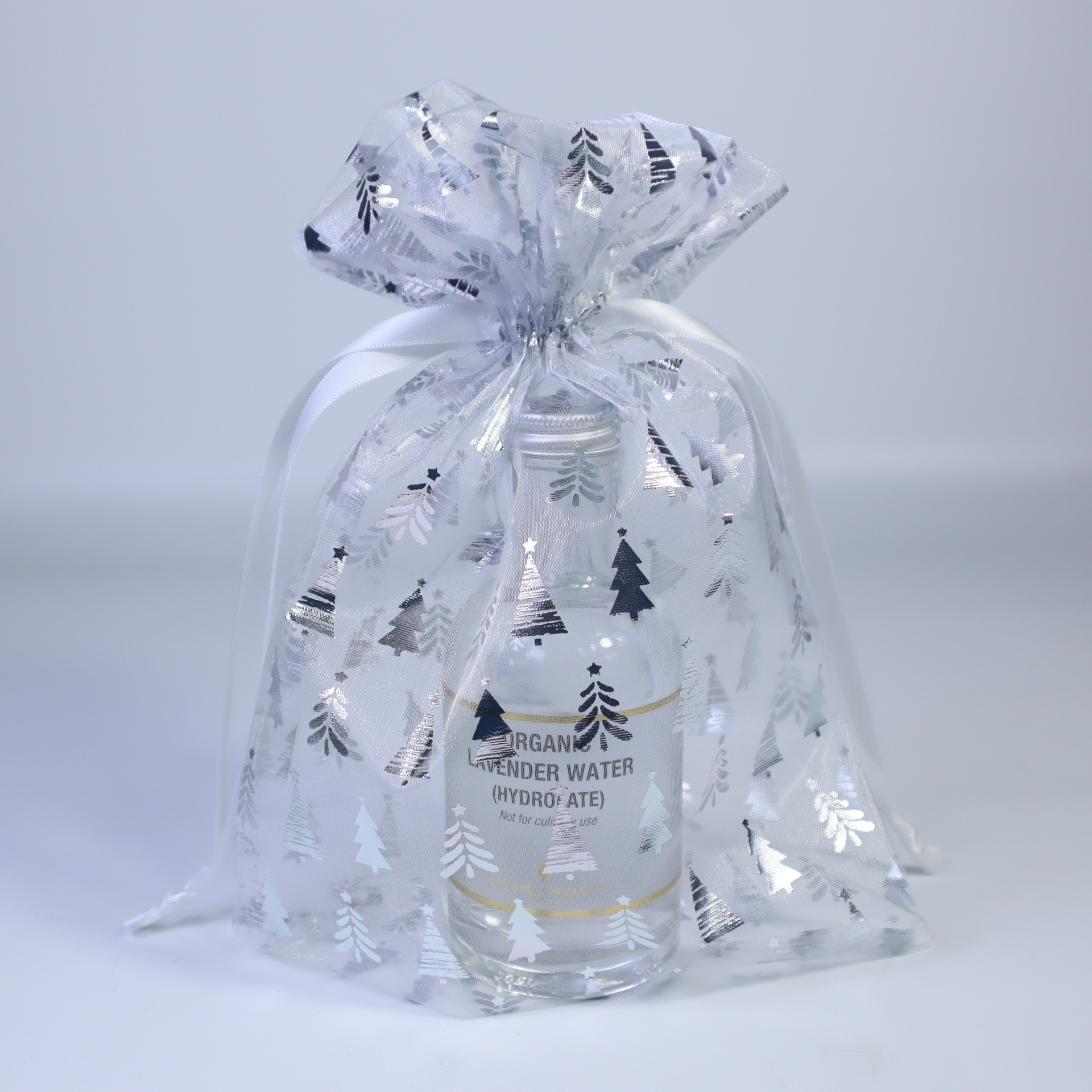 17*23; white – silver tree embossing; three-strand organza