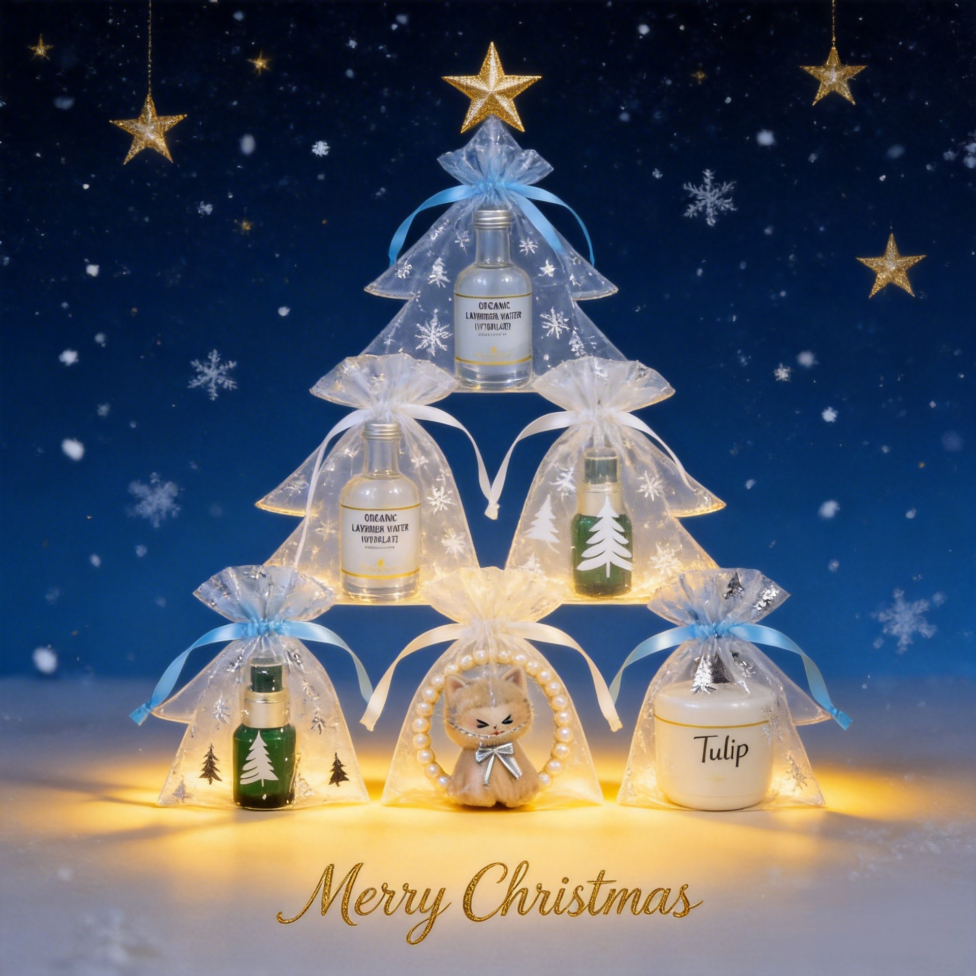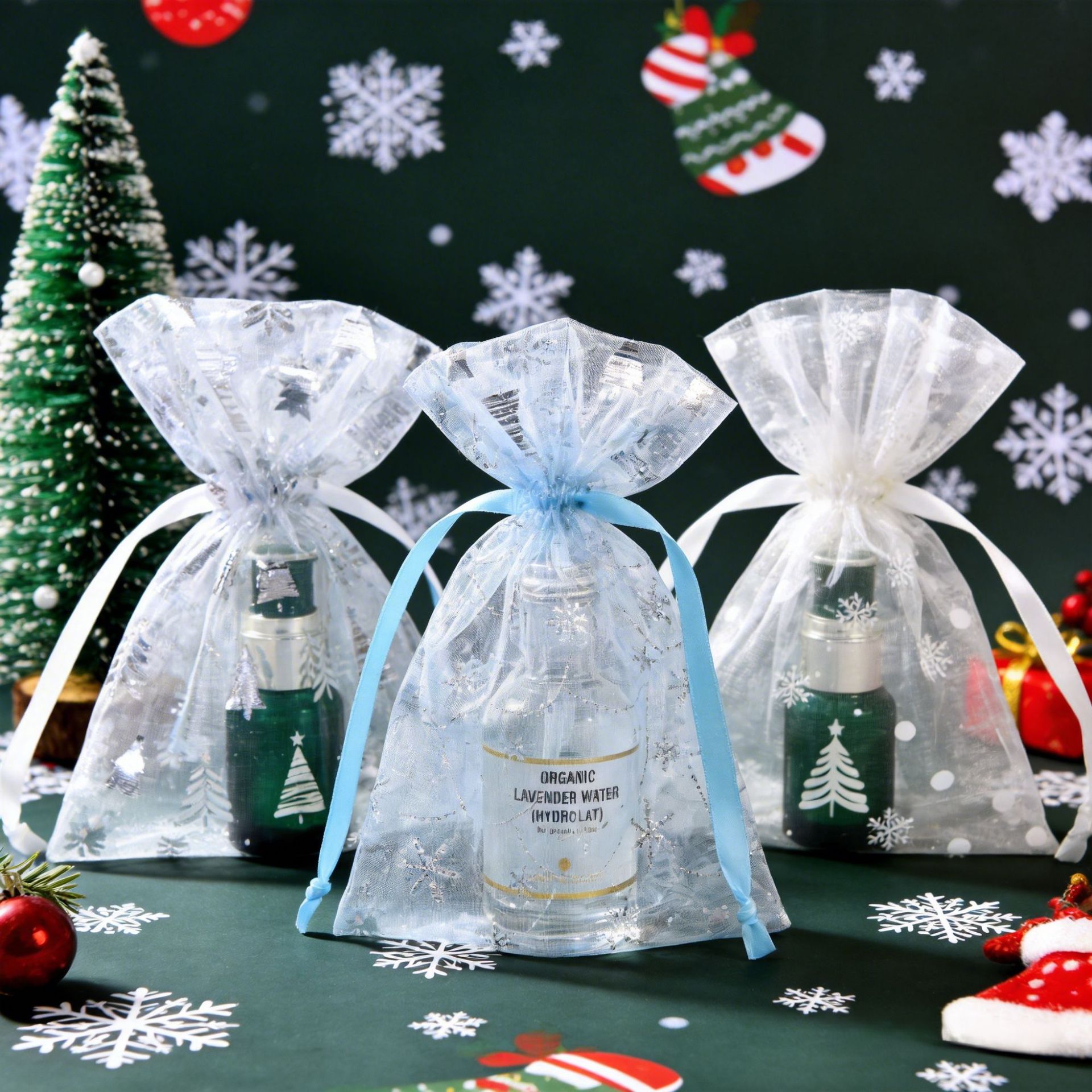 10*15; light blue color-wave snowflake; three-strand yarn · organza