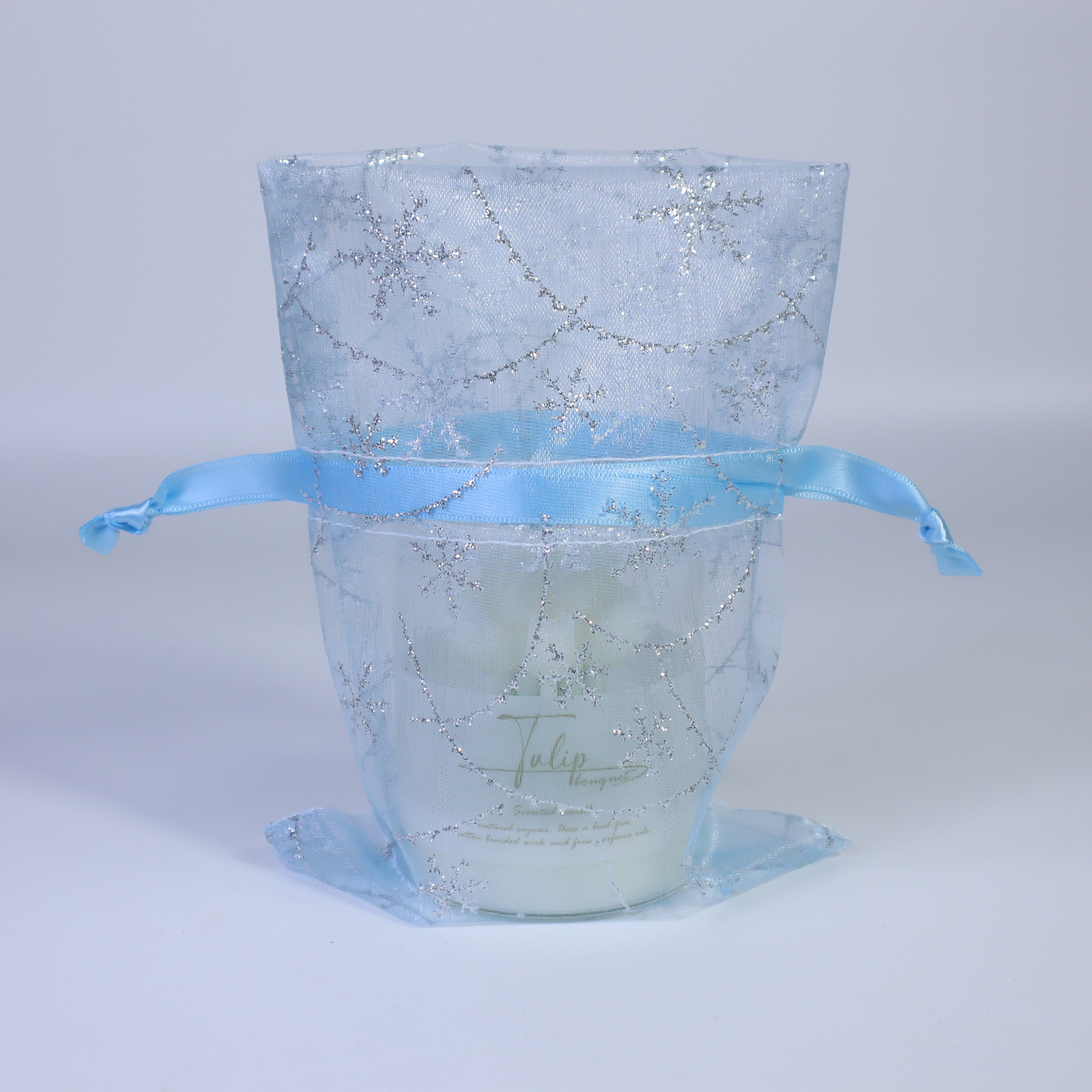 20*30; light blue color-wave snowflake; three-strand yarn · organza