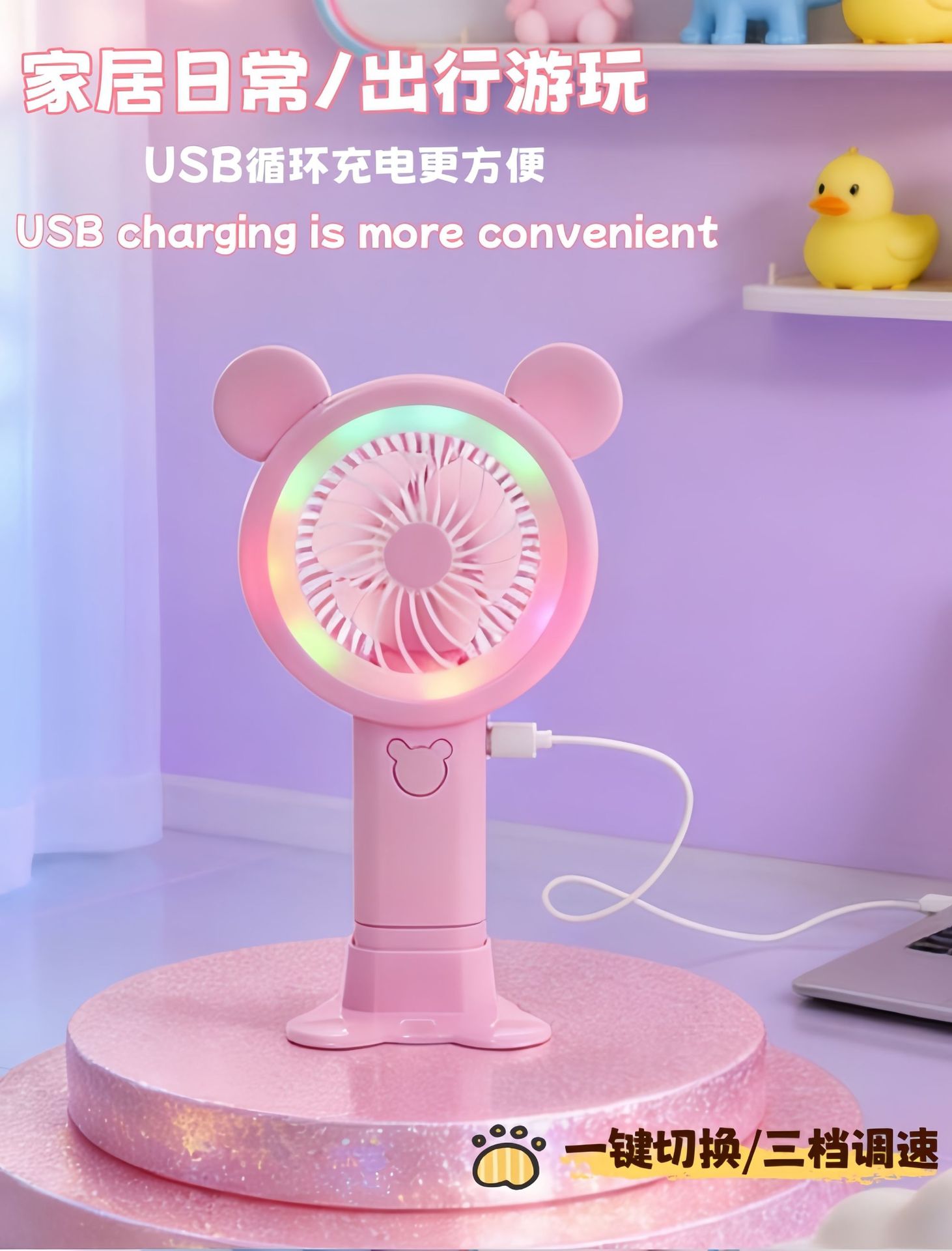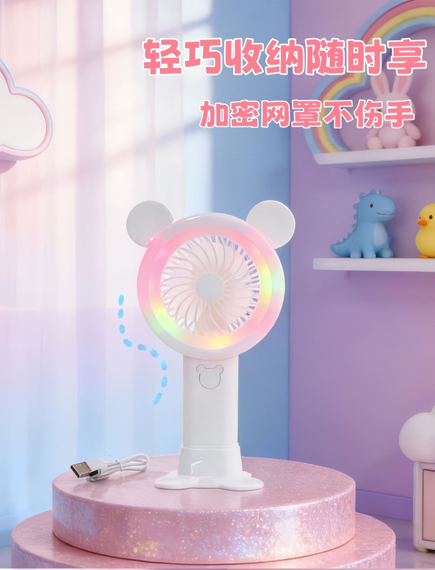 additional features: small night lamp, mobile phone holder, usb cable charging