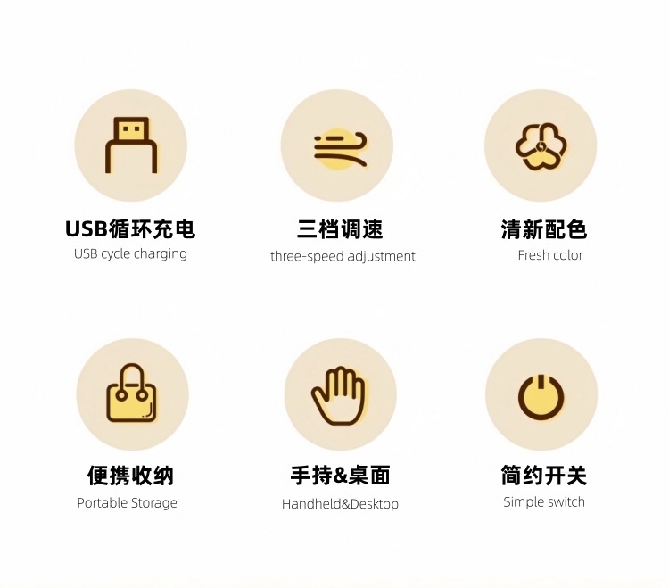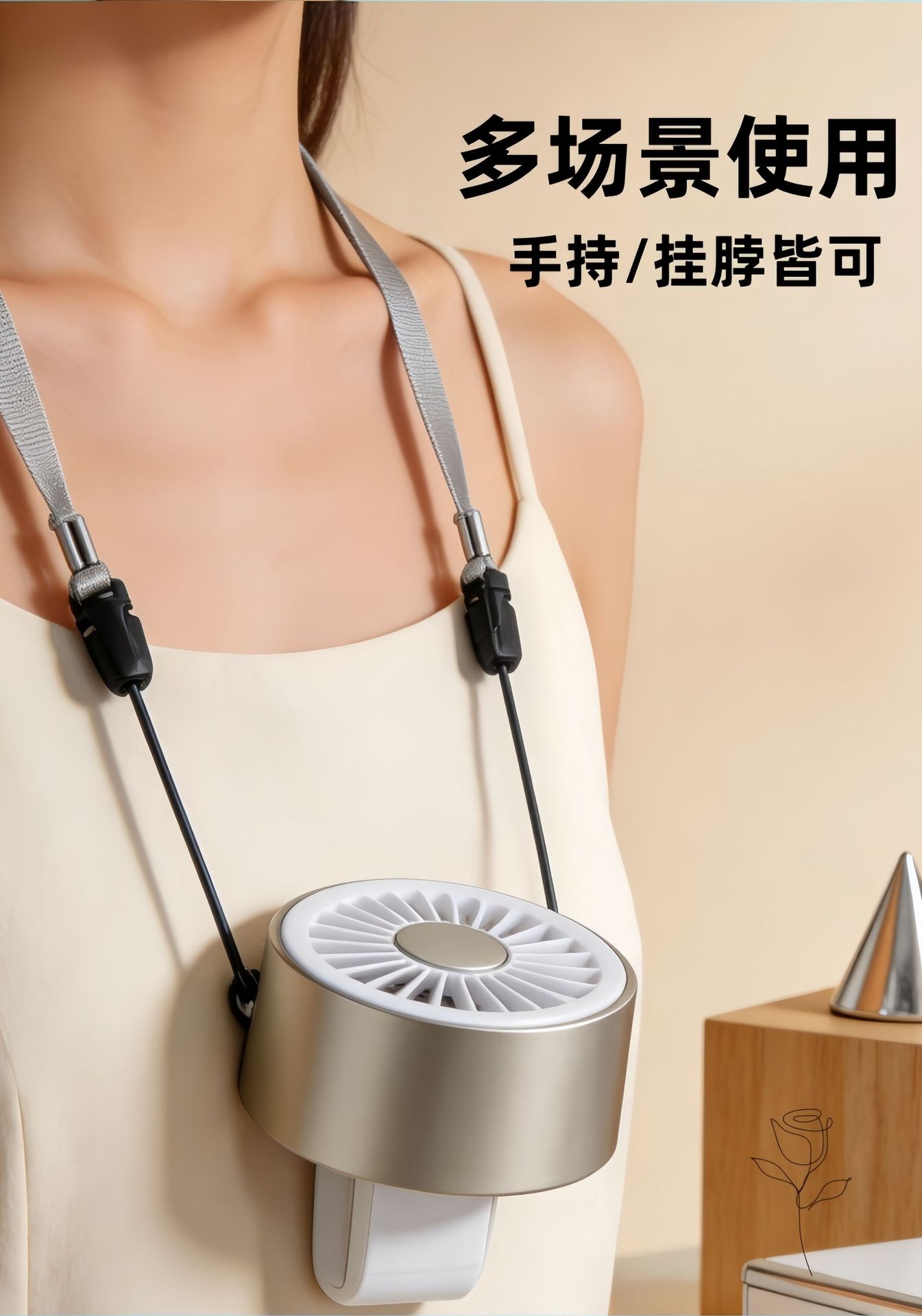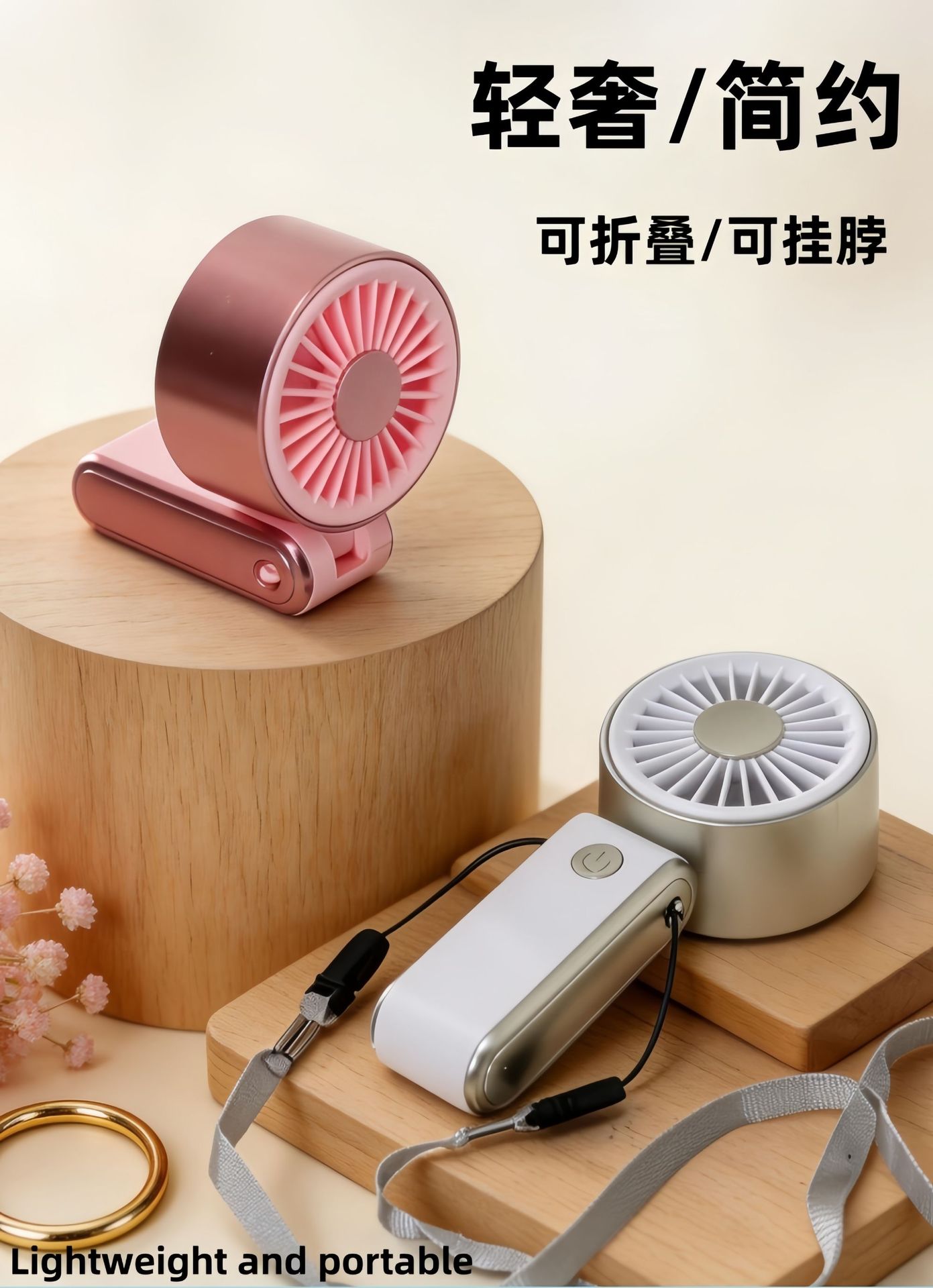 additional features: hanging neck, folding, usb cable charging