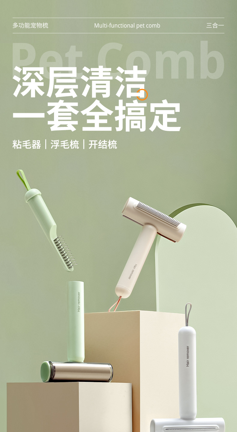 Three-in-one Multi-functional Pet Combs (Lint Remover, Loose Hair Comb, Tangle Remover)