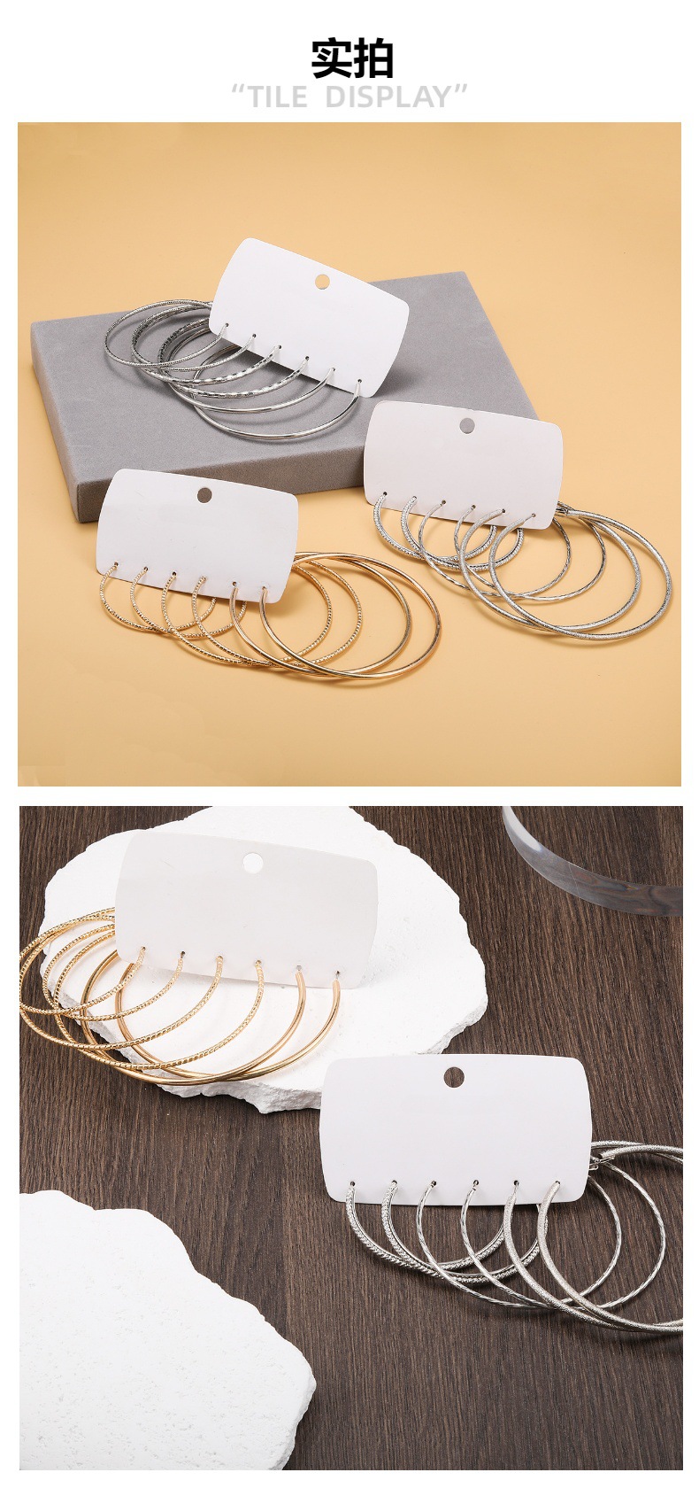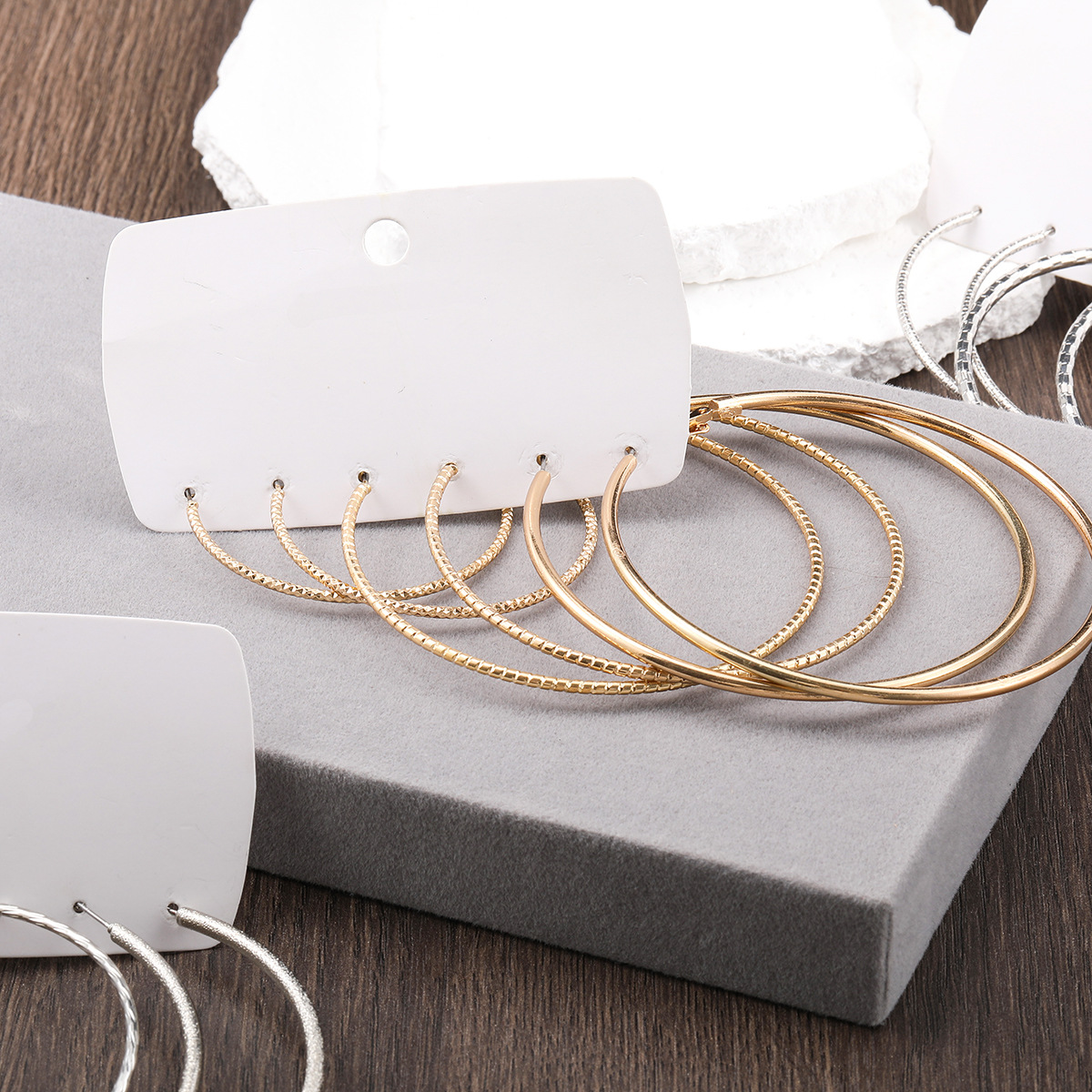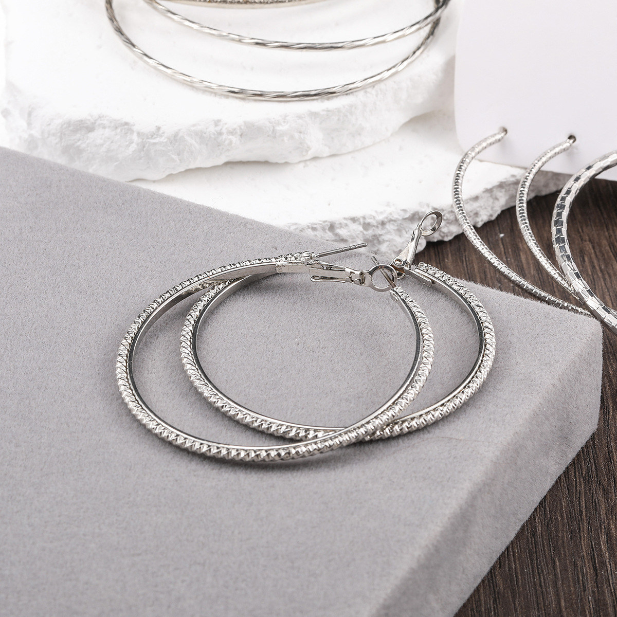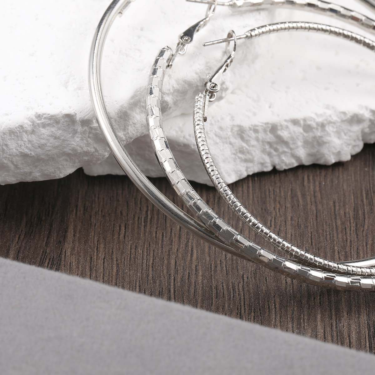 silver large-aperture style 2-earring 3-pair set
