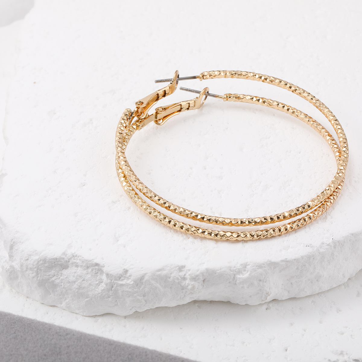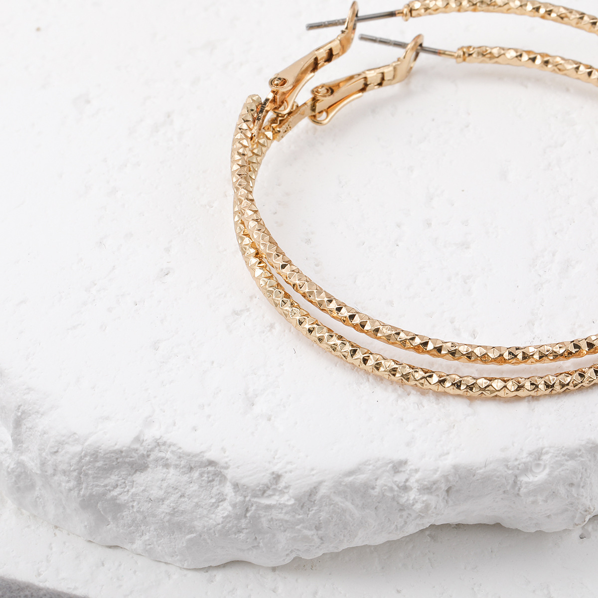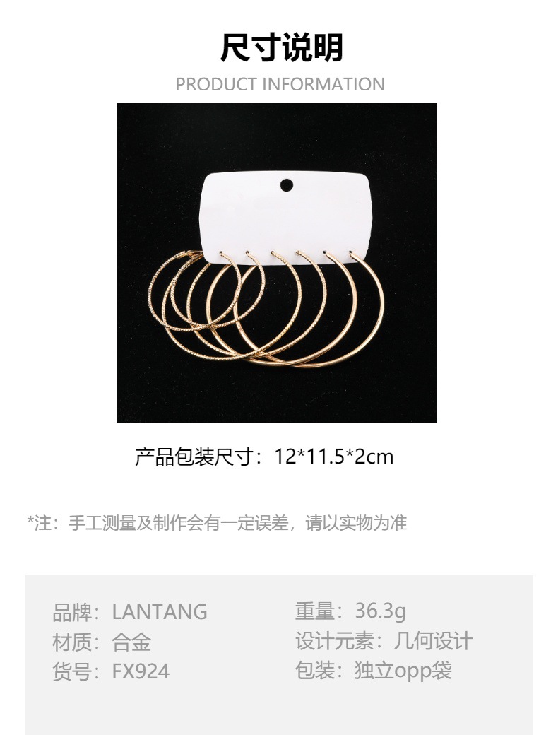 golden large-hole earring 3-pair set