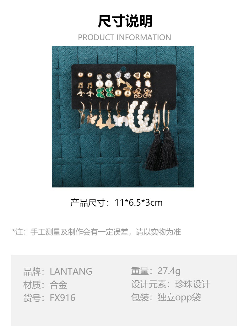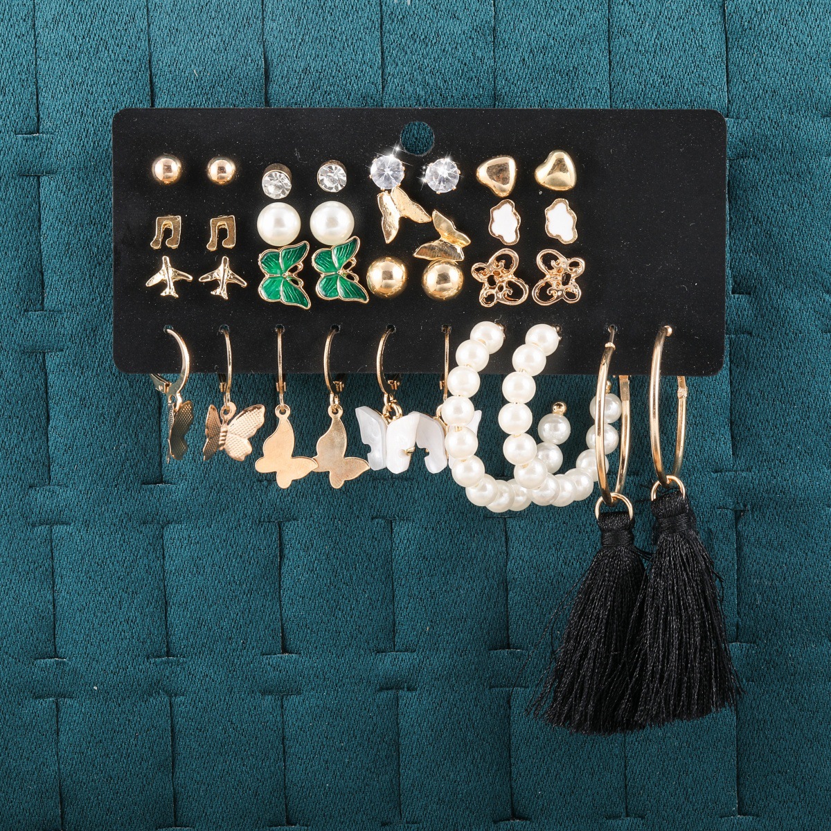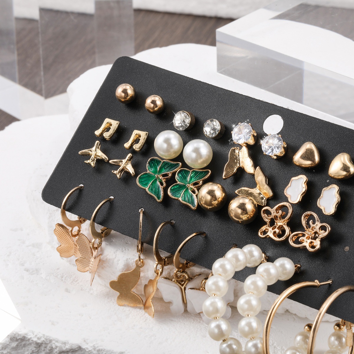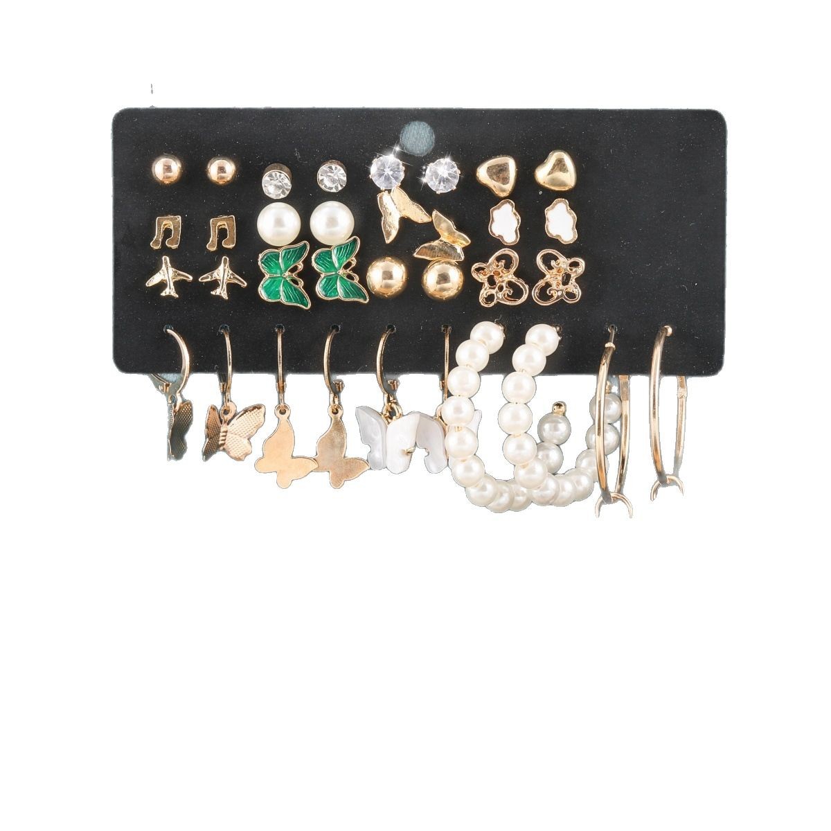 pearl rhinestone heart note butterfly cloud airplane 17 pairs of stud earrings earring set