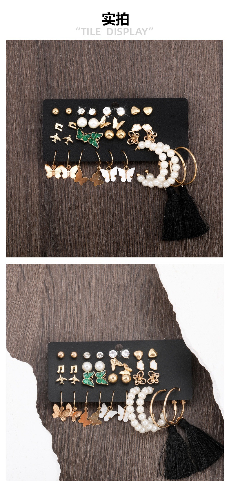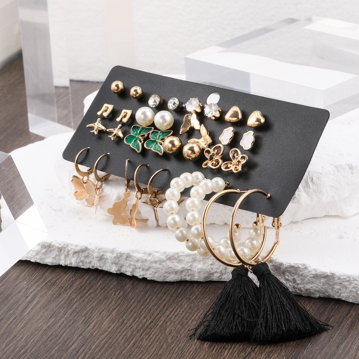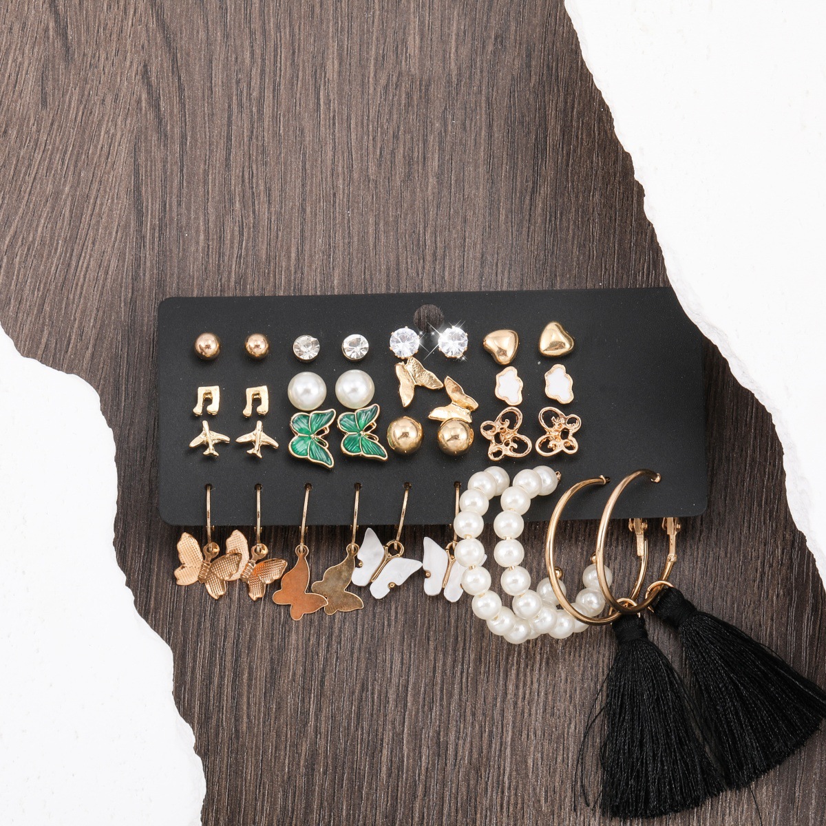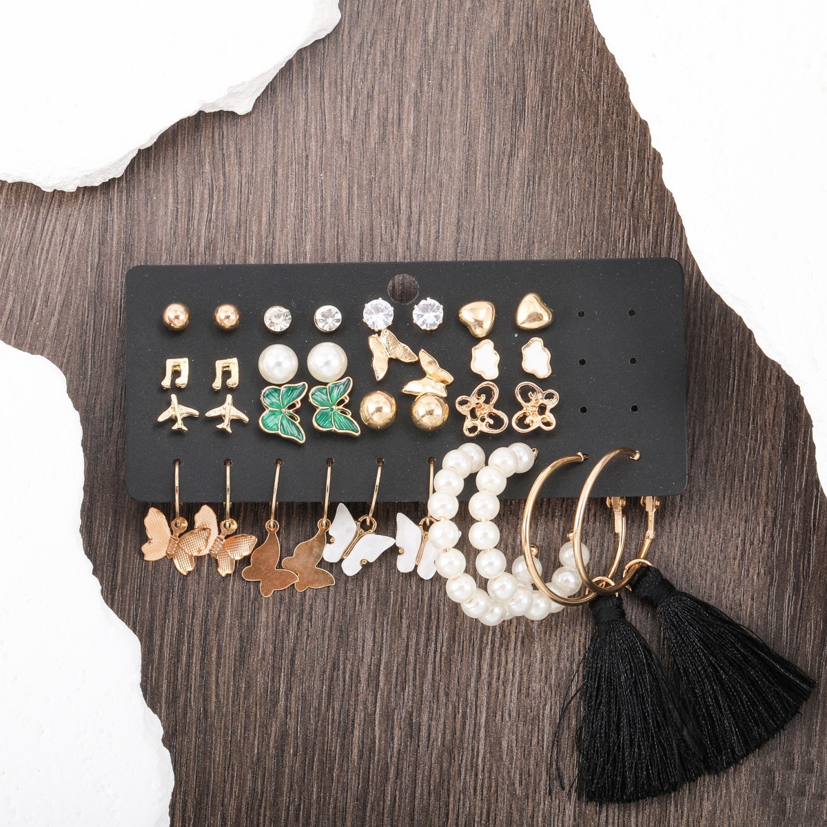 pearl rhinestone heart note butterfly cloud airplane 17 pairs of stud earrings earring set