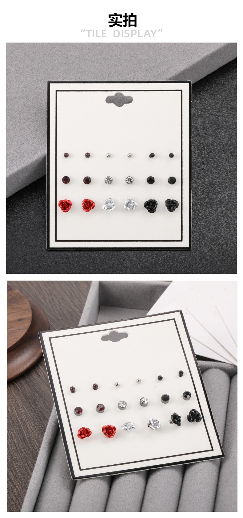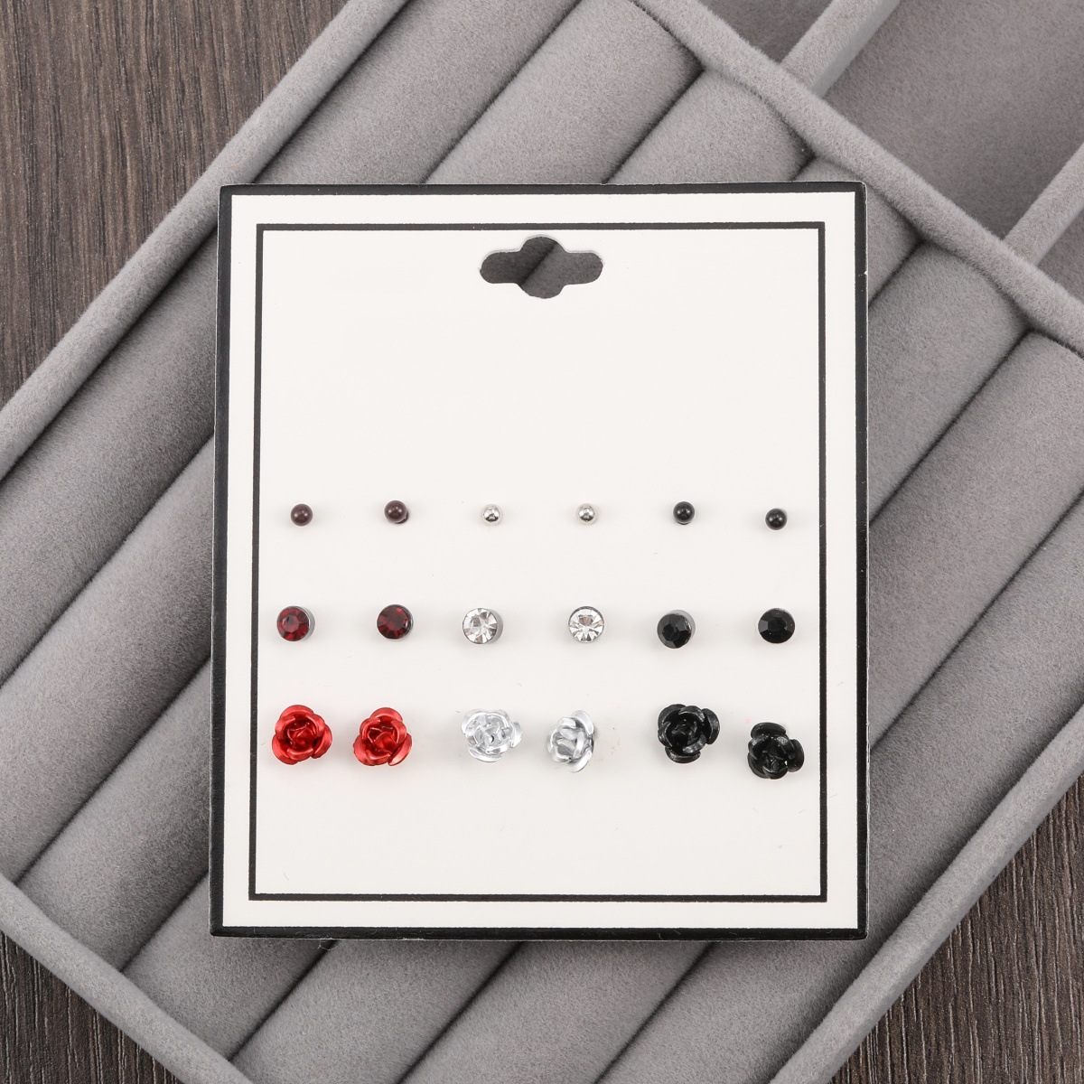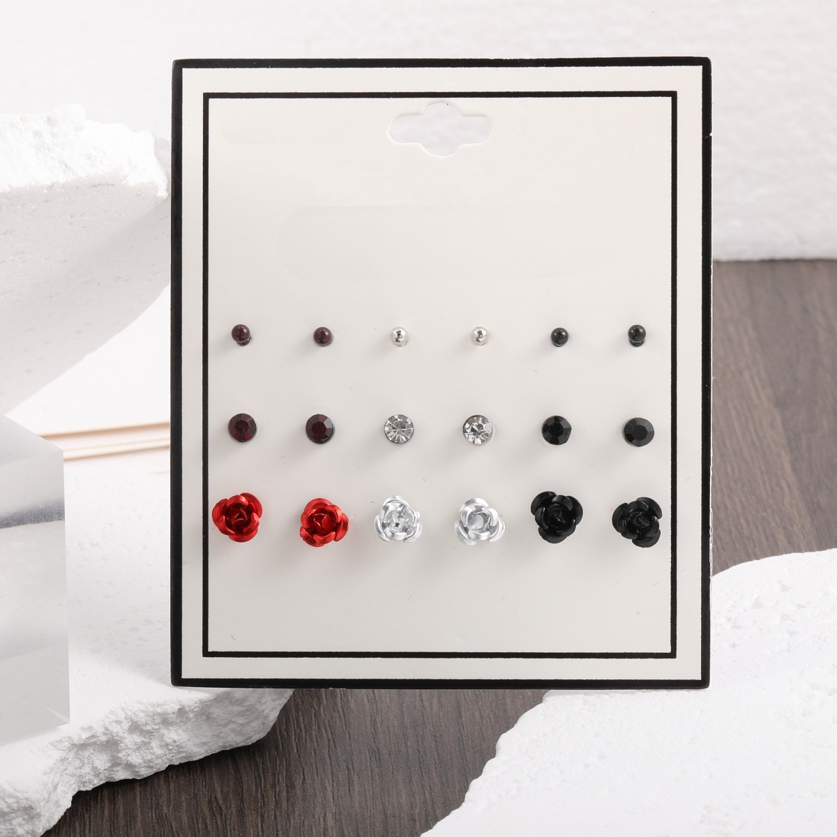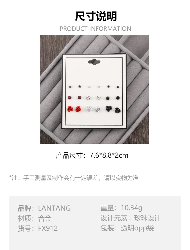 pearl rhinestone flower 9-pair set
