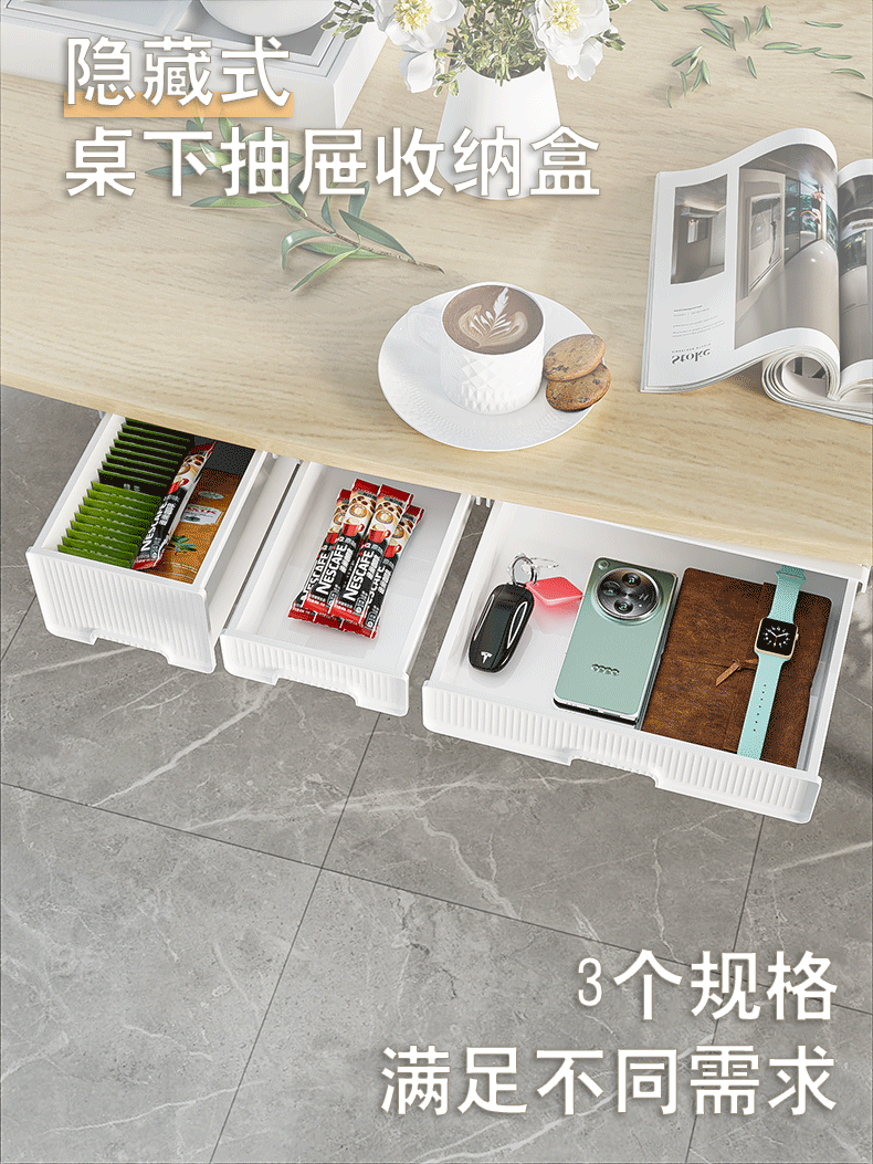 nordic white under-table invisible storage box [small size]