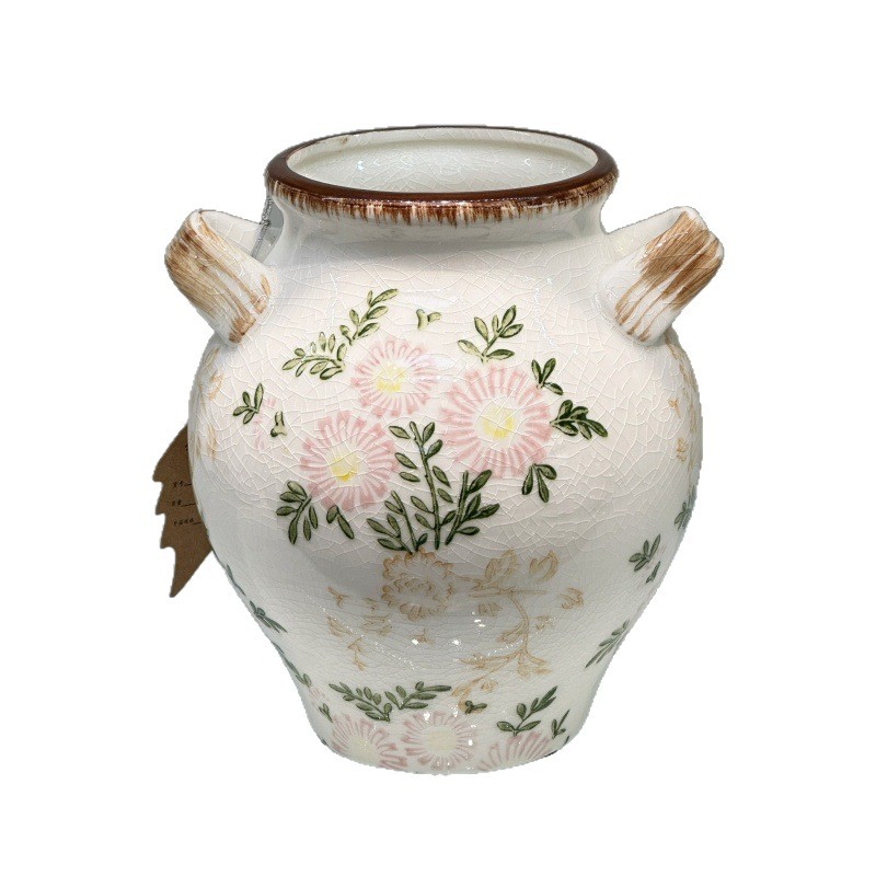 new chinese style ice crack vintage hand painted ceramic vase pastoral style american style flower arrangement container entrance restaurant ornaments