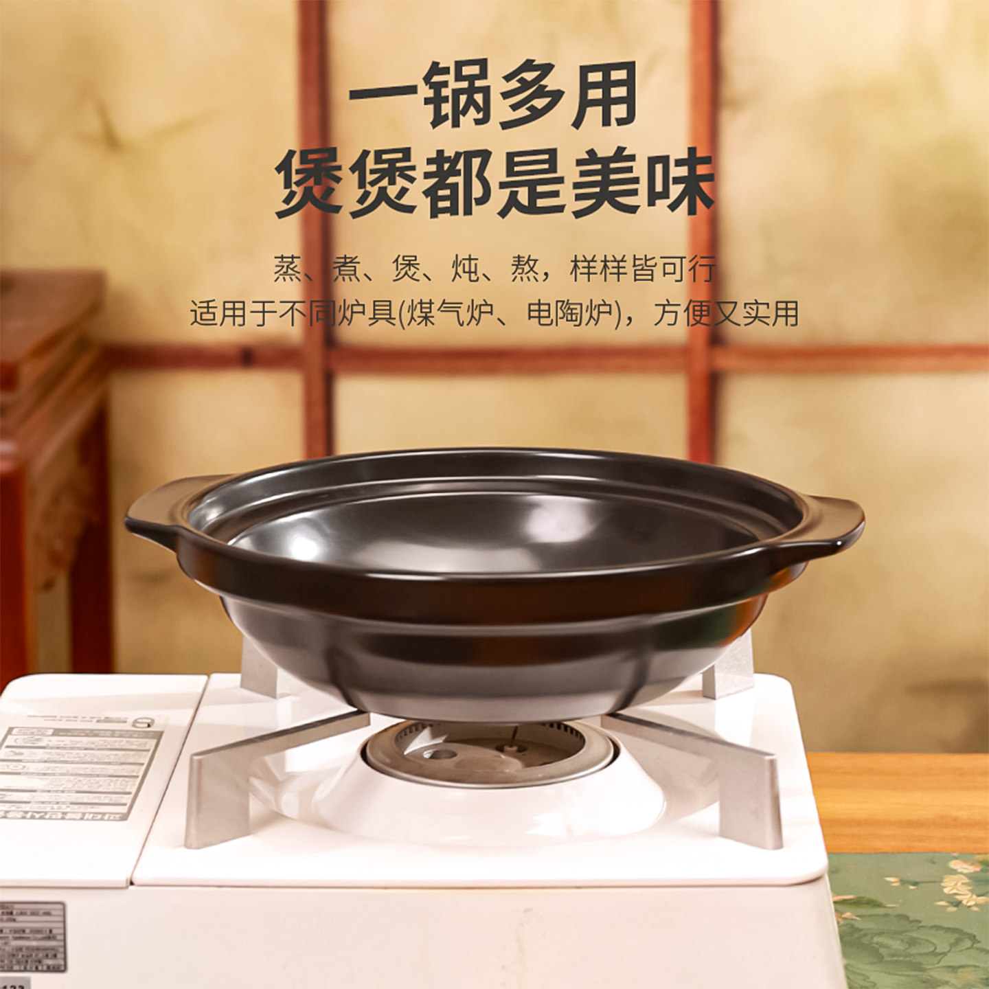 b808 black floral shallow pot 1.2l