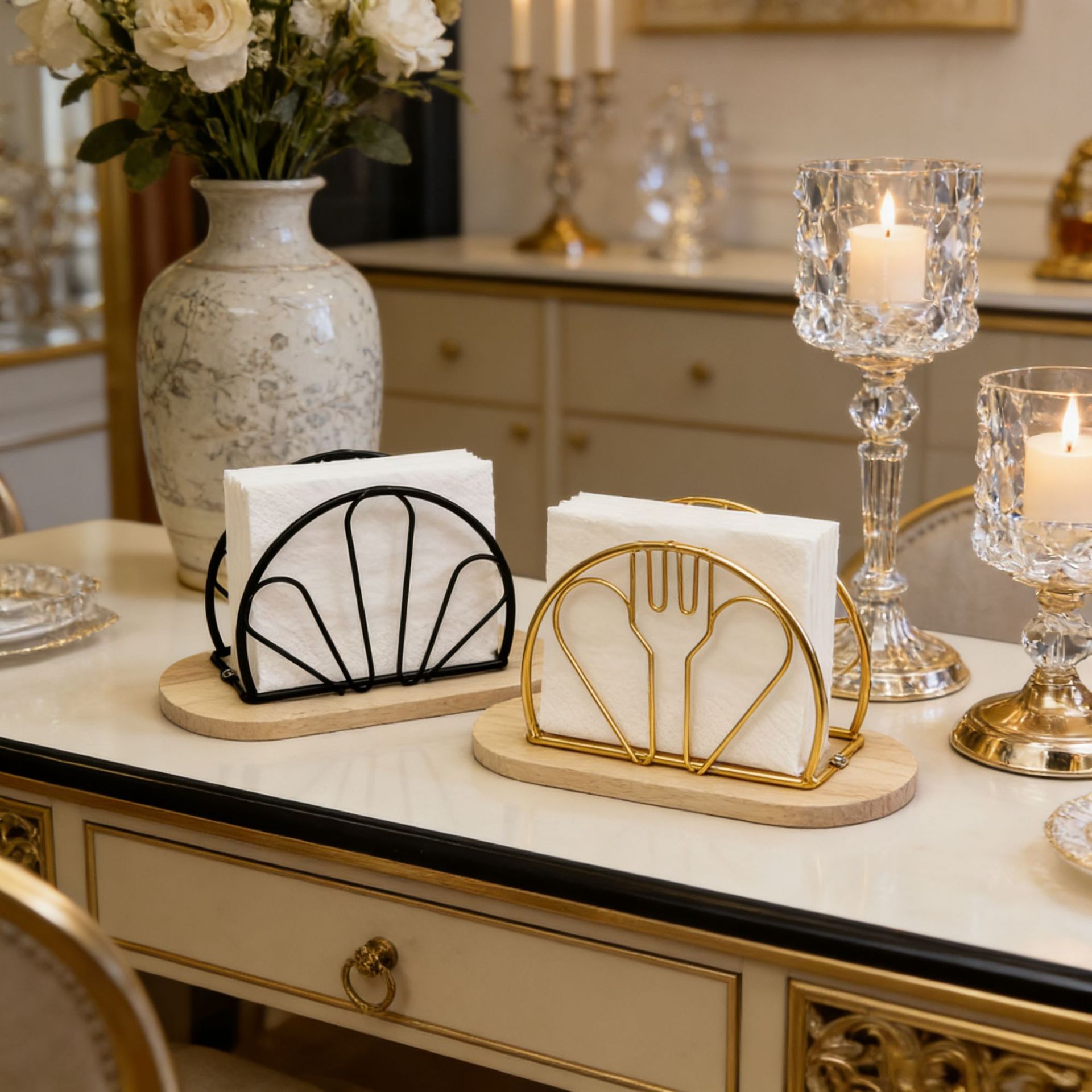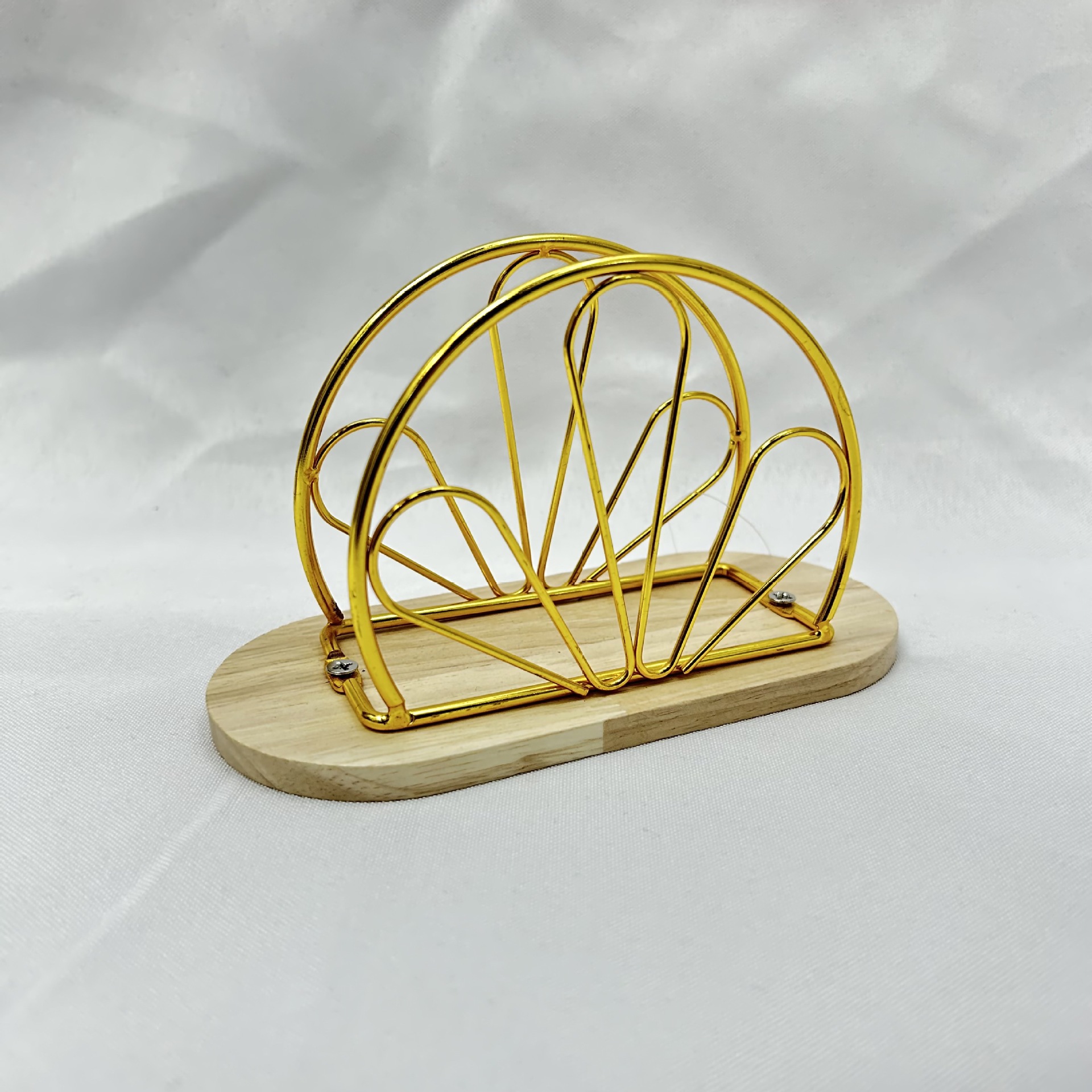 js091mc flower-shaped wooden base napkin holder gold color