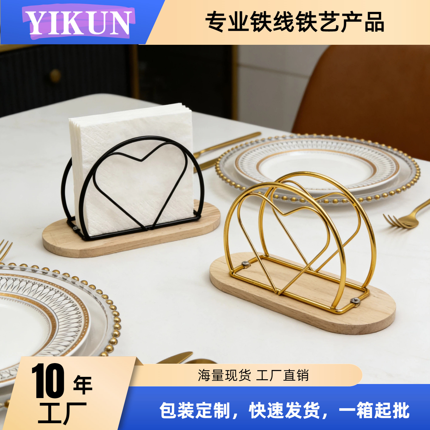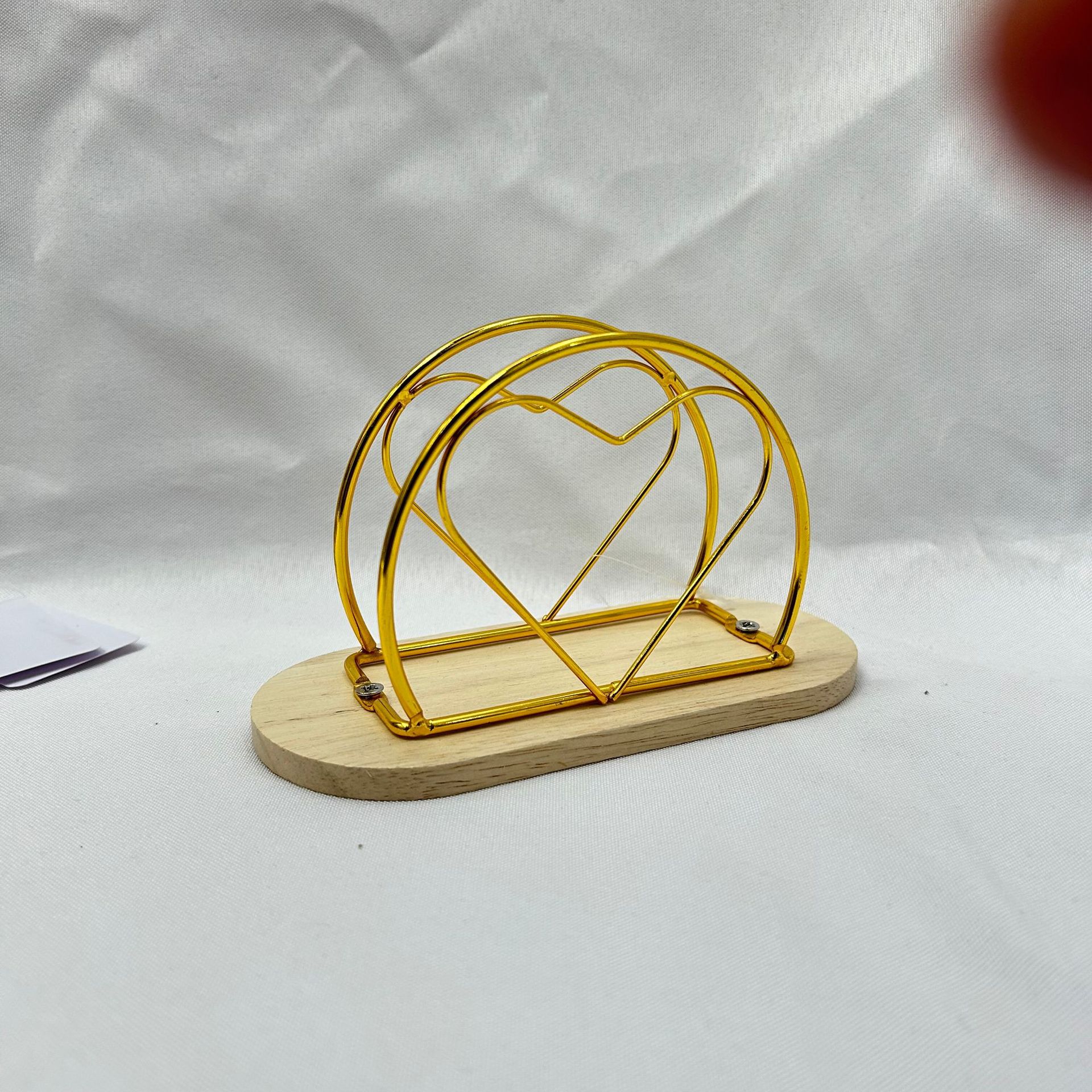 js092mc heart-shaped wooden base napkin holder gold color