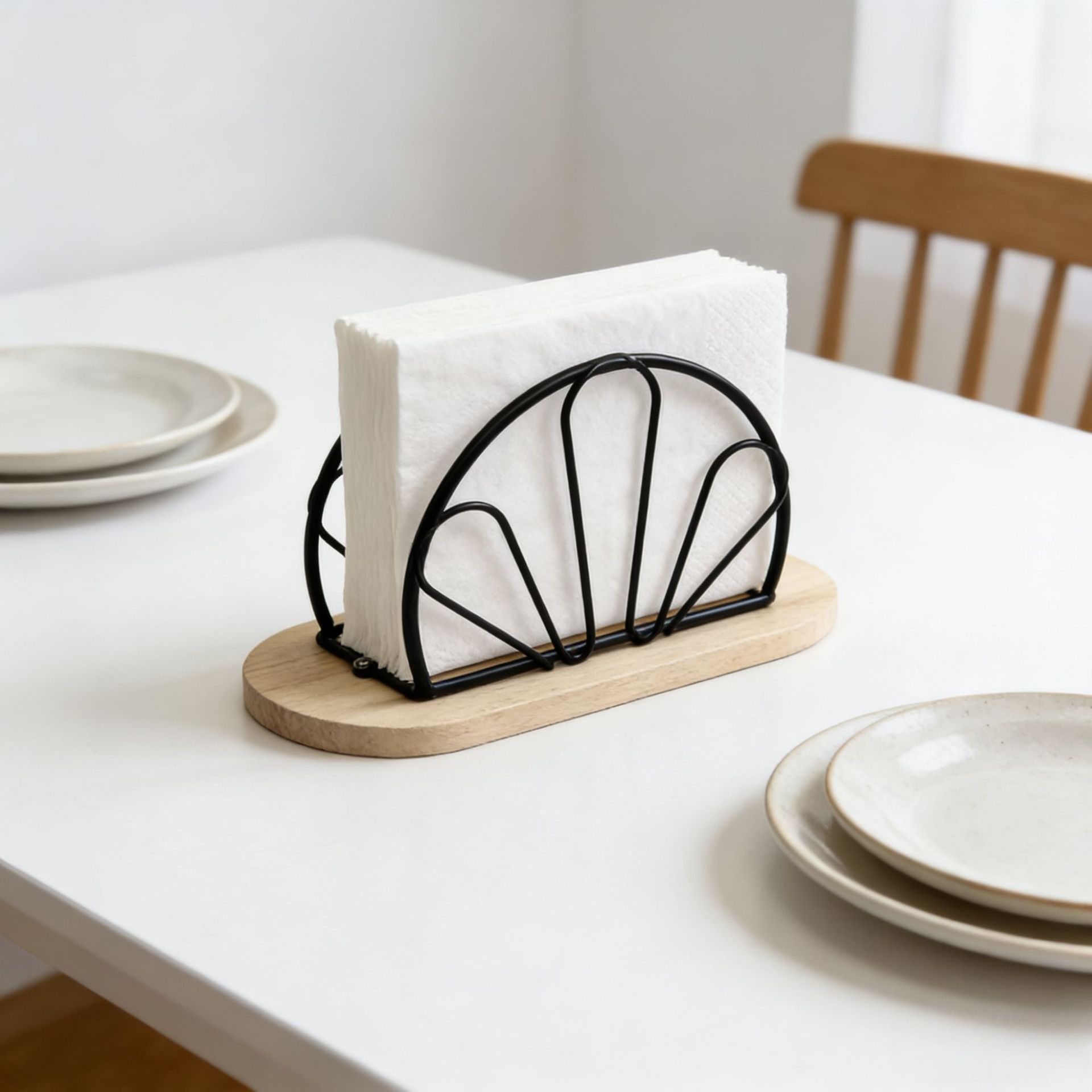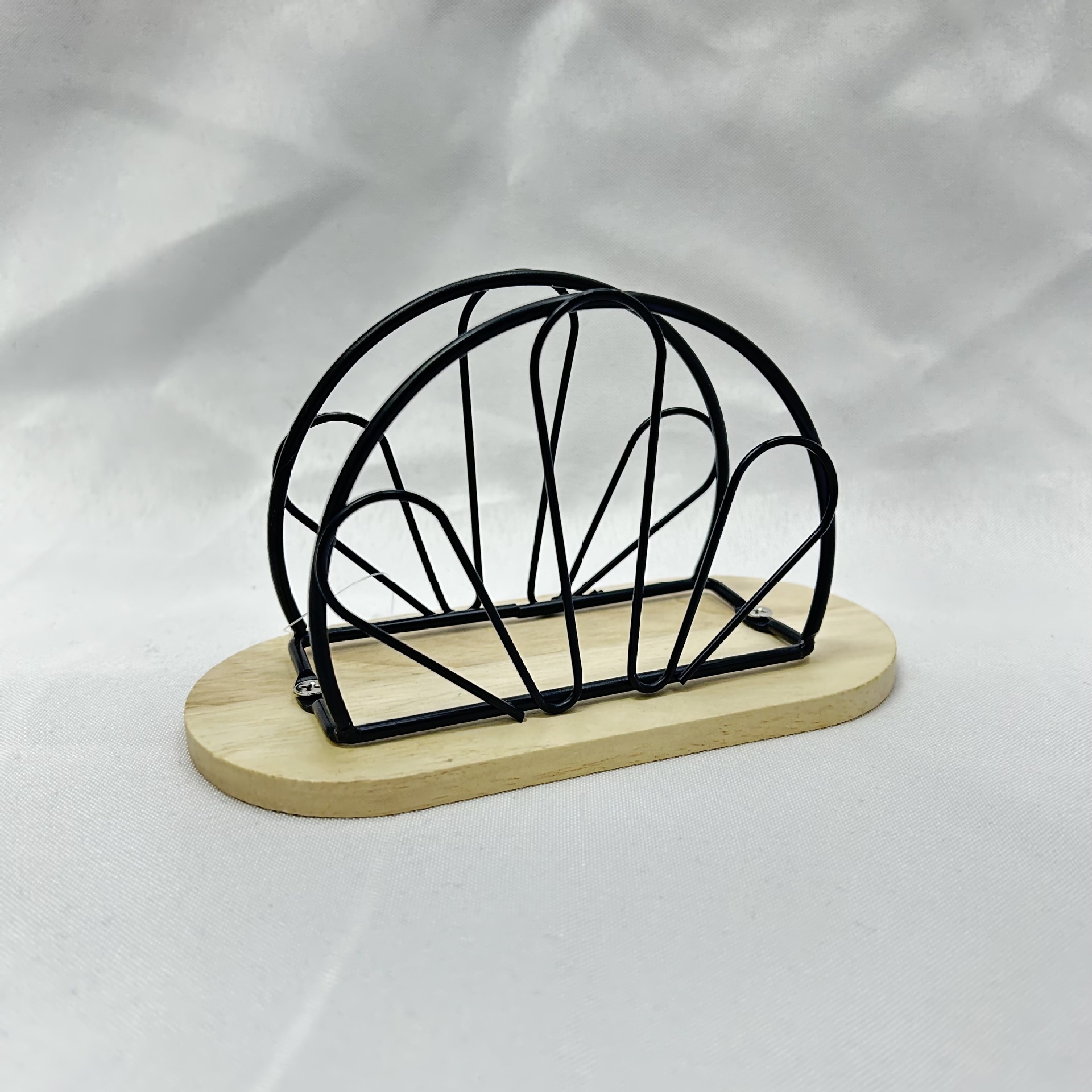 js091m flower-shaped wooden base napkin holder black