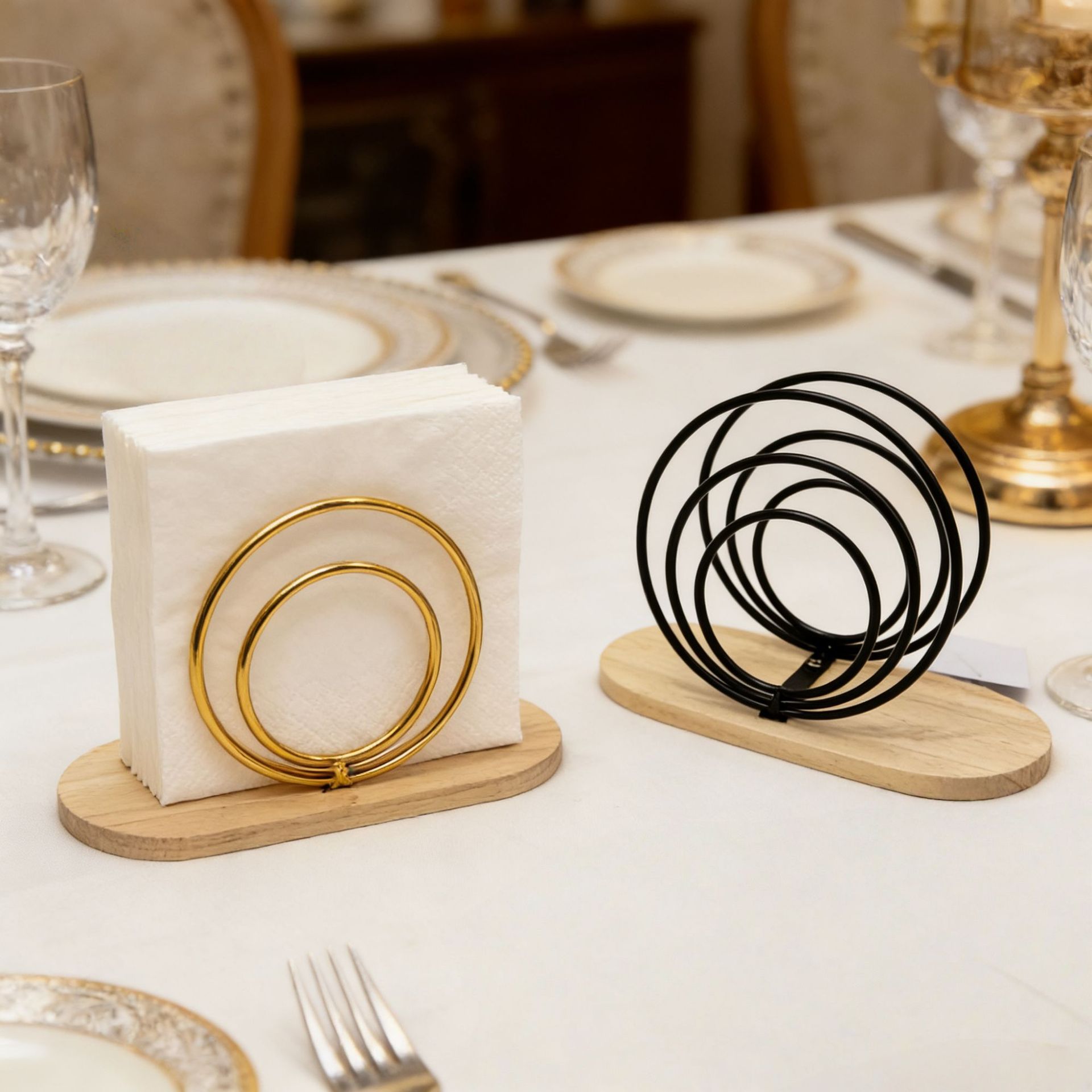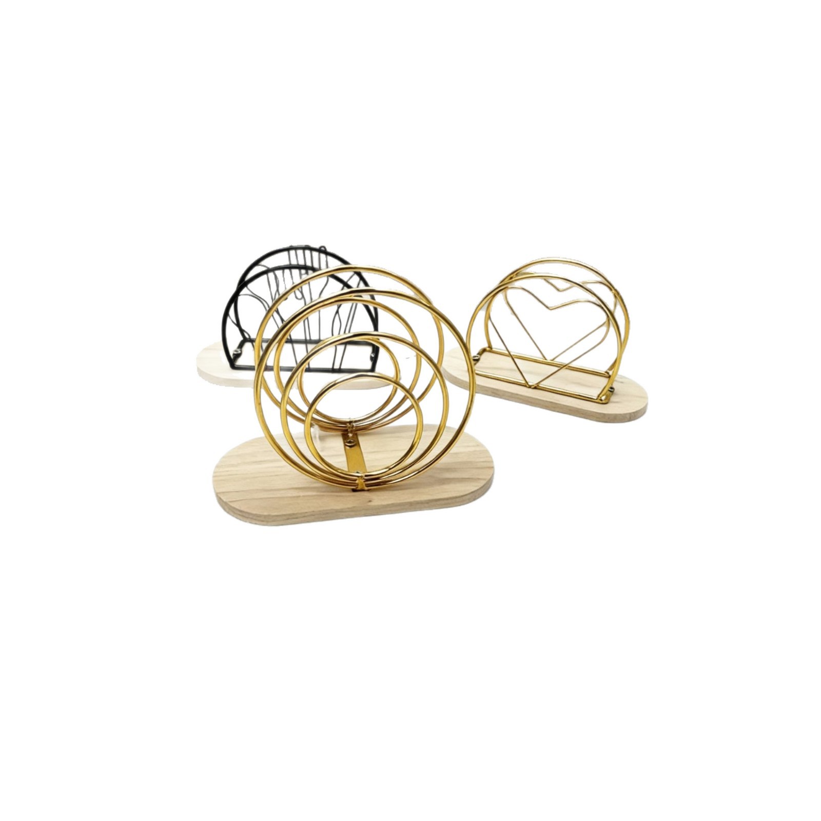 js090mc three-ring wooden base napkin holder gold color