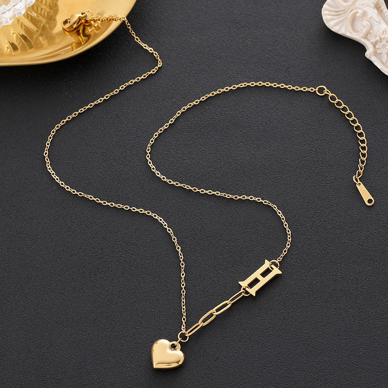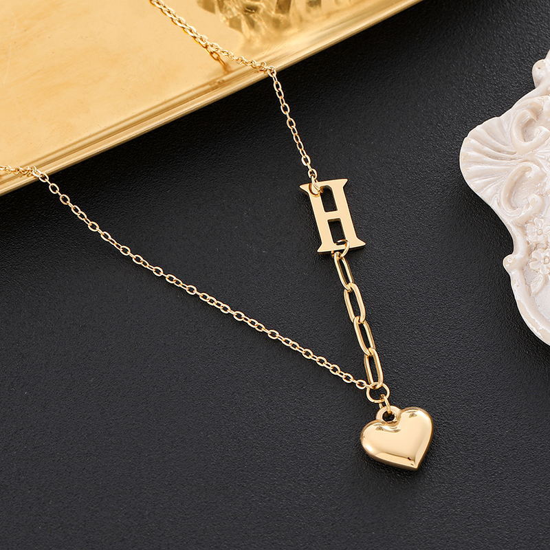 golden heart h necklace