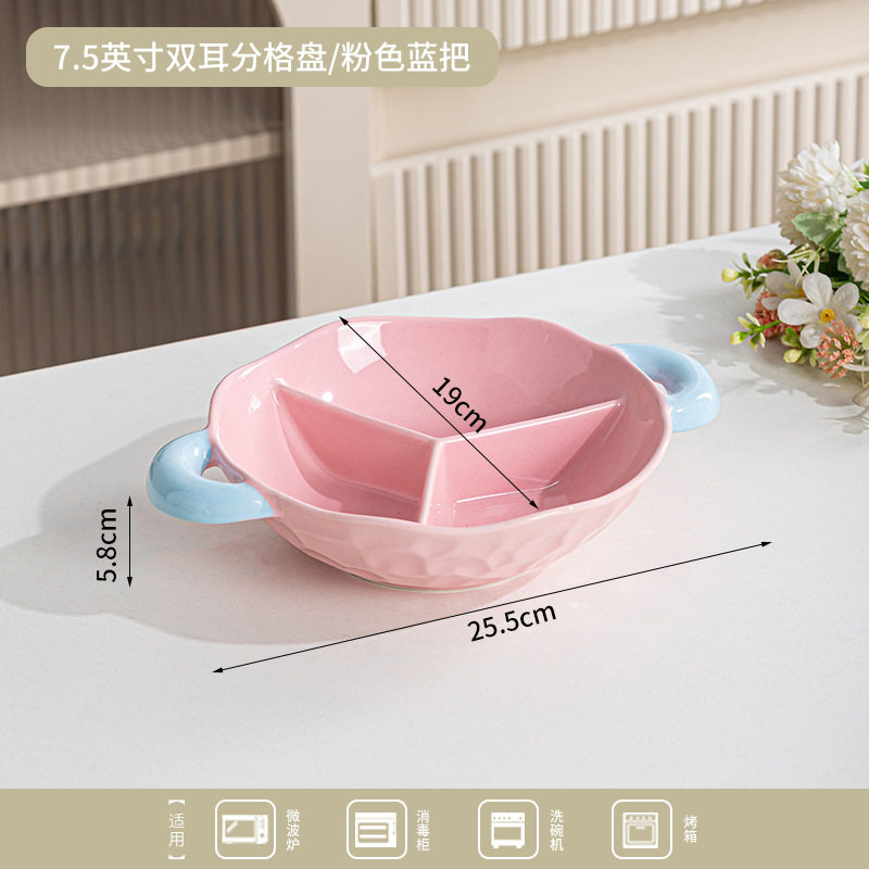 light luxury double-eared compartment tray-pink blue handle