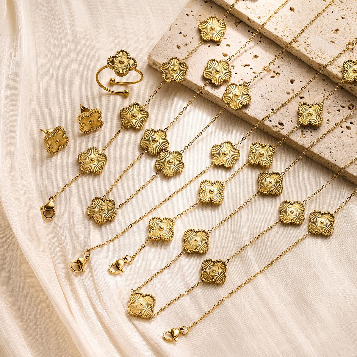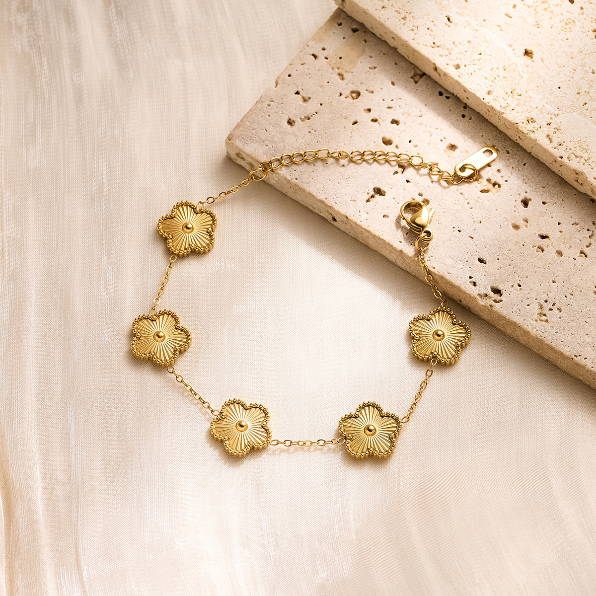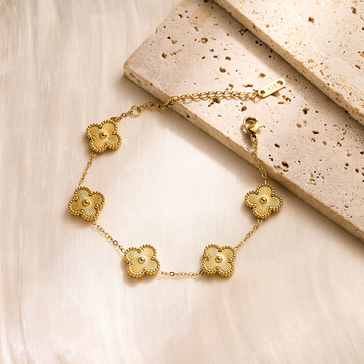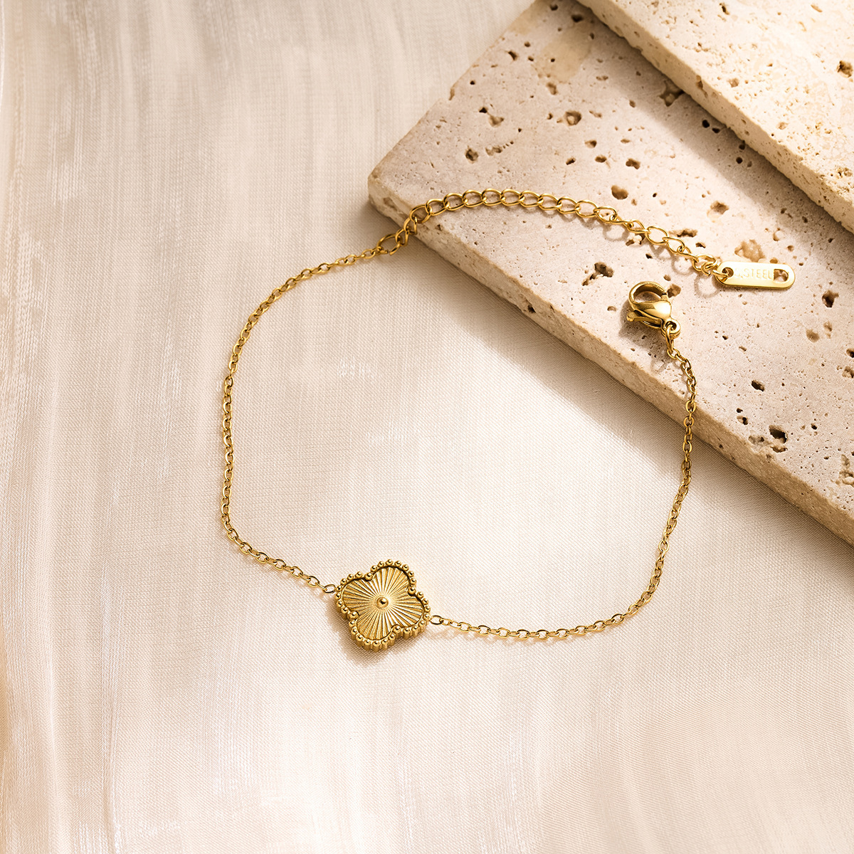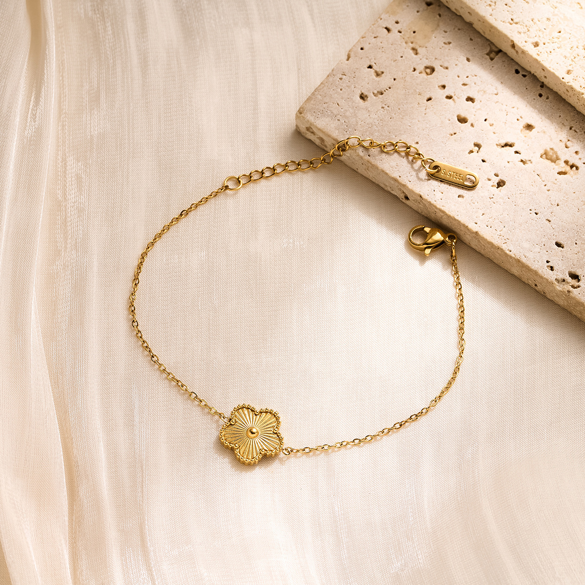 golden studded clover four-leaf pork belly bracelet