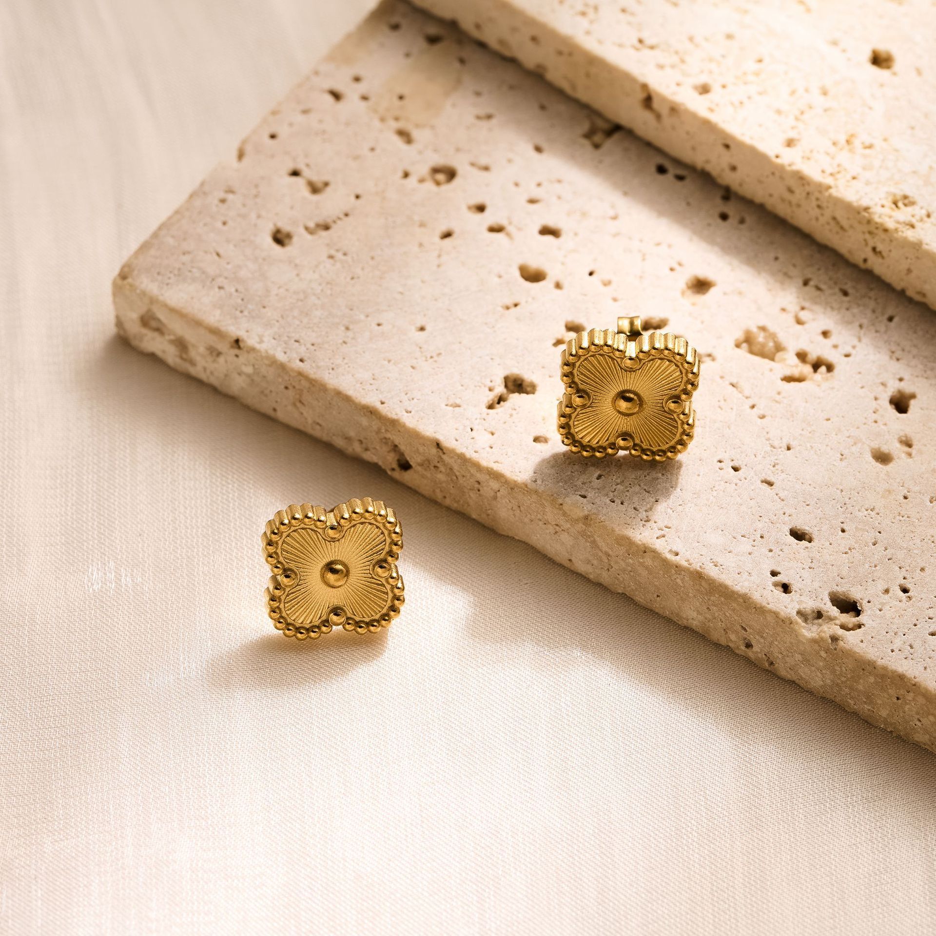 golden filigree four leaf clover ear stud
