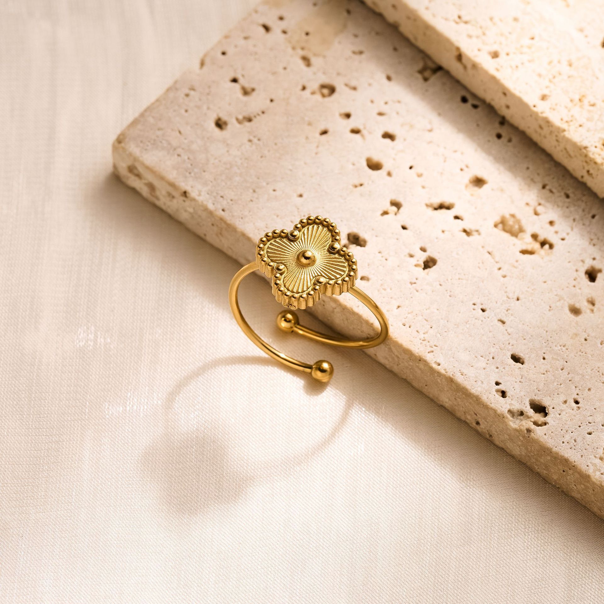 golden filigree four-leaf clover ring
