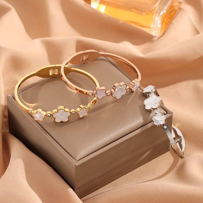 z275 three-petal five-leaf flower bracelet rose gold