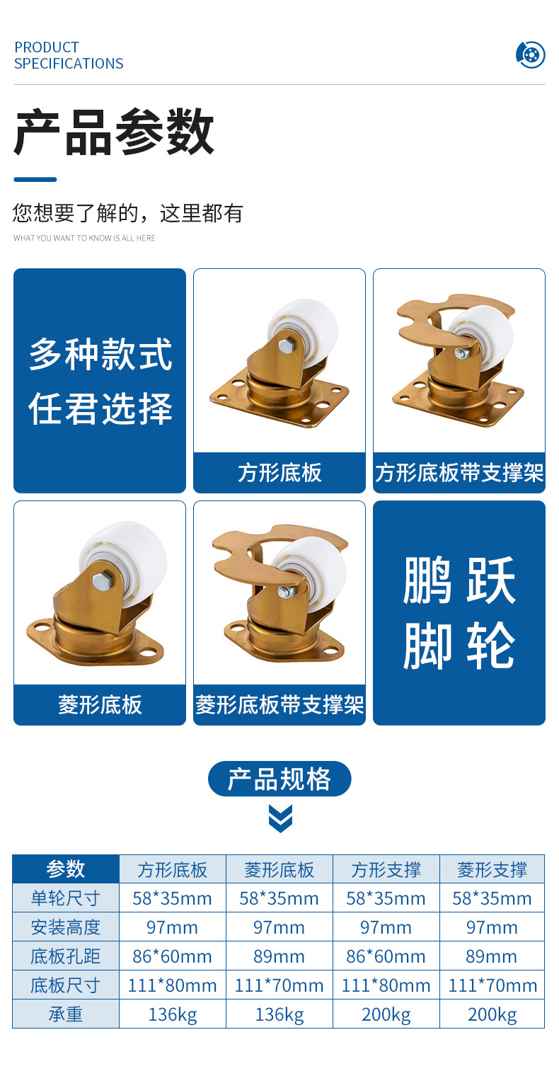 model: 2.5-inch universal wheel, 2.5-inch directional, 2.5-inch