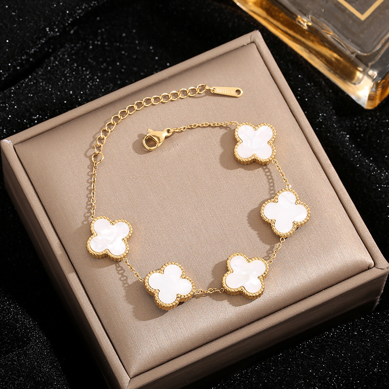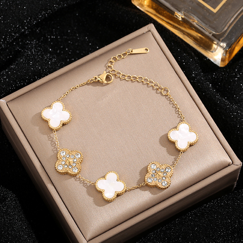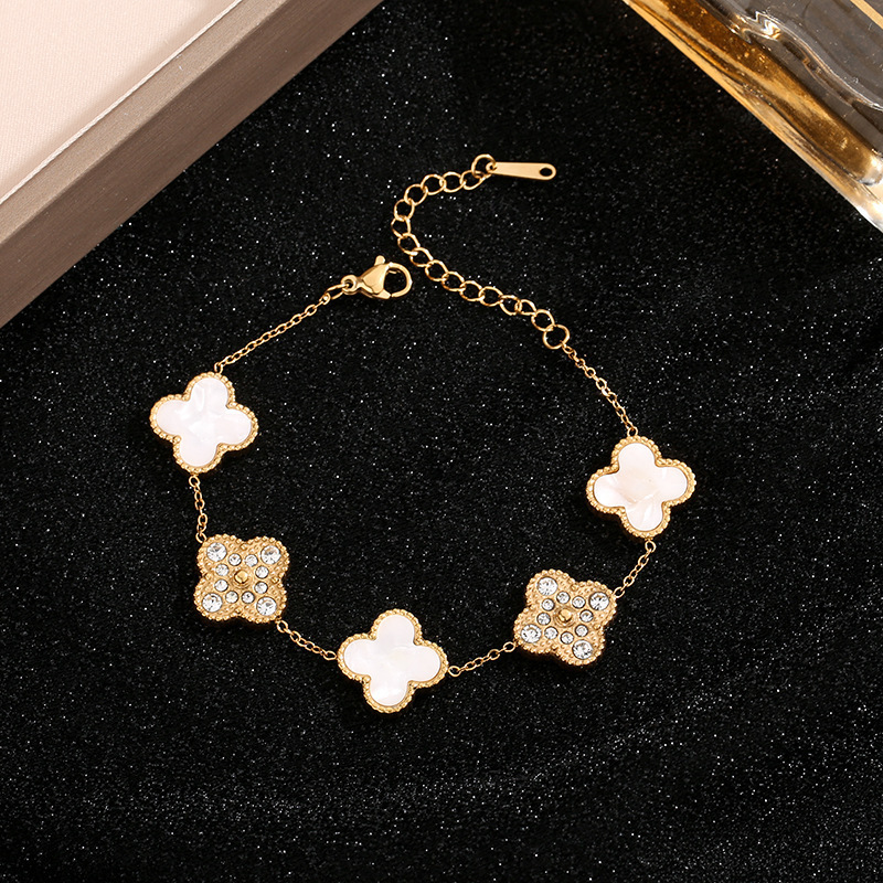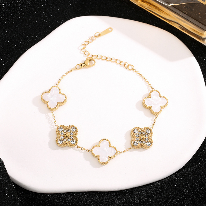 5507 diamond-inlaid four-leaf white shell bracelet, gold color