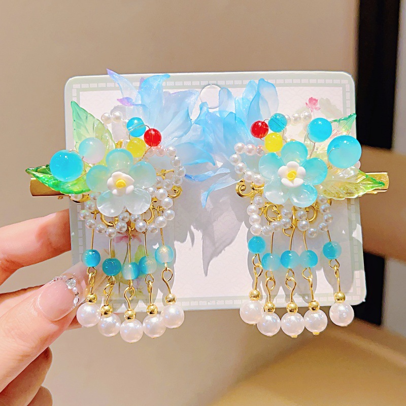 blue grenadine double-leaf five-pendant pearl
