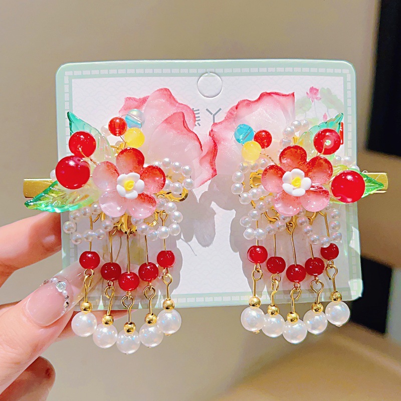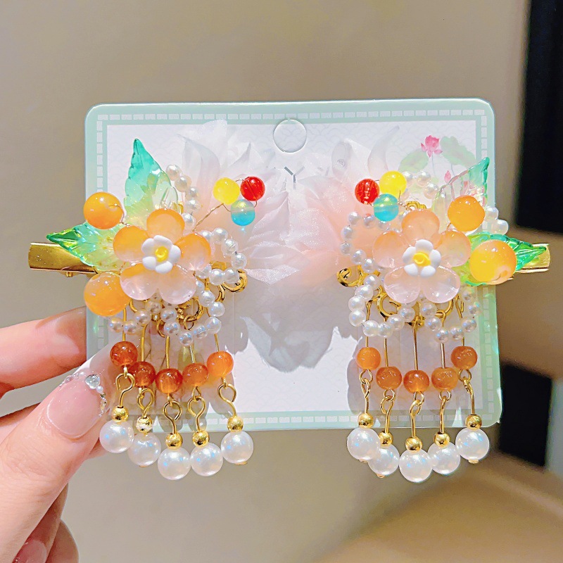 orange grenadine double-leaf five-pendant pearl