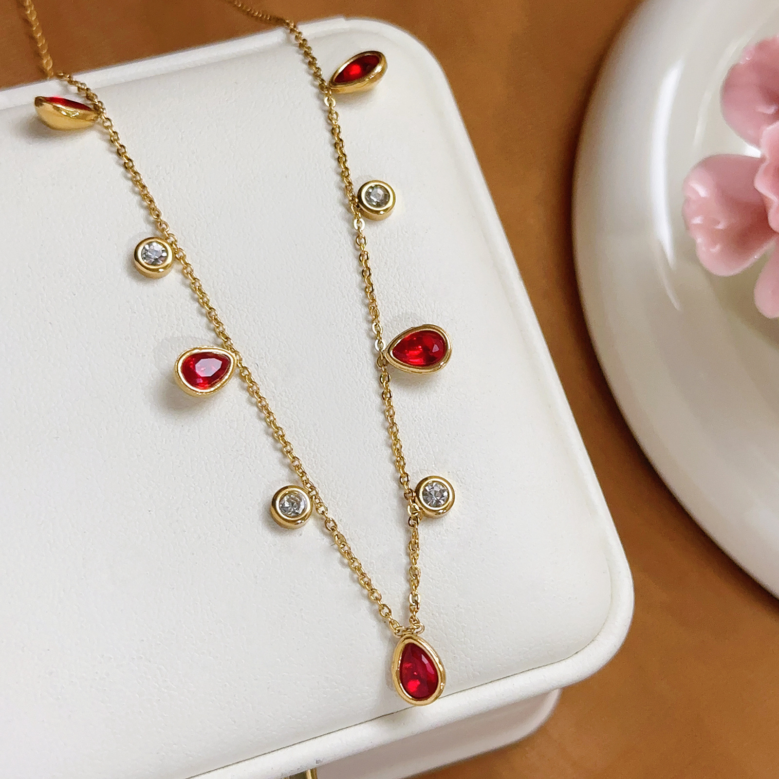 【86644】 red round diamond + water drop