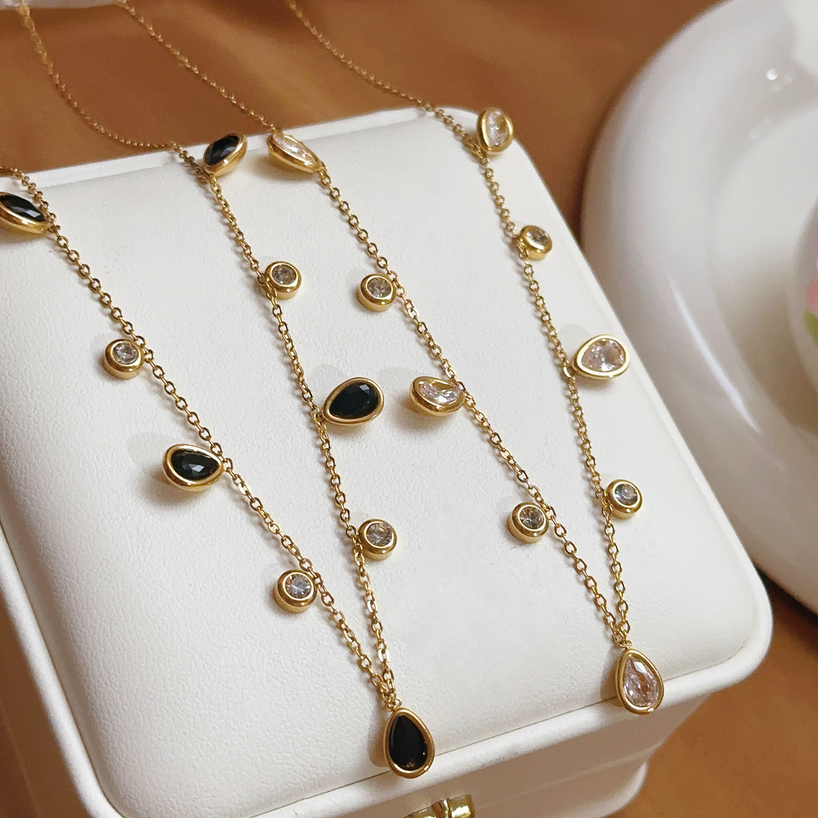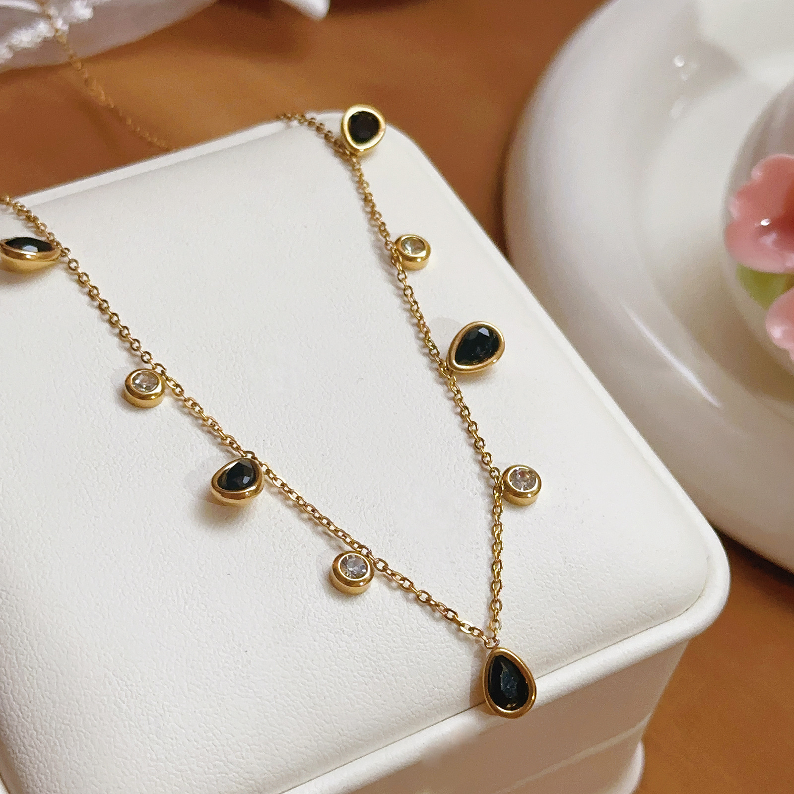 【86640】 black round diamond + water drop