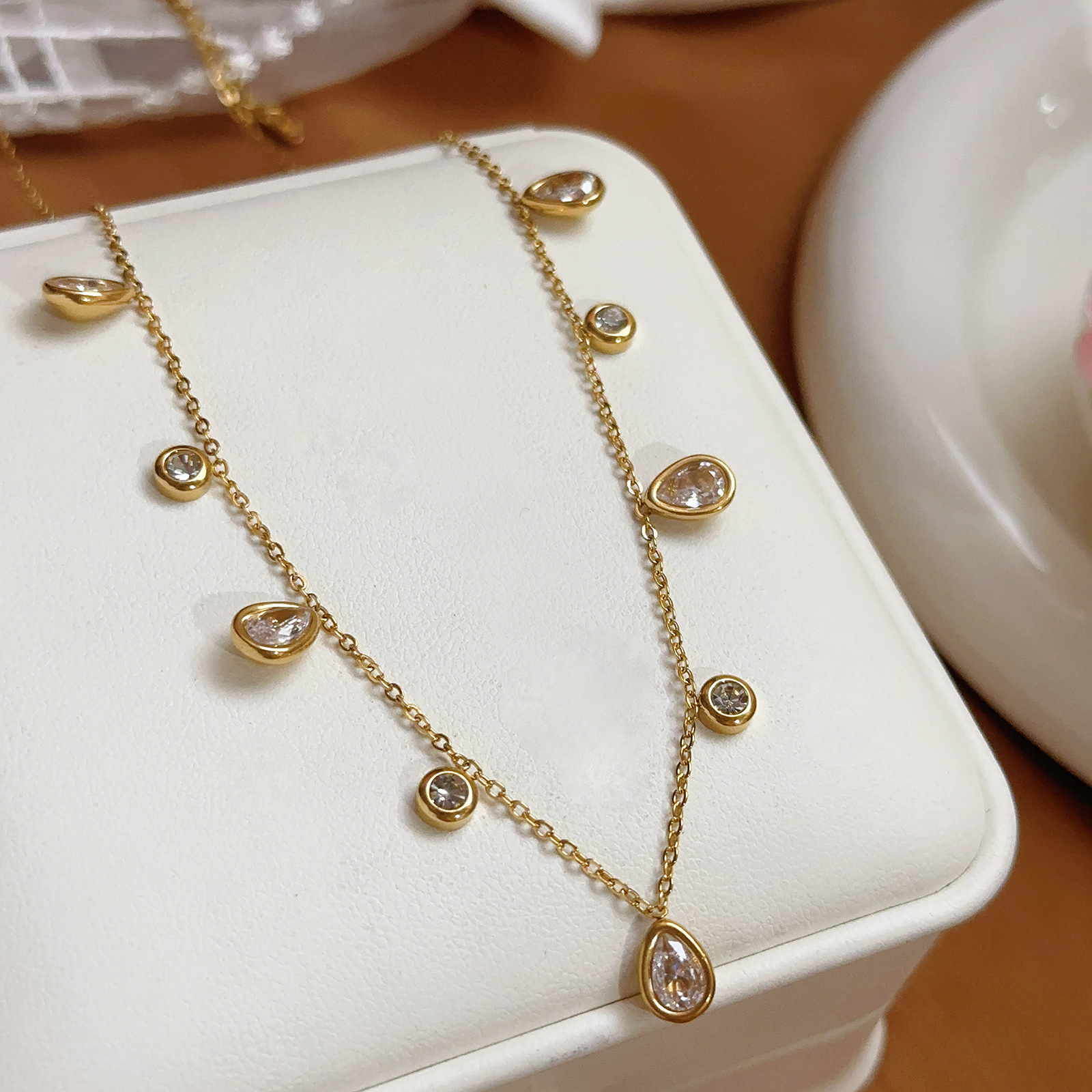 【86639】white round diamond + water drop