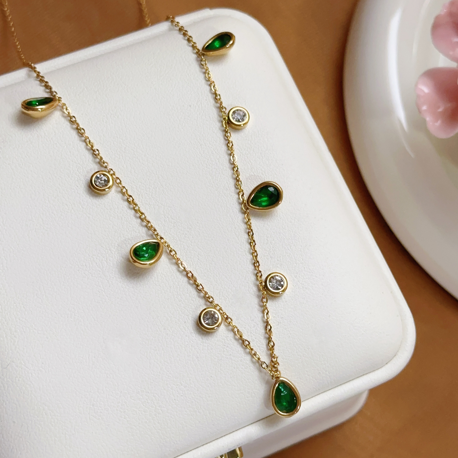 【86645】 green round diamond + water drop