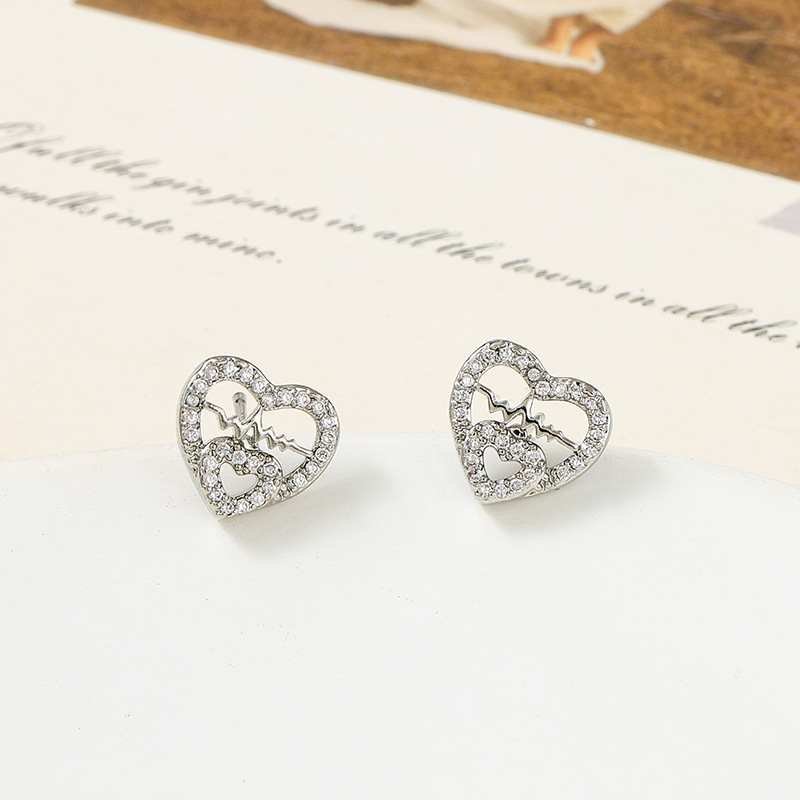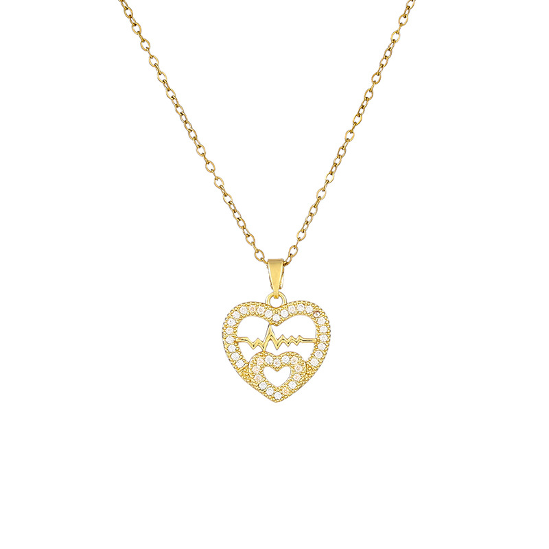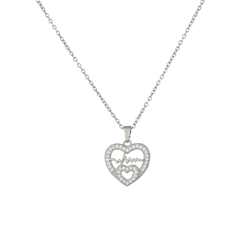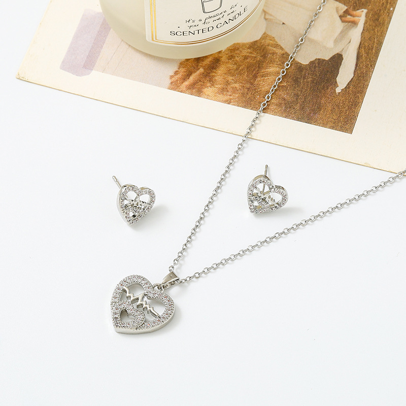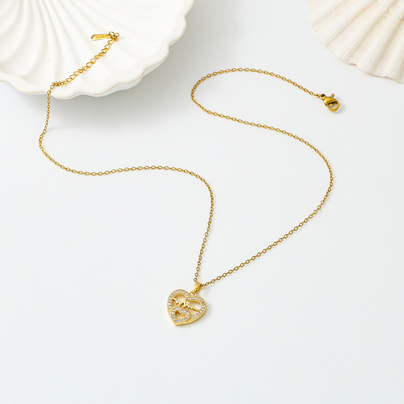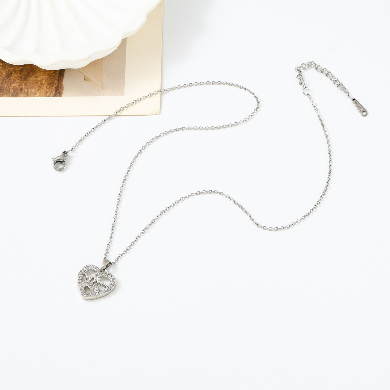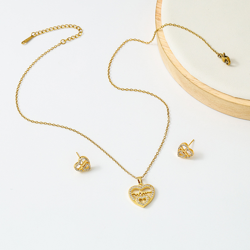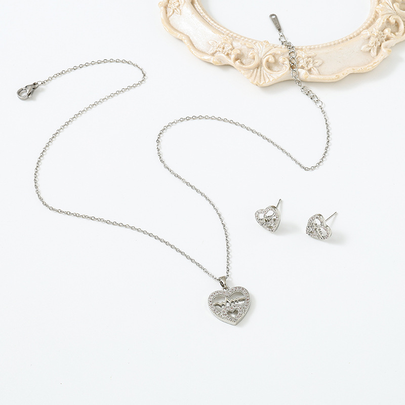 cross-border new arrival love heart pendant titanium steel necklace female with hearts stud earrings temperamental minority high sense set wholesale